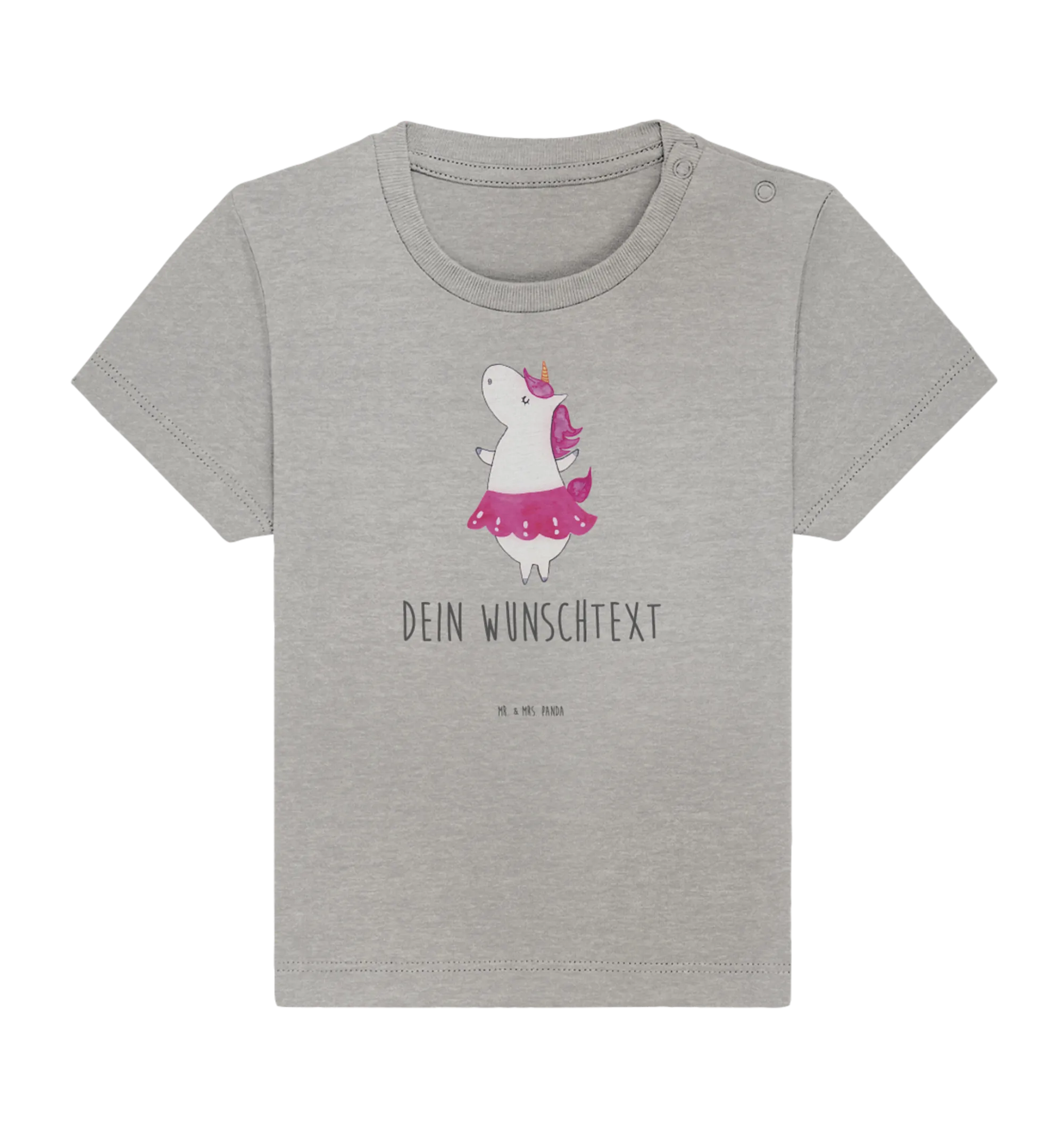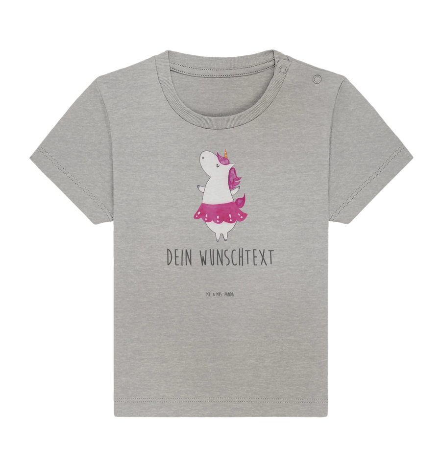 Warum dieses Baby Shirt so besonders ist: Das liebevoll von Mrs. Panda gezeichnete Motiv kombiniert Einhornzauber und Ballett-Charme. Die dezente Heather Grey Farbe ist unisex-freundlich und lässt sich wunderbar mit vielen Looks kombinieren. Ob als Baby Kurzarmshirt mit Namen im Sommer oder als Baby Langarmshirt mit Wunschnamen in der kühleren Jahreszeit – dieses Oberteil passt immer.