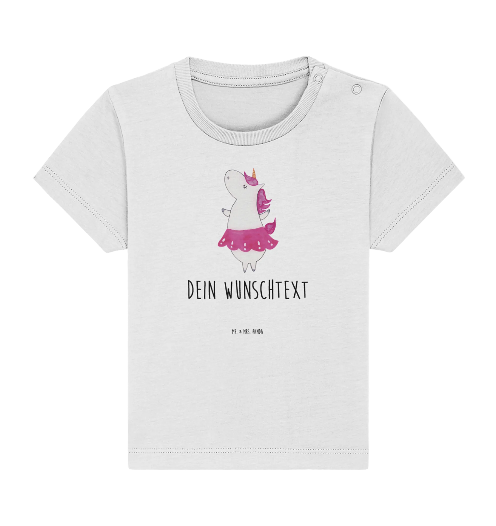 Personalisiertes Baby Shirt "Einhorn Ballerina" aus der Einhorn - Kollektion von Mr. & Mrs. Panda ist das perfekte Geschenk für kleine Tanzmäuse und Einhorn-Fans. Das niedliche Ballerina-Einhorn im Tütü verströmt pure Lebensfreude und macht jedes Baby-Outfit zum Blickfang.