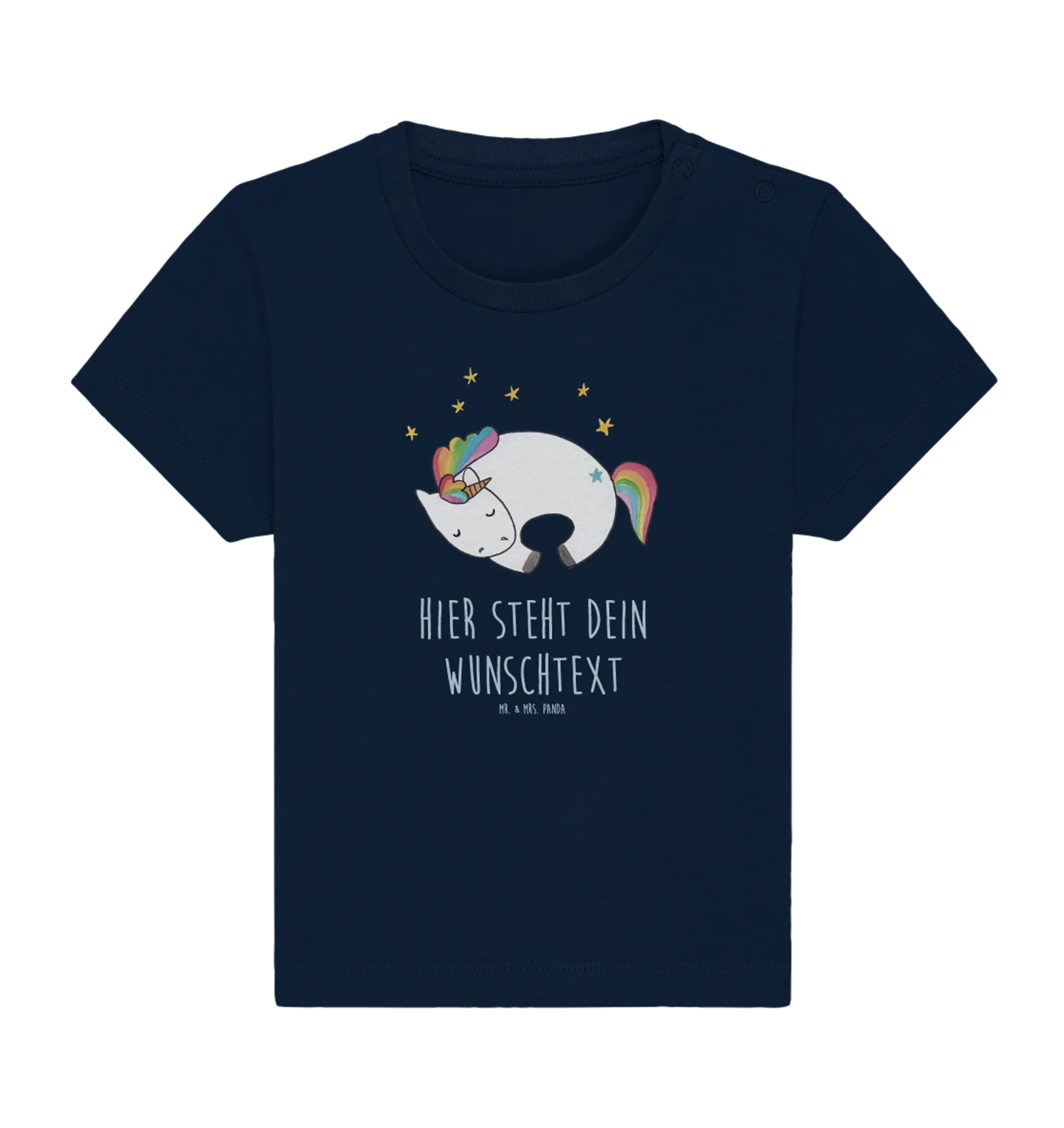 Entdecke das personalisierte Baby T-Shirt "Einhorn Nacht" aus der zauberhaften Einhorn-Kollektion von Mr. & Mrs. Panda! Dieses süße Shirt ist der perfekte Begleiter für dein Baby und versprüht schon beim Tragen eine magische Atmosphäre.