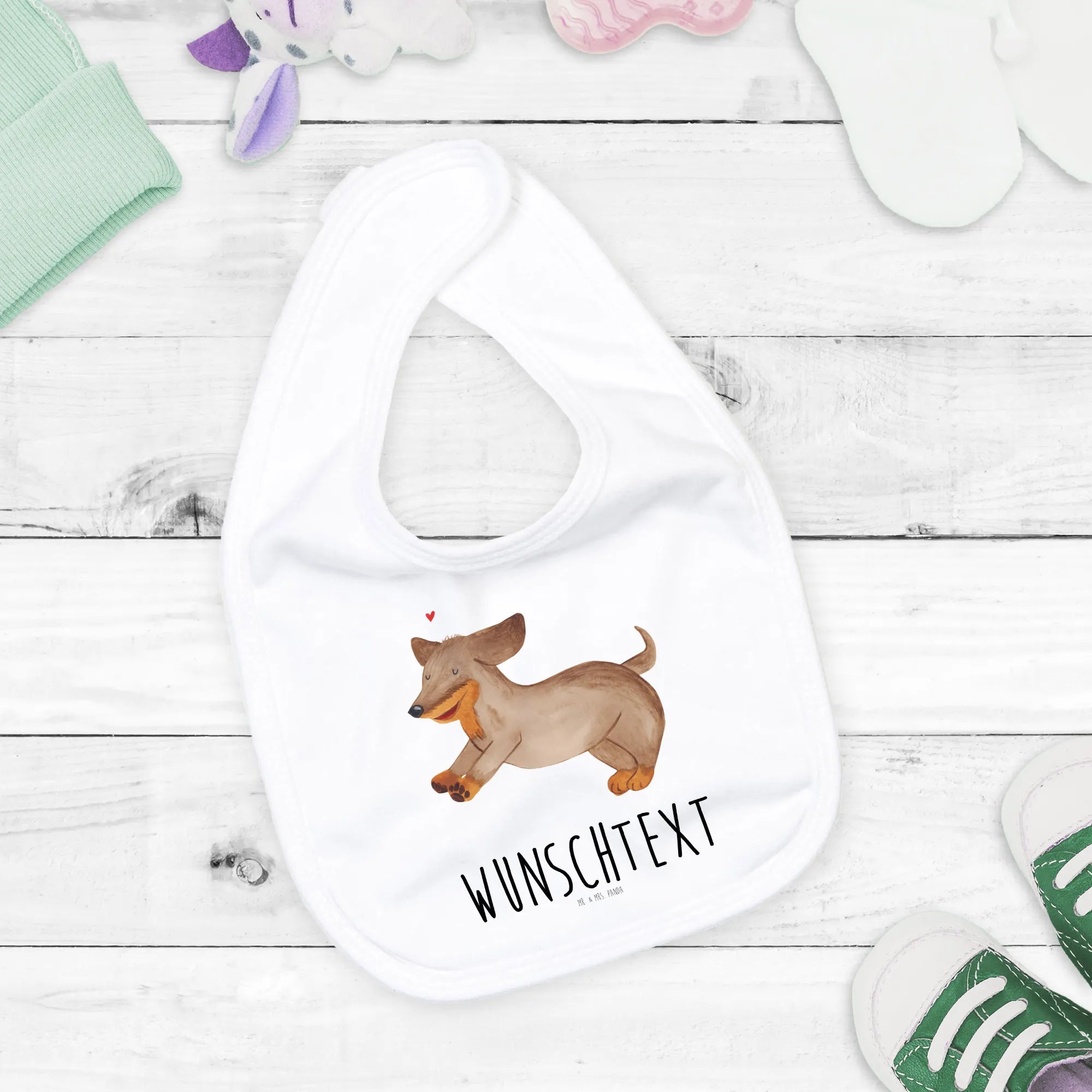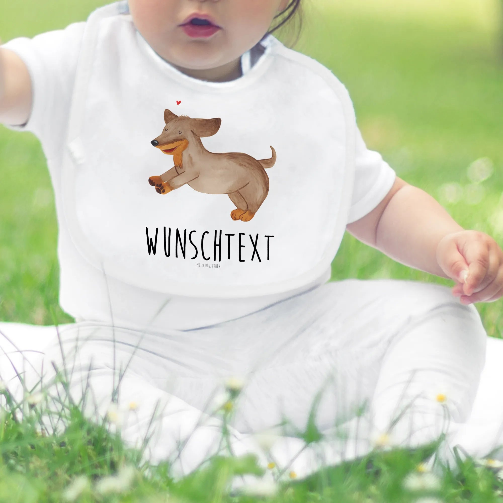 Personalisiertes Babylätzchen Hund Dackel fröhlich