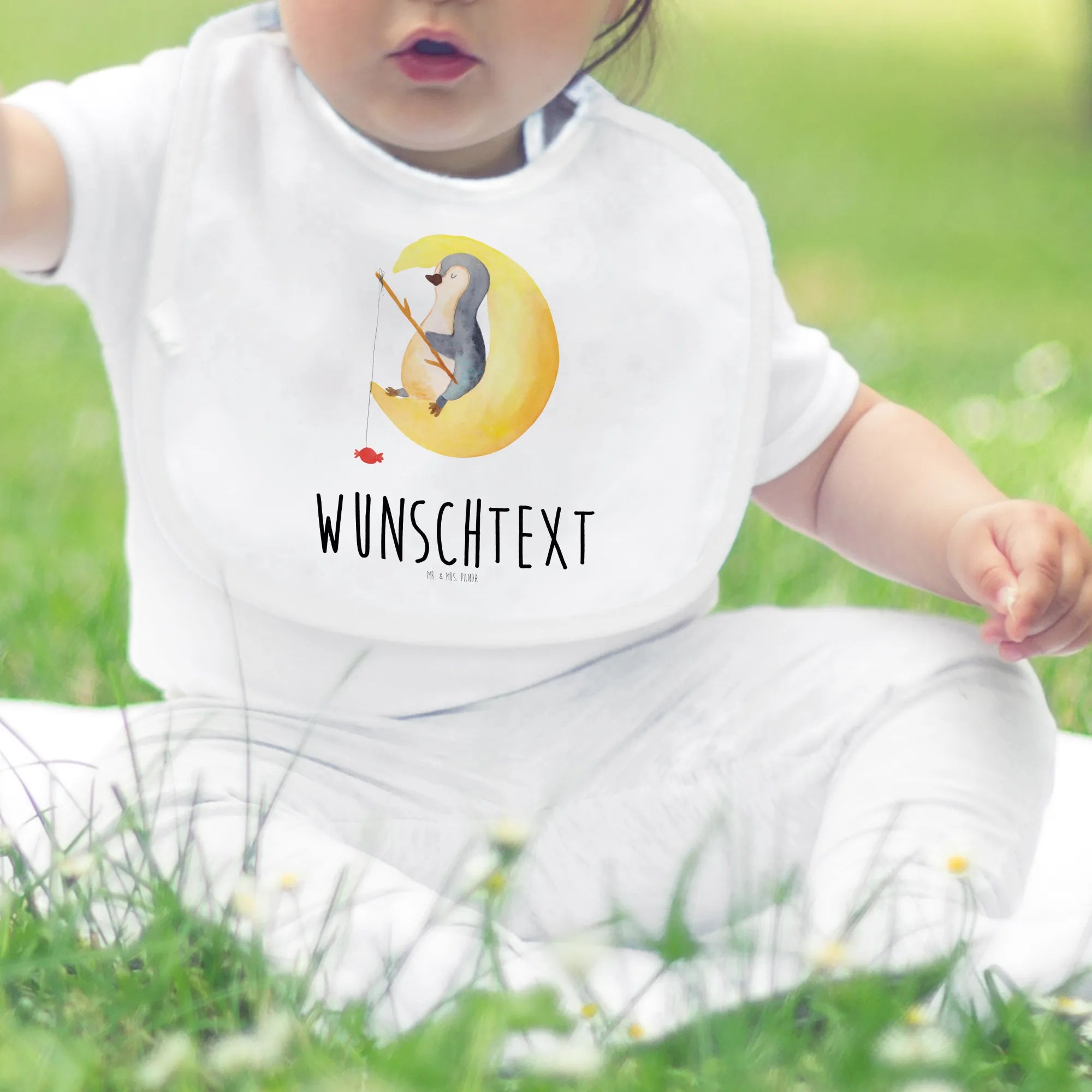 Personalisiertes Babylätzchen Pinguin Mond