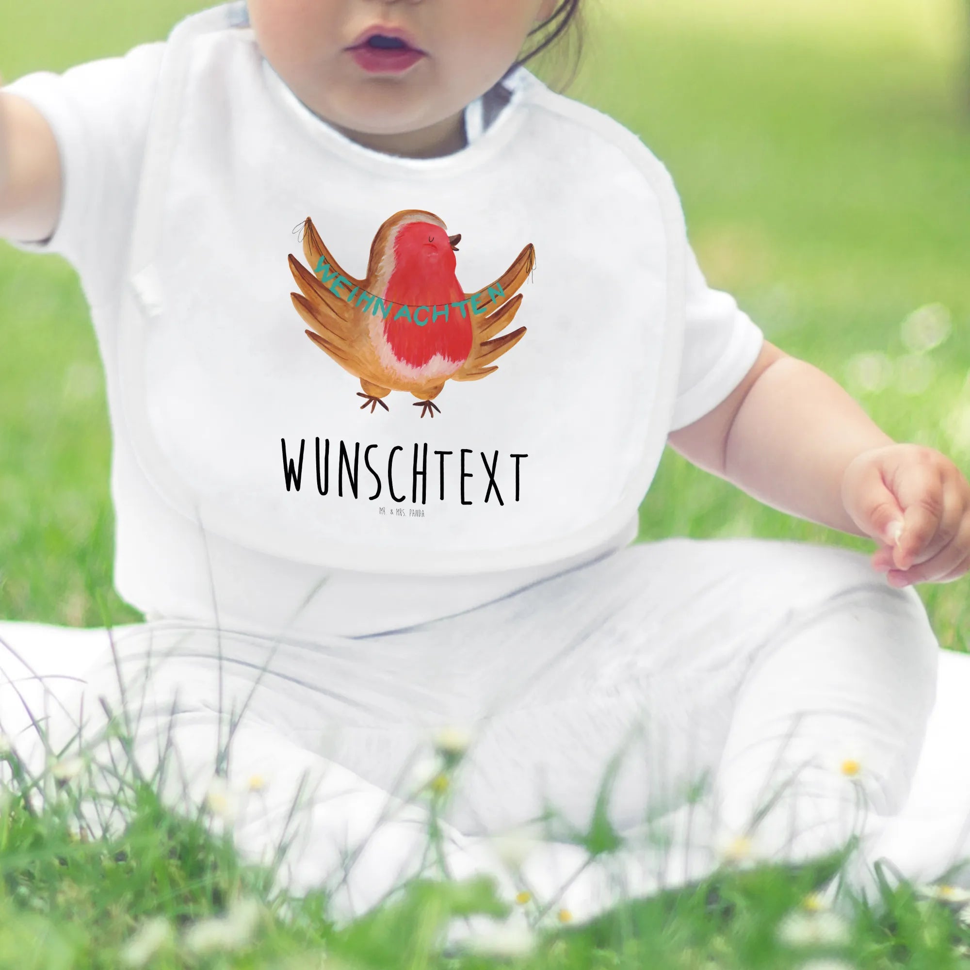 Personalisiertes Babylätzchen Rotkehlchen Weihnachten – Mr. & Mrs. Panda