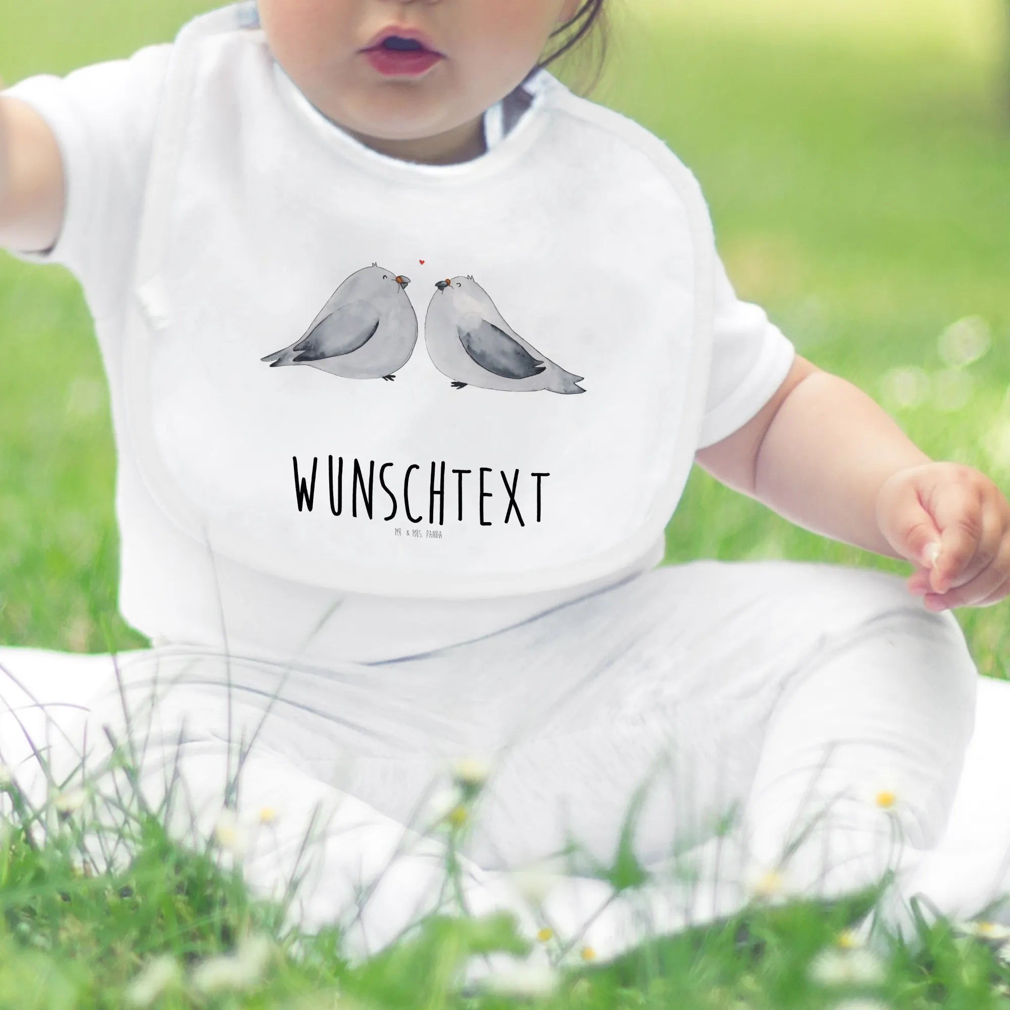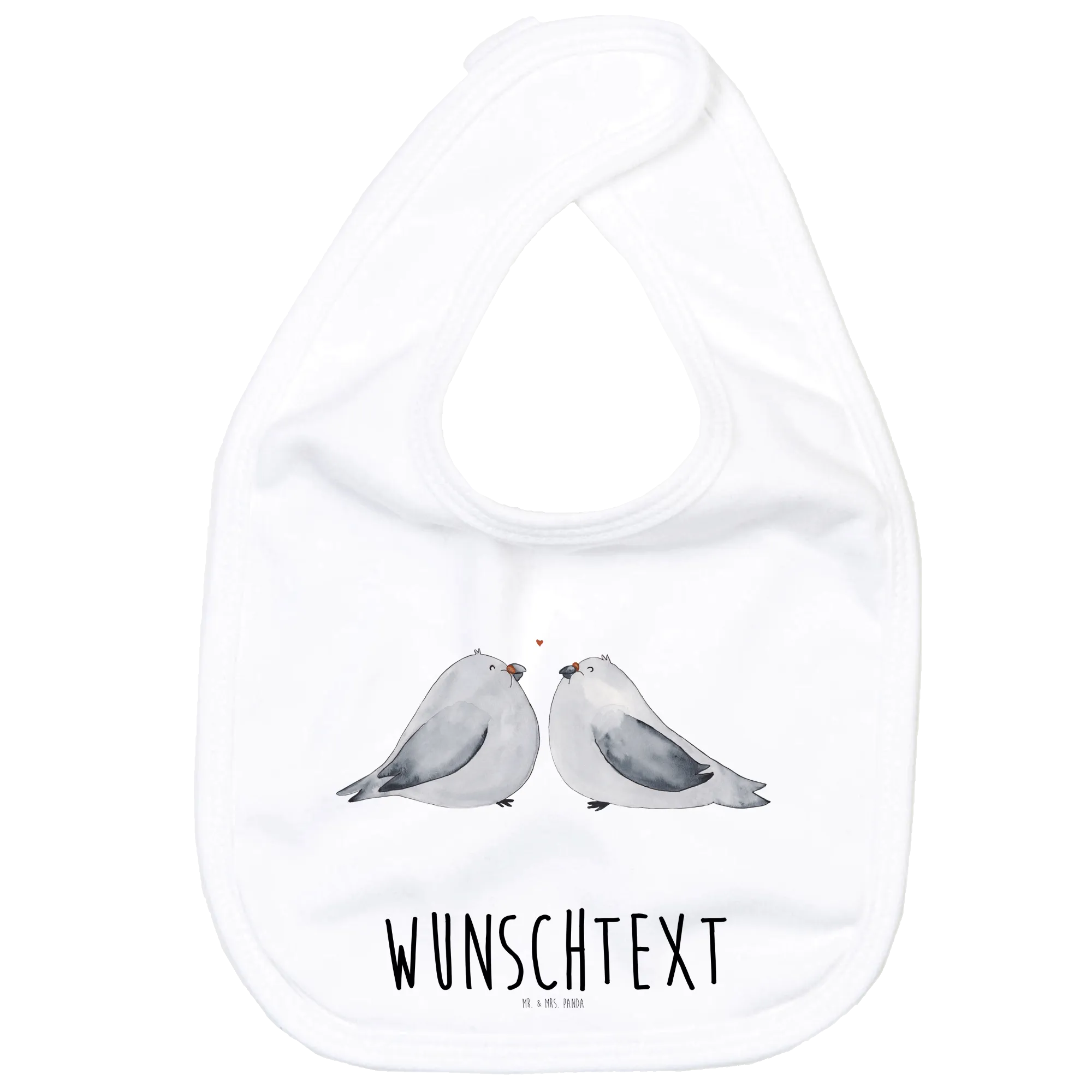 Das zarte Design zeigt die Tauben in sanften Grau- und Weißtönen, die sich liebevoll zu einander neigen. Zwischen ihren Schnäbeln schwebt ein kleines rotes Herz, das die Verbundenheit der beiden Vögel perfekt unterstreicht. Zudem kannst du das Lätzchen mit dem Namen des Babys personalisieren, was es zu einem einzigartigen Geschenk macht.
