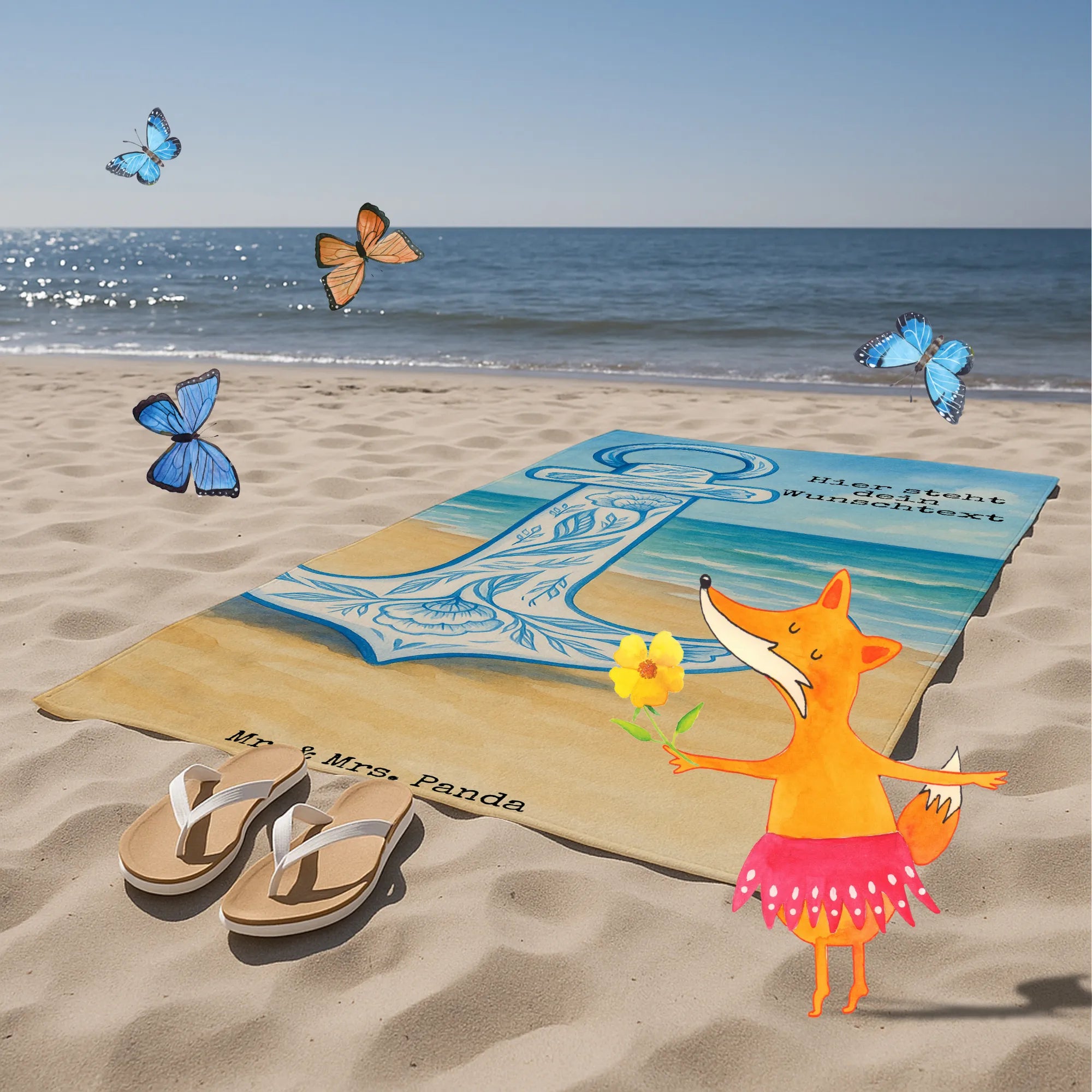 Personalisiertes Badehandtuch Anker Blau Design