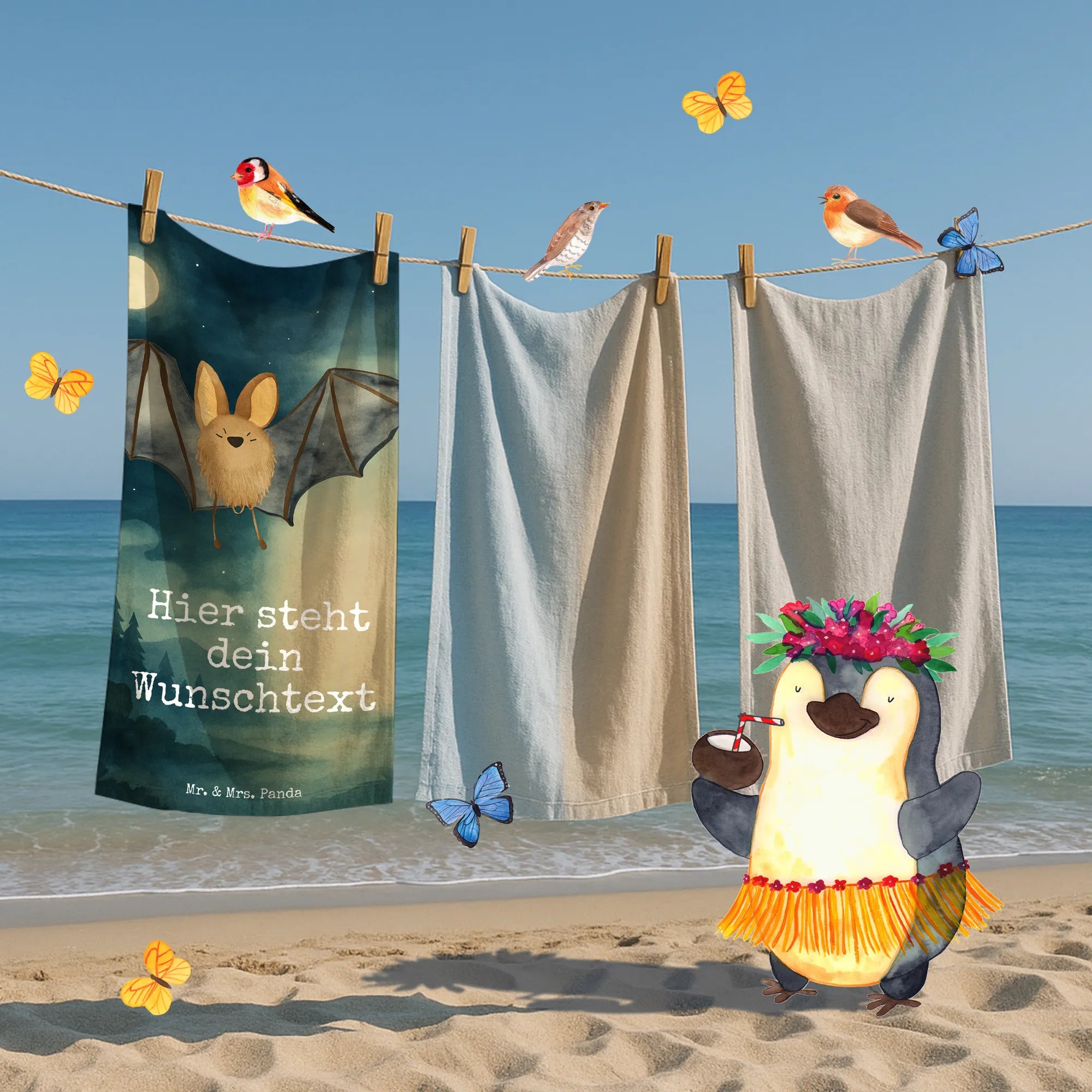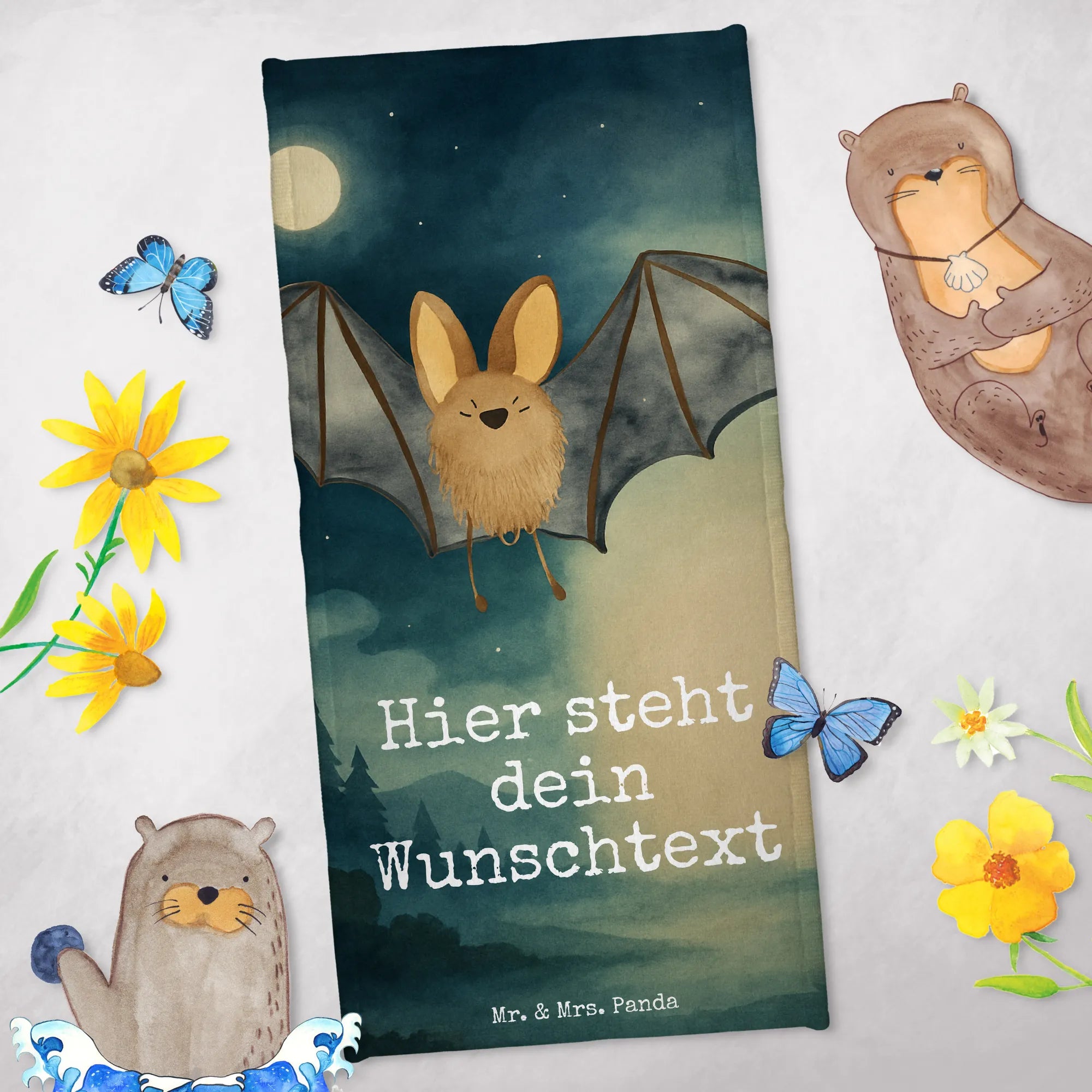 Personalisiertes Badehandtuch Fledermaus Flügel Design – Mr. & Mrs. Panda