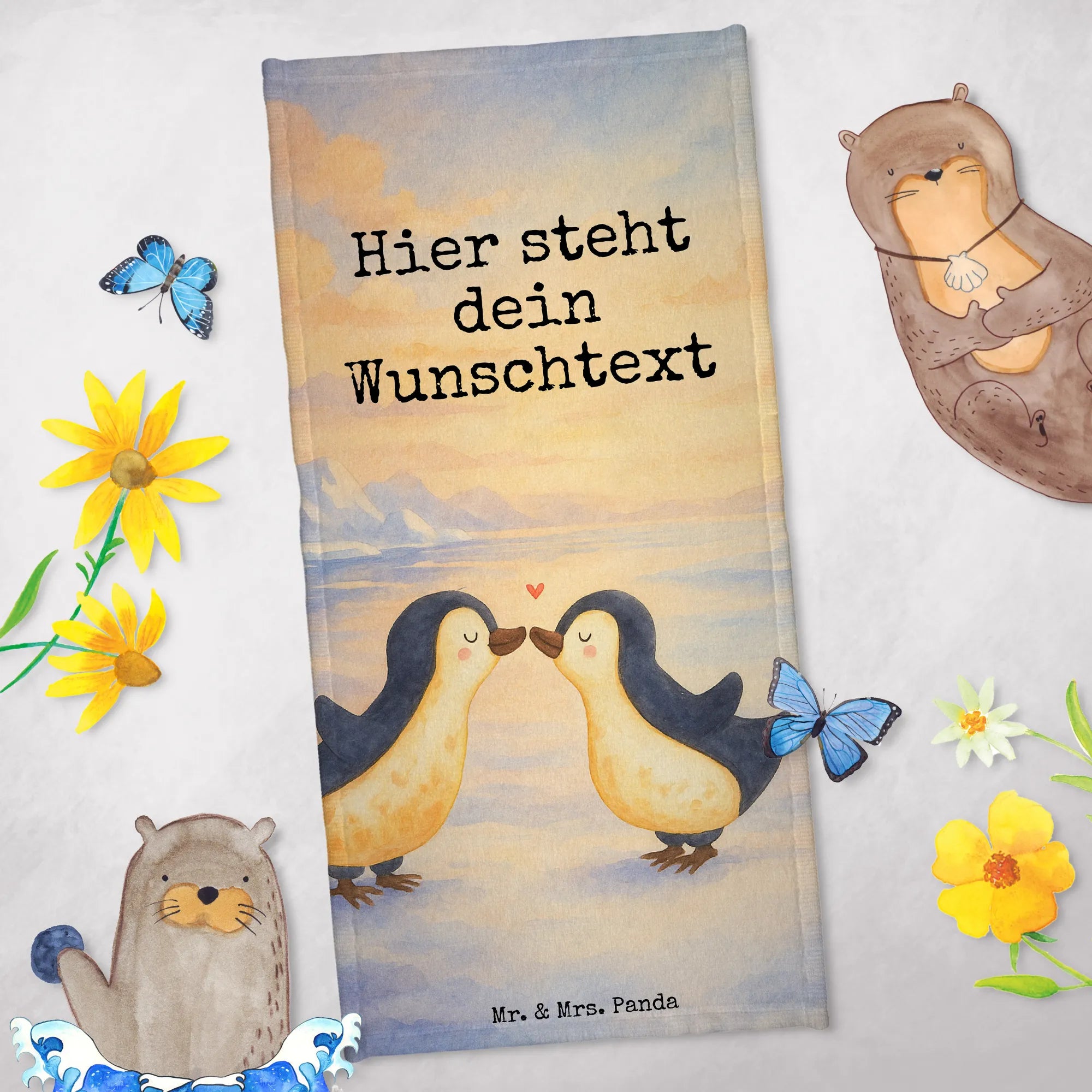 Personalisiertes Badehandtuch Pinguin Liebe Design