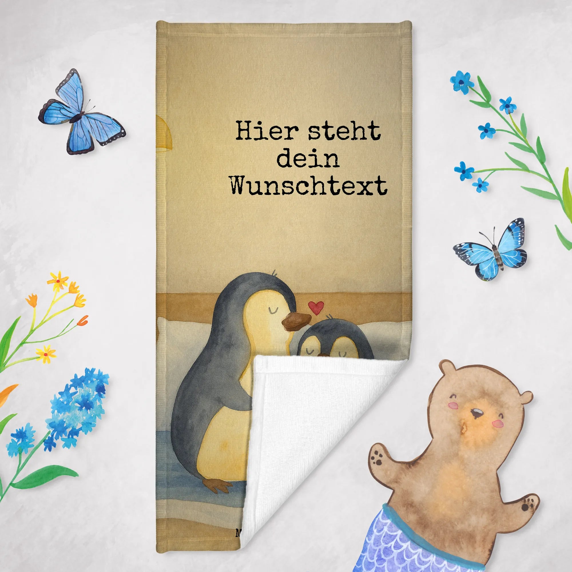 Personalisiertes Badehandtuch Pinguine Einschlafen Design