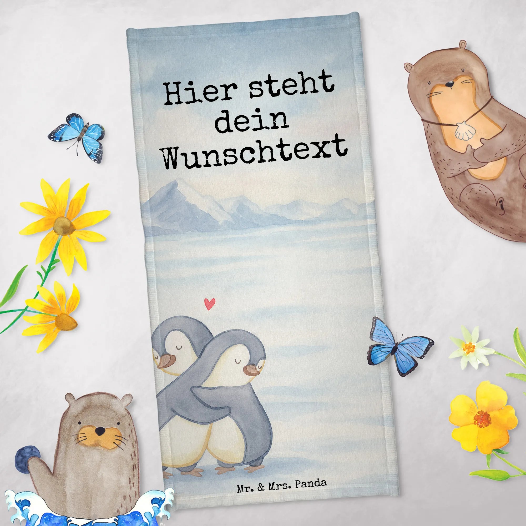 Personalisiertes Badehandtuch Pinguine Kuscheln Design
