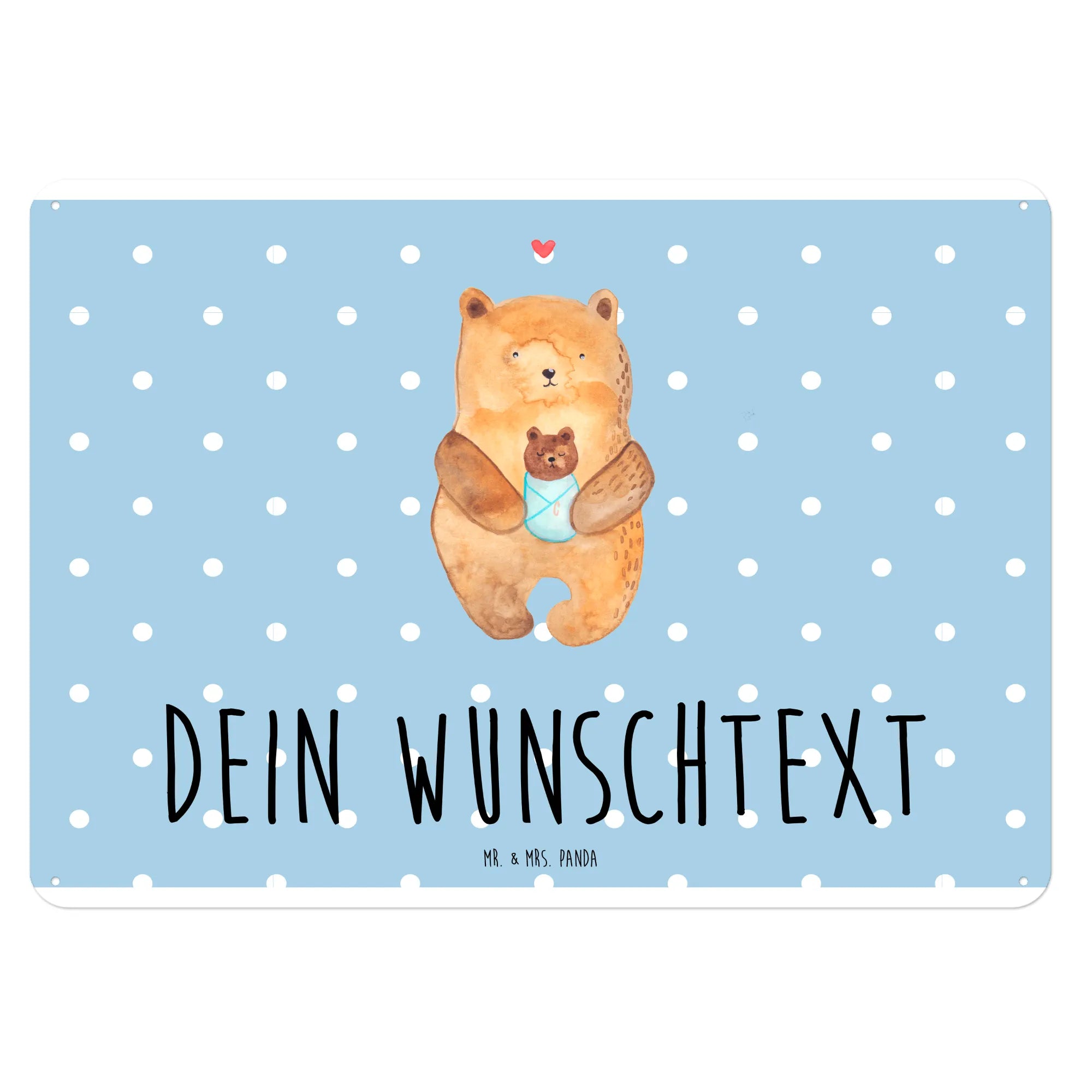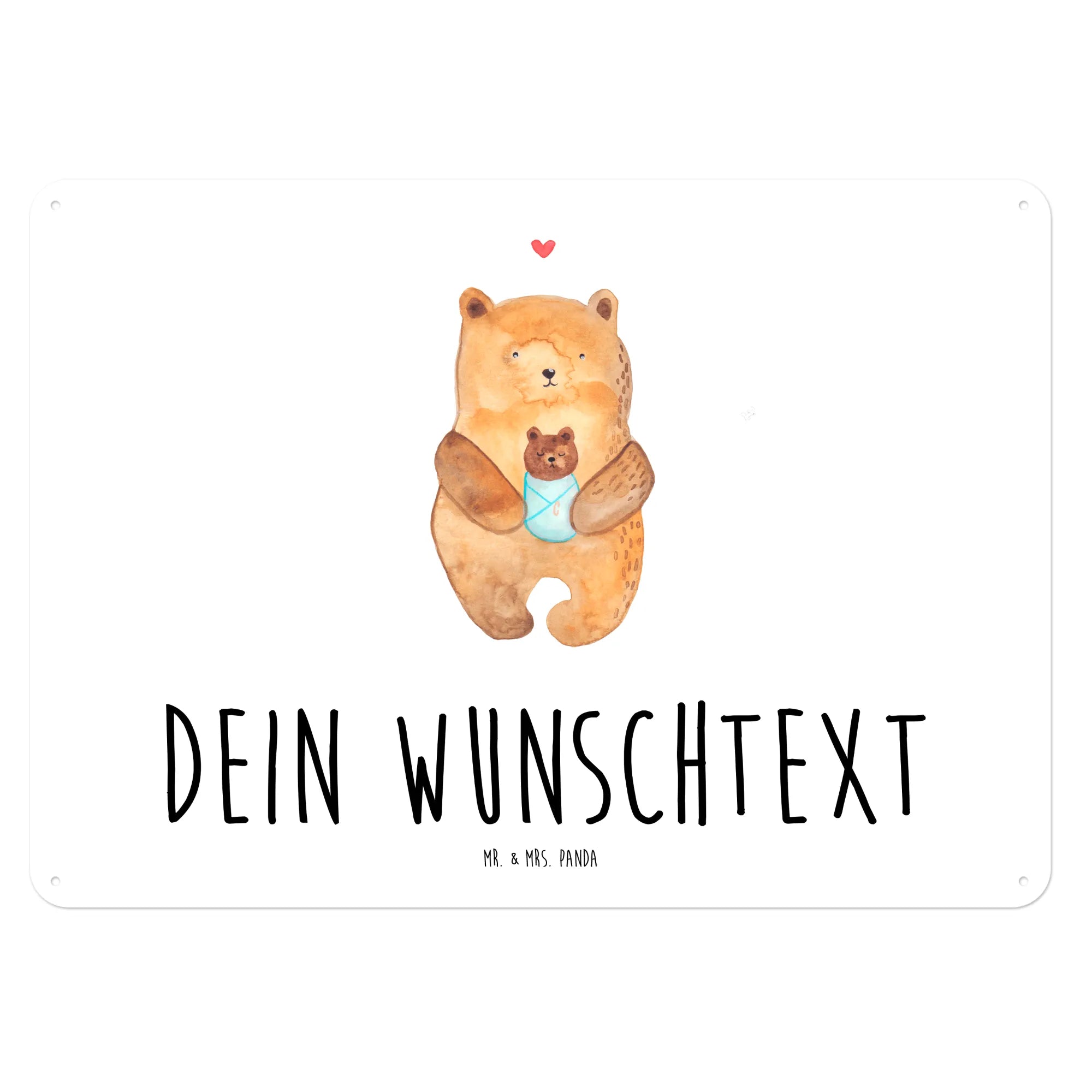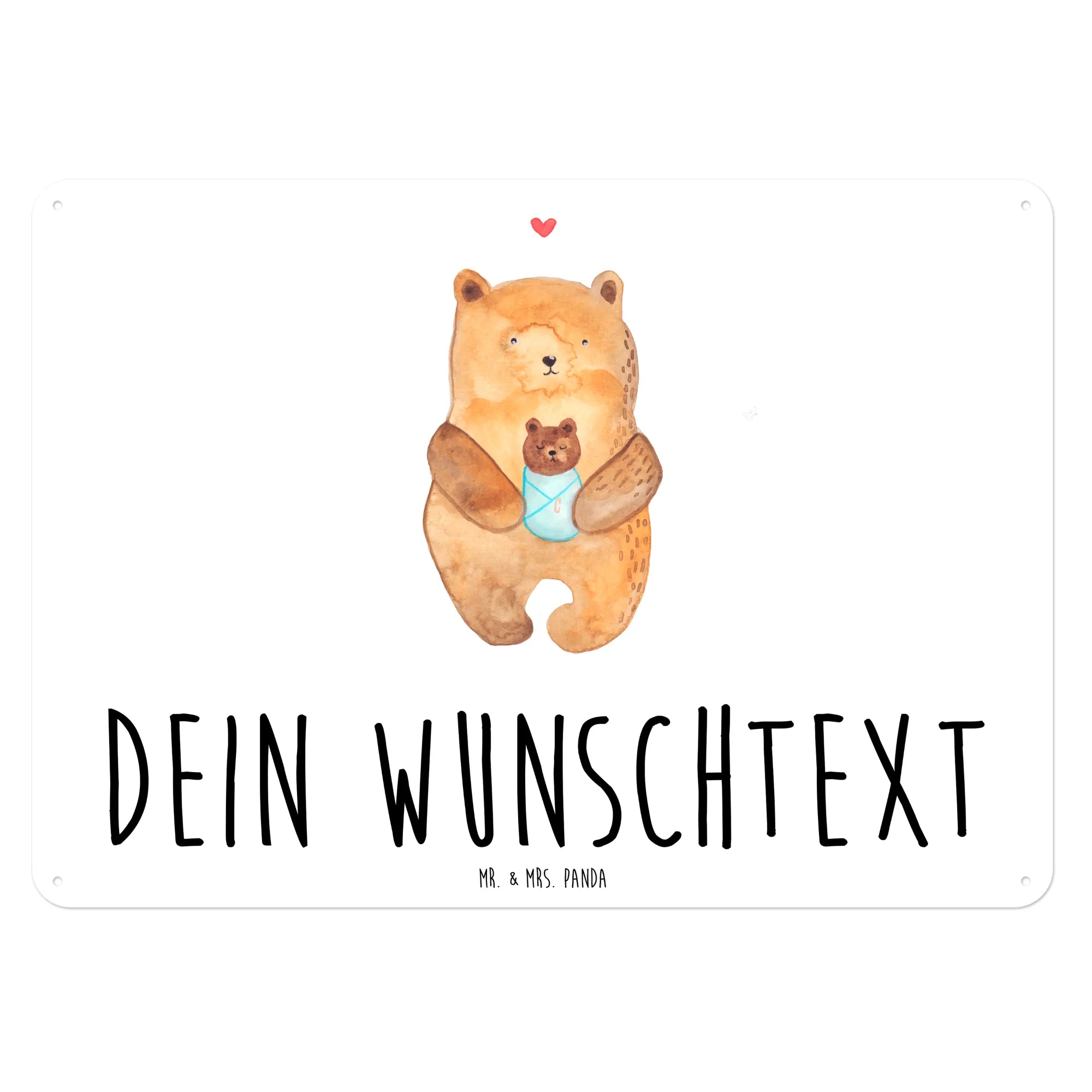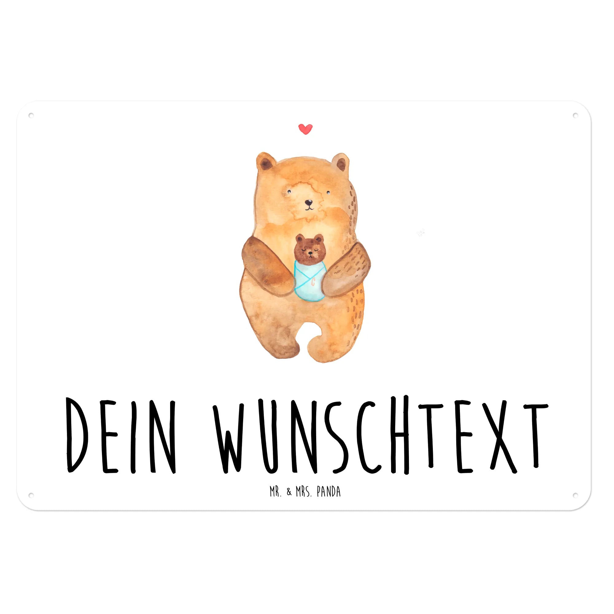 Das personalisierte Blechschild Bär mit Baby von Mr. & Mrs. Panda ist das ideale Geschenk für frischgebackene Eltern, Taufpaten oder zur Geburt eines kleinen Wunders. Mit einem niedlichen Bärenmotiv, das einen kleinen Babybären liebevoll in den Händen hält, zaubert dieses Schild jedem ein Lächeln ins Gesicht. Ob zur Taufe, Geburt, dem ersten Geburtstag oder einfach nur als herzlichen Glückwunsch – dieses Schild liefert eine besondere Botschaft, die berührt und Freude bereitet.