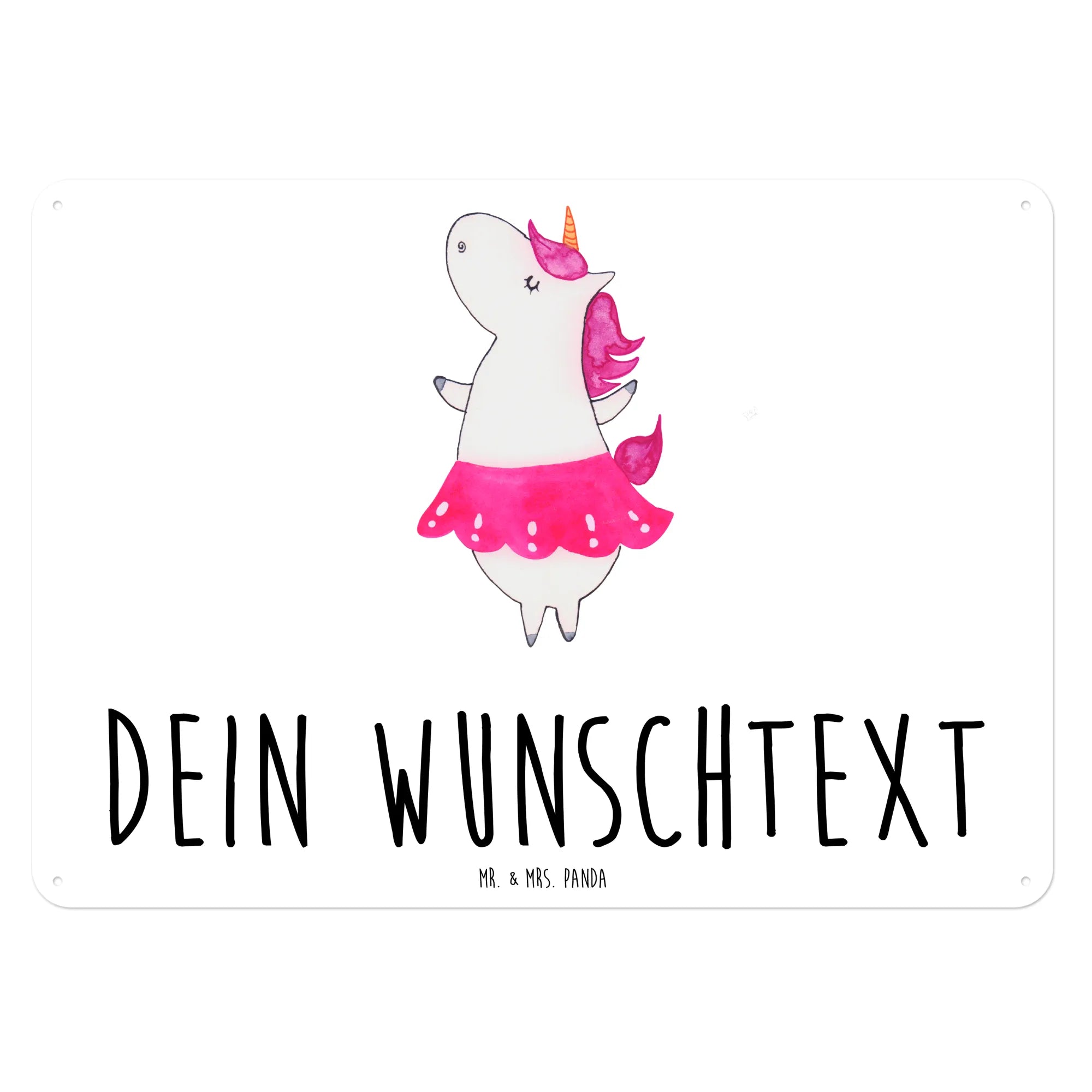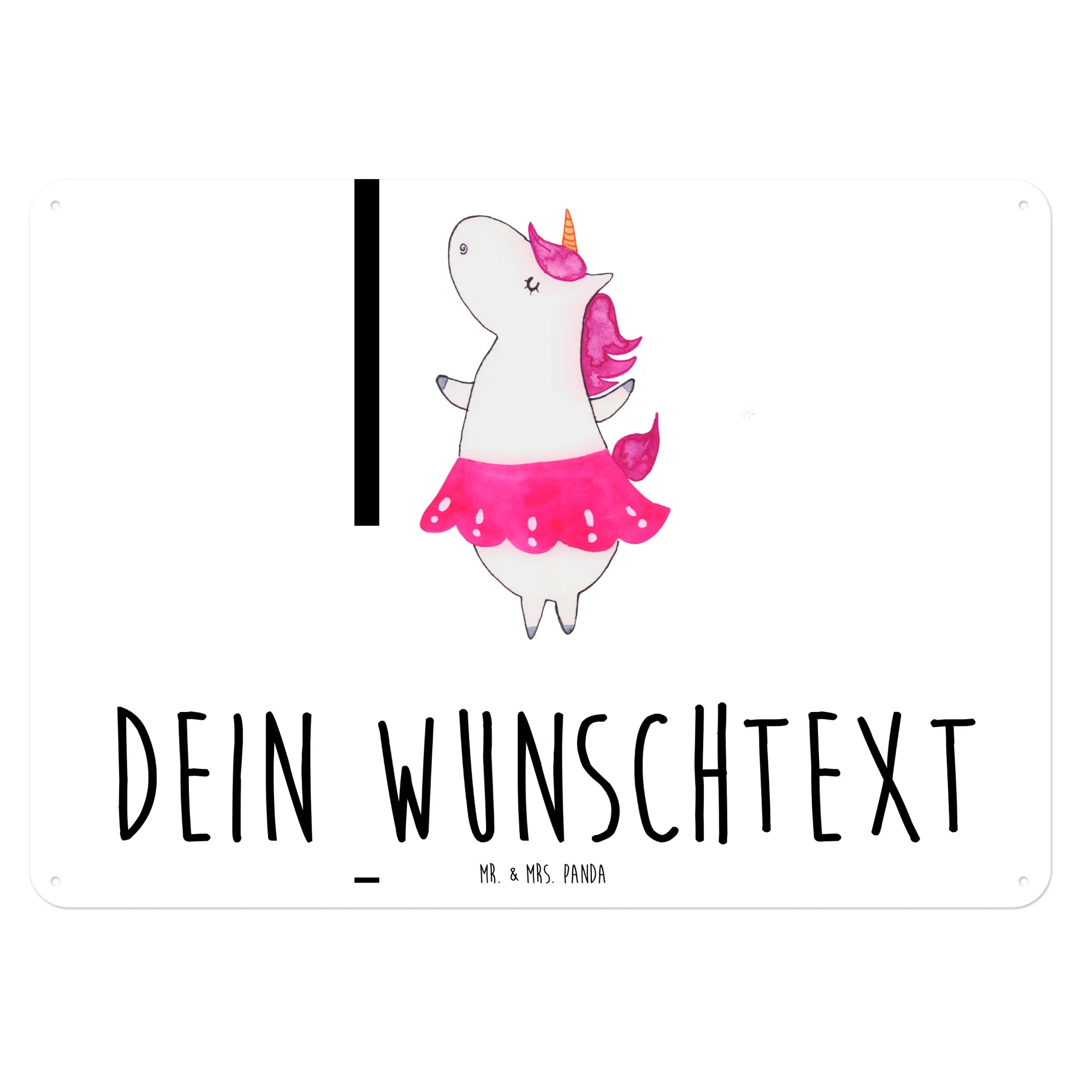 Das personalisierte Blechschild Einhorn Ballerina von Mr. & Mrs. Panda ist das ideale Geschenk für alle Tanzliebhaber und Einhornfreaks! Mit einem zauberhaften Motiv, das ein süßes Ballerina-Einhorn in einem wunderschönen Tütü zeigt, bringt dieses dekorative Schild Leben in jedes Zuhause.