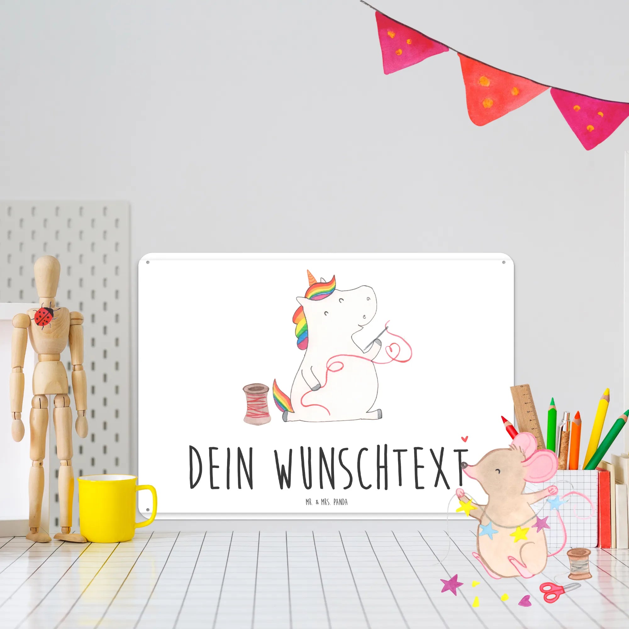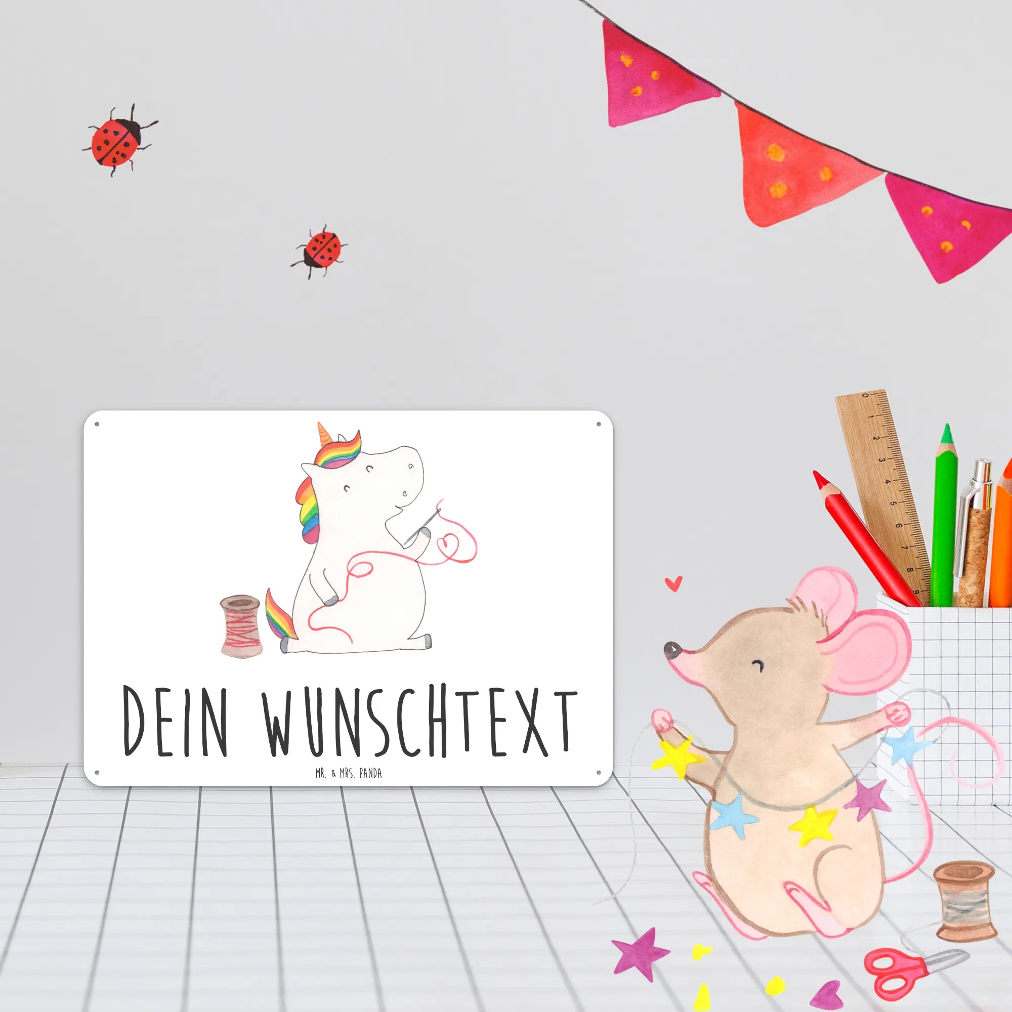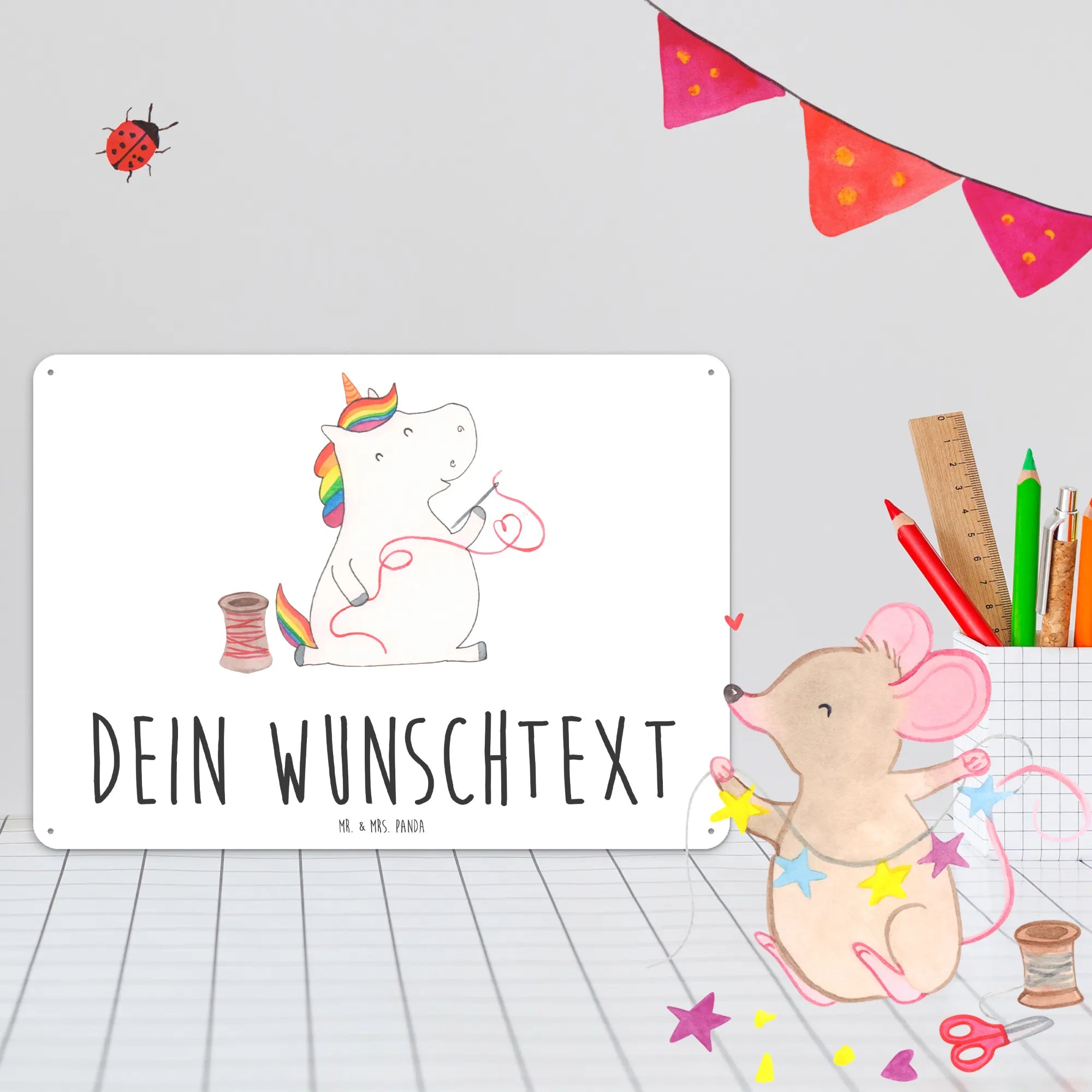 Das personalisierte Blechschild "Einhorn Näherin" von Mr. & Mrs. Panda ist das perfekte Geschenk für alle kreativen Seelen und Einhorn-Liebhaberinnen.