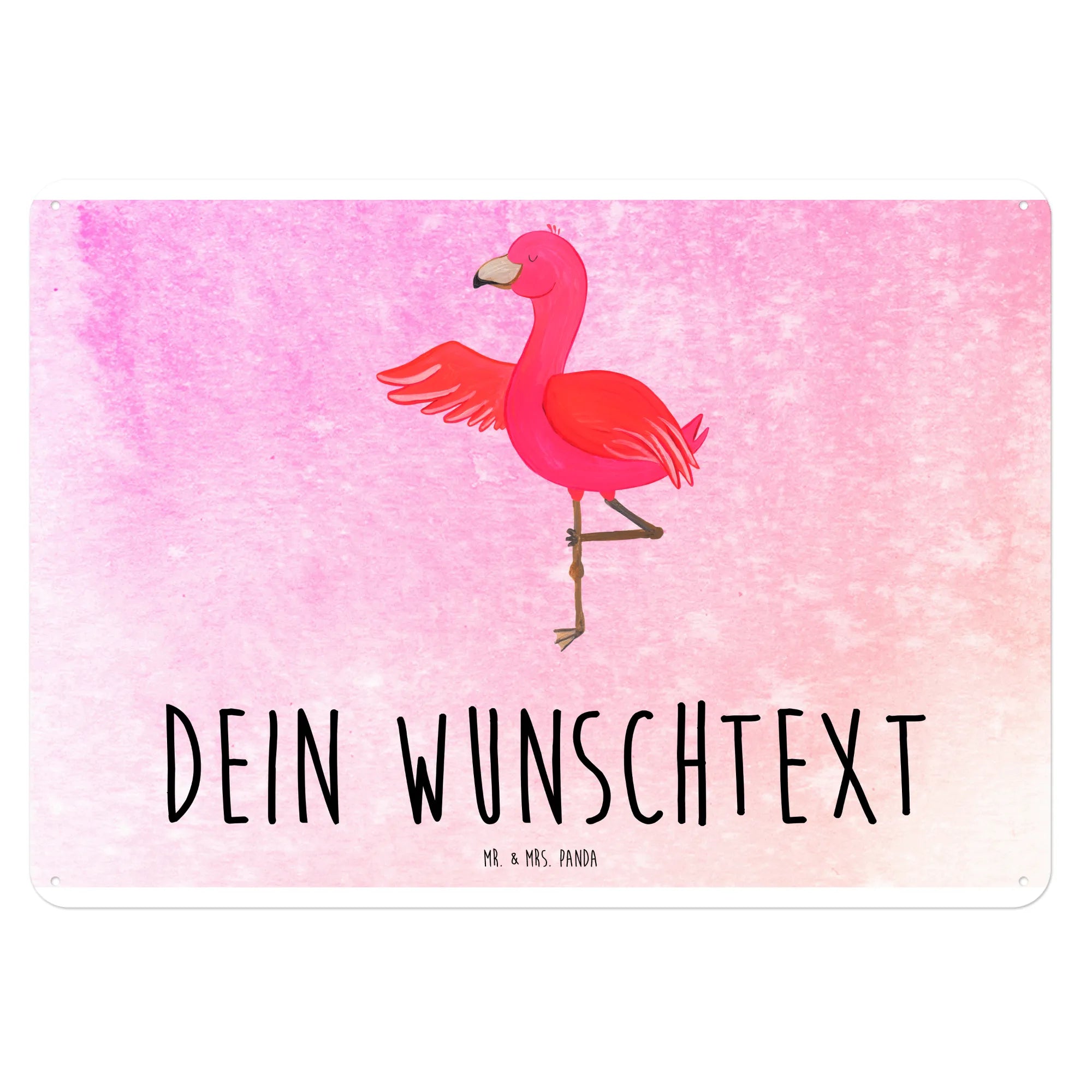 Personalisiertes Blechschild Flamingo Yoga – Sommer, Sonne, Ruhe! Unser Flamingo aus der Flamingo - Kollektion von Mr. & Mrs. Panda strahlt in sattem Pink und macht mit seiner Yoga-Pose Lust auf Entspannung. Der lustige Spruch „Ich rege mich nicht auf. Ich mache Yoga.“ passt perfekt an Türen, Wände, in die Küche oder ins Yogastudio und sorgt für ein Lächeln bei jedem Blick.