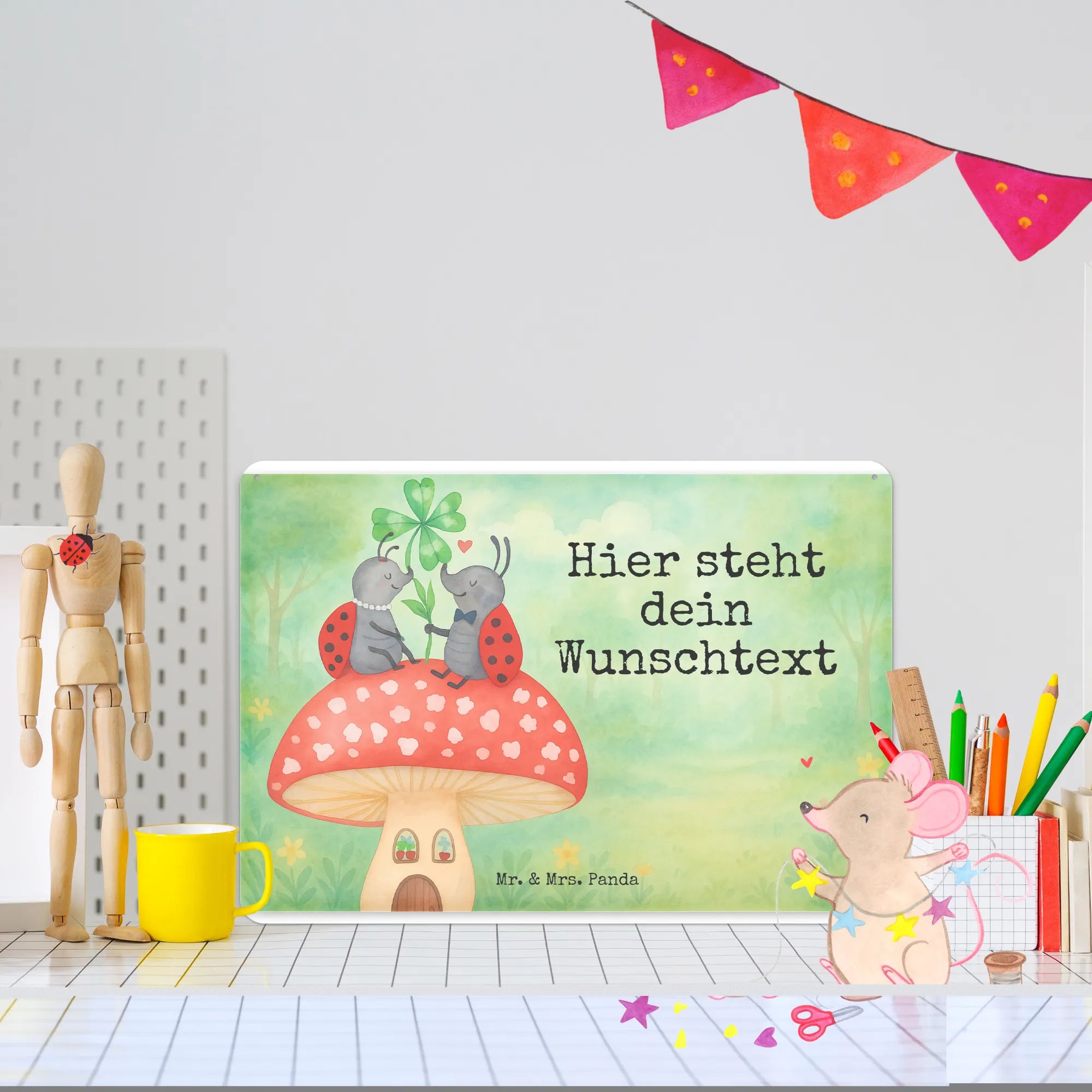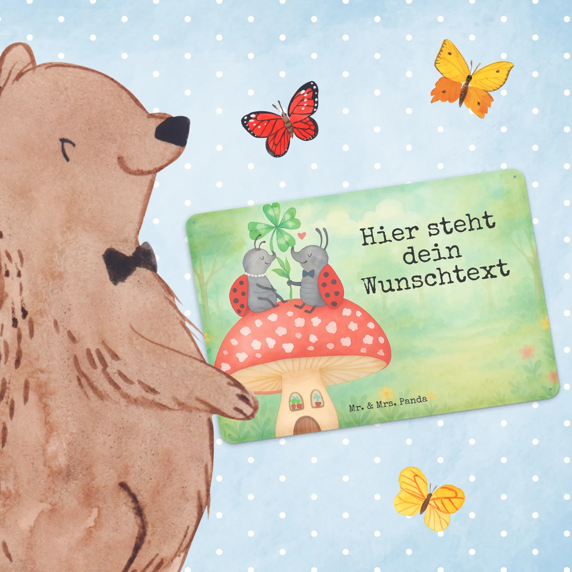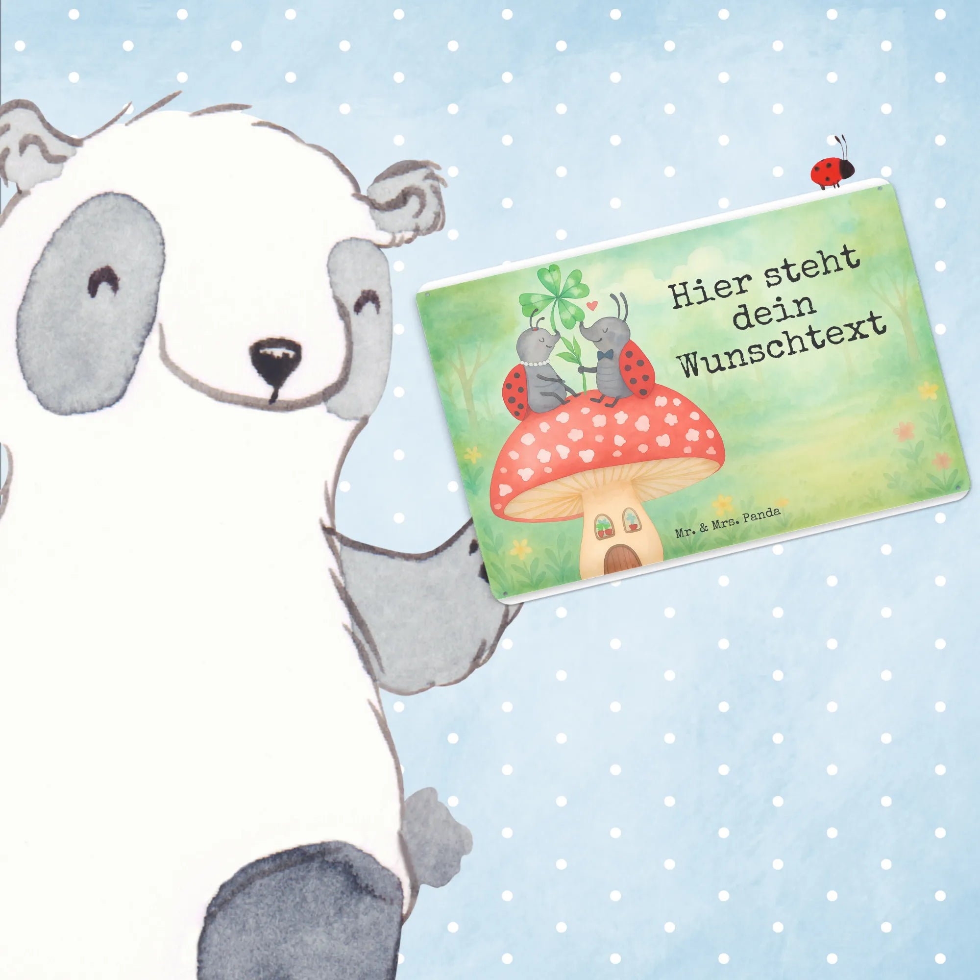 Personalisiertes Blechschild Marienkäfer Fliegenpilz Design – Mr. & Mrs. Panda