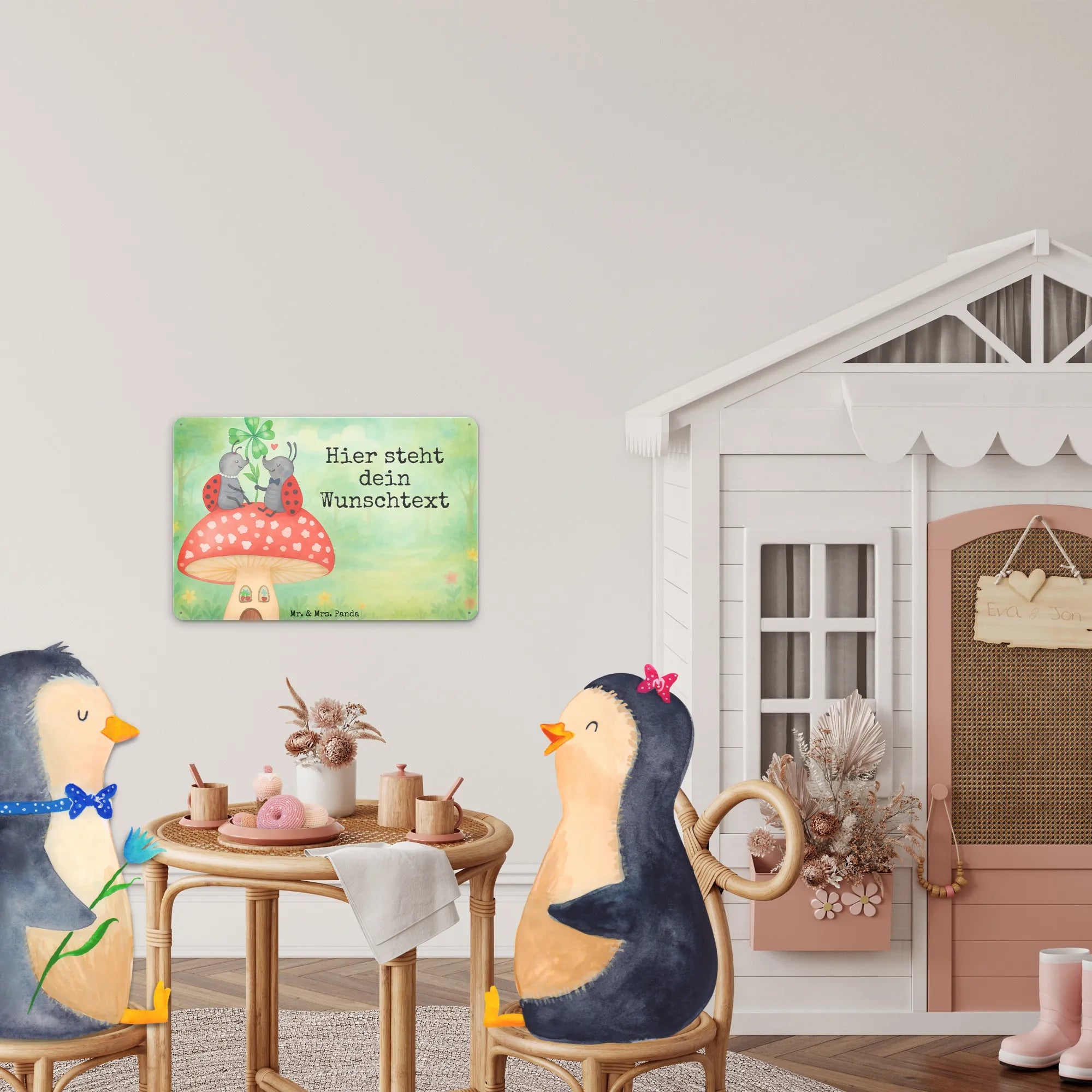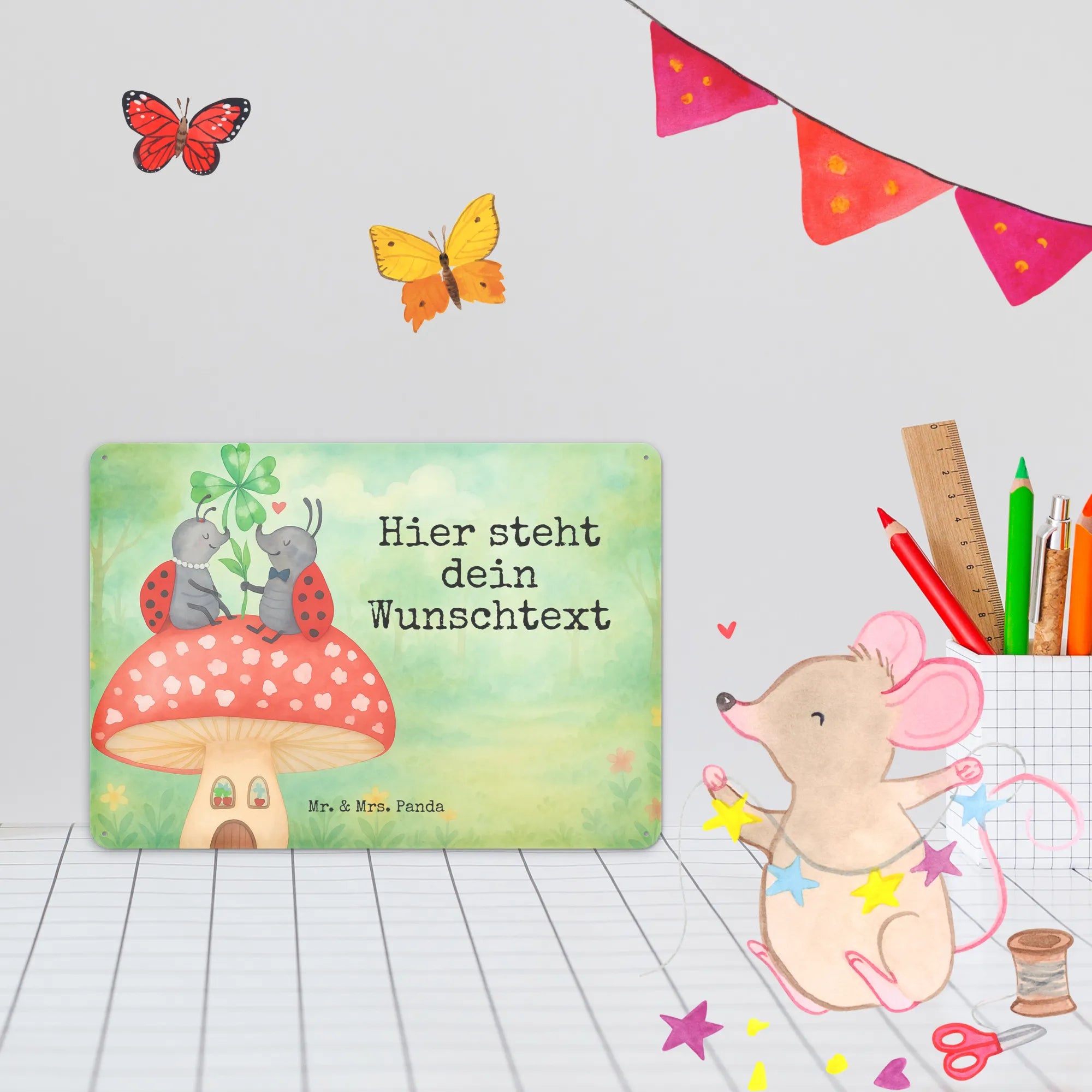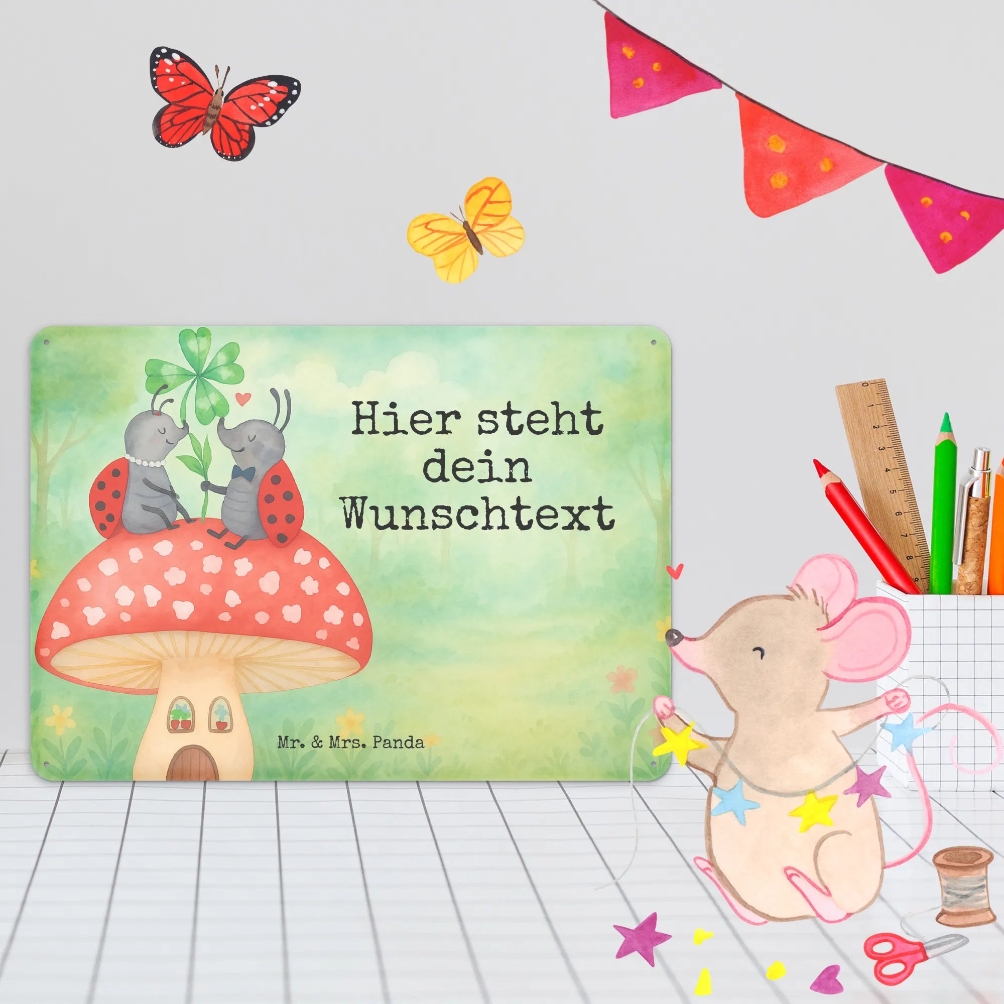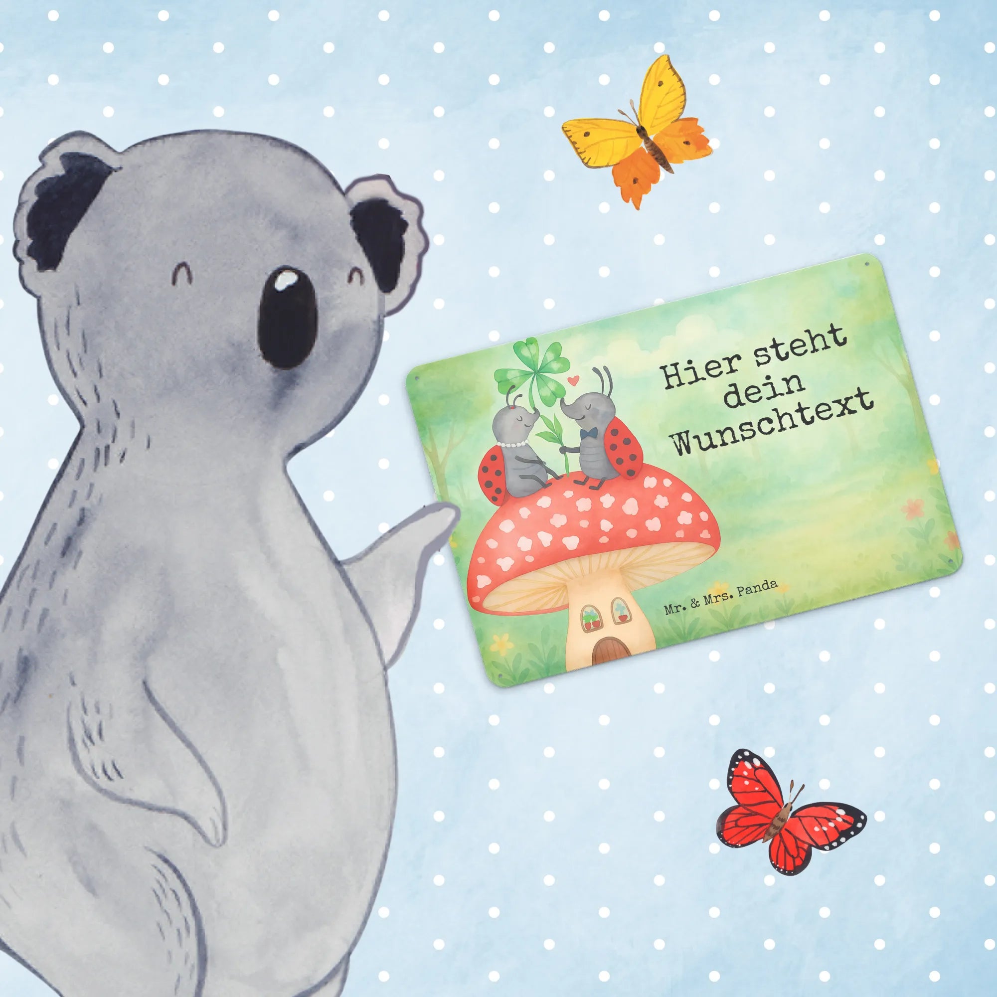 Personalisiertes Blechschild Marienkäfer Fliegenpilz Design – Mr. & Mrs. Panda