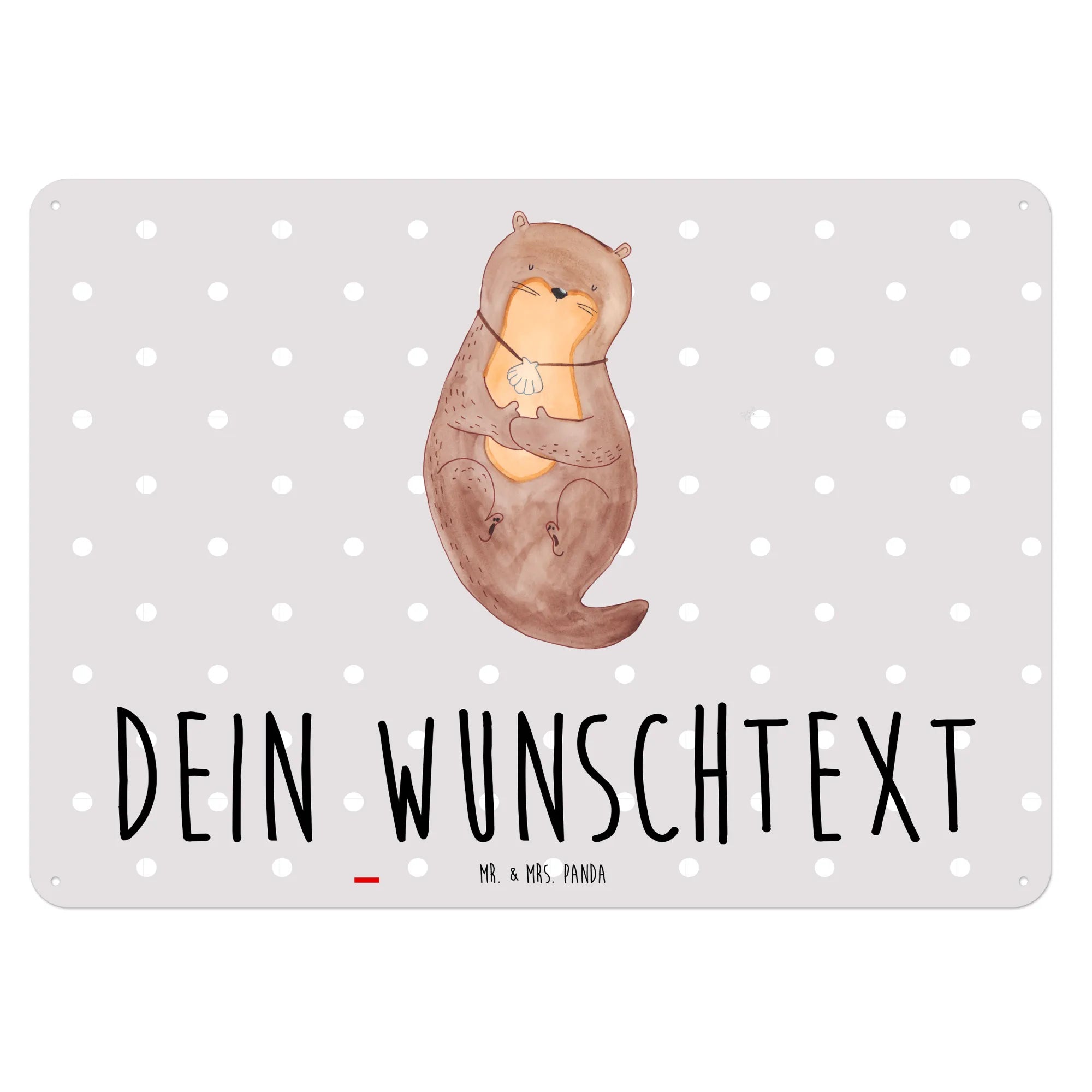 Personalisiertes Blechschild Otter Muschel - DIN A3 - Grau Pastell