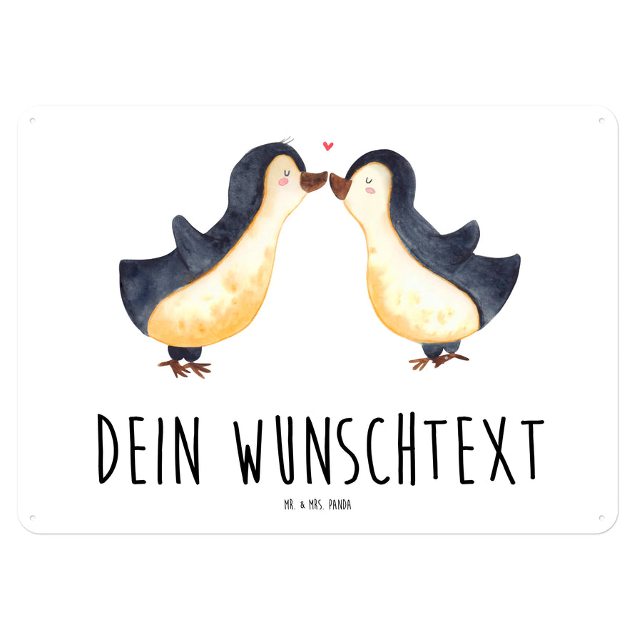 Das personalisierte Blechschild Pinguin Liebe von Mr. & Mrs. Panda ist das perfekte Geschenk für all jene, die ihre Liebe stilvoll ausdrücken möchten. Mit einem zauberhaften Motiv von zwei verliebten Pinguinen, die sich sanft an den Schnäbeln berühren, vermittelt dieses Schild eine herzerwärmende Botschaft.