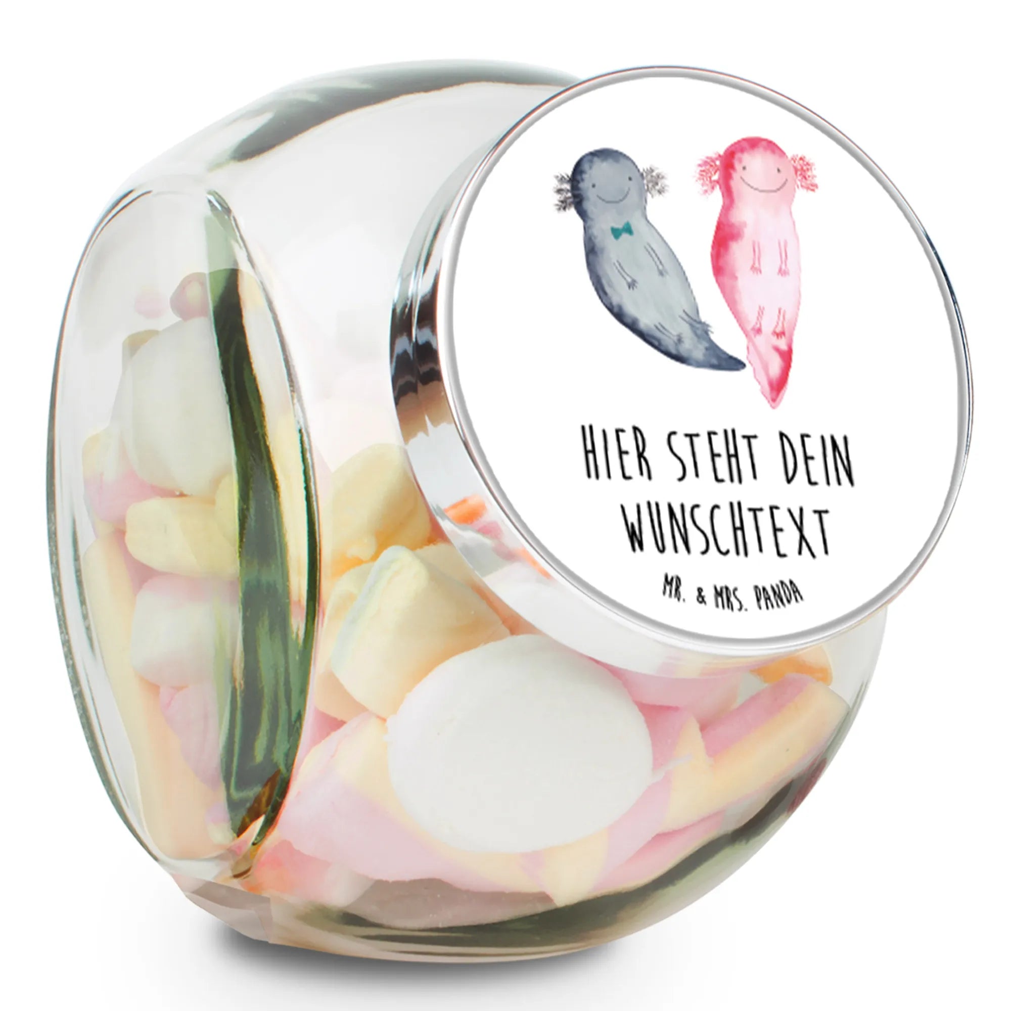 Das Personalisiertes Bonbonglas Axolotl Axel+Lotte von Mr. & Mrs. Panda ist das perfekte Geschenk für alle, die das Besondere lieben. In zwei Größen erhältlich, ist dieses wunderschöne Bonbonglas der ideale Aufbewahrungsort für deine Süßigkeiten, Kekse, Müsli, Kaffee oder Tee.