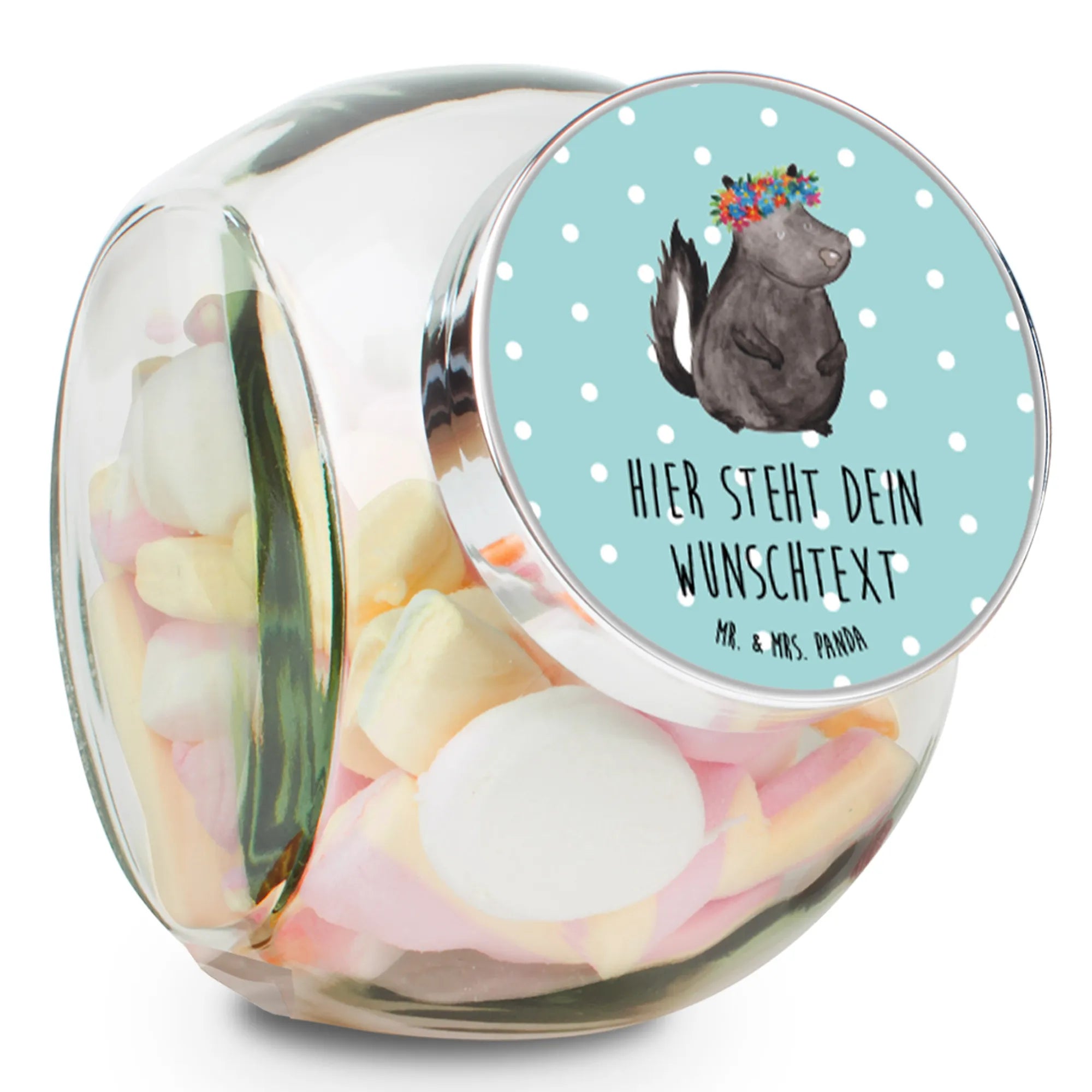 Du suchst nach einem perfekten Geschenk für die Liebsten oder einfach nur für dich selbst? Dann ist das personalisierte Bonbonglas mit dem zauberhaften Stinktier Blumenmädchen aus der Stinktier - Kollektion von Mr. & Mrs. Panda genau das Richtige! Dieses wunderschöne Glas mit 870 ml Fassungsvermögen ist nicht nur ein praktischer Küchenhelfer, sondern auch ein echter Hingucker.