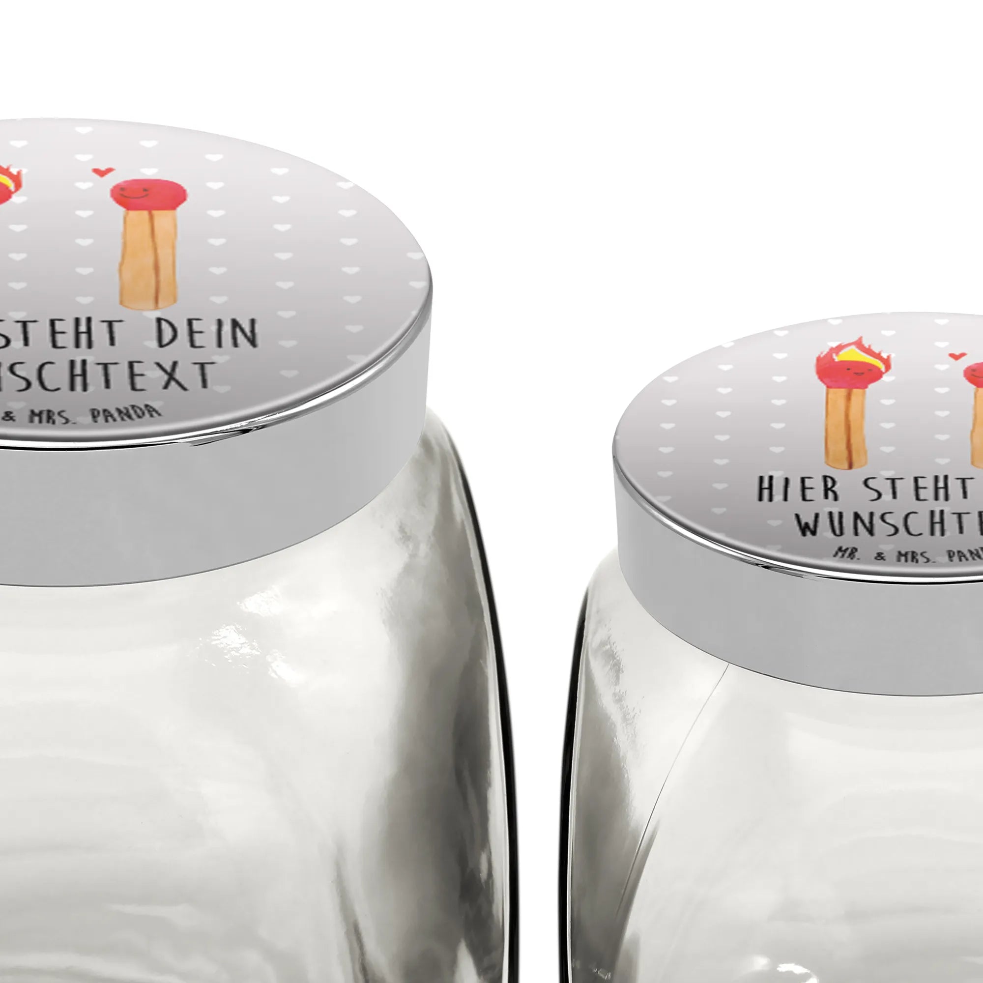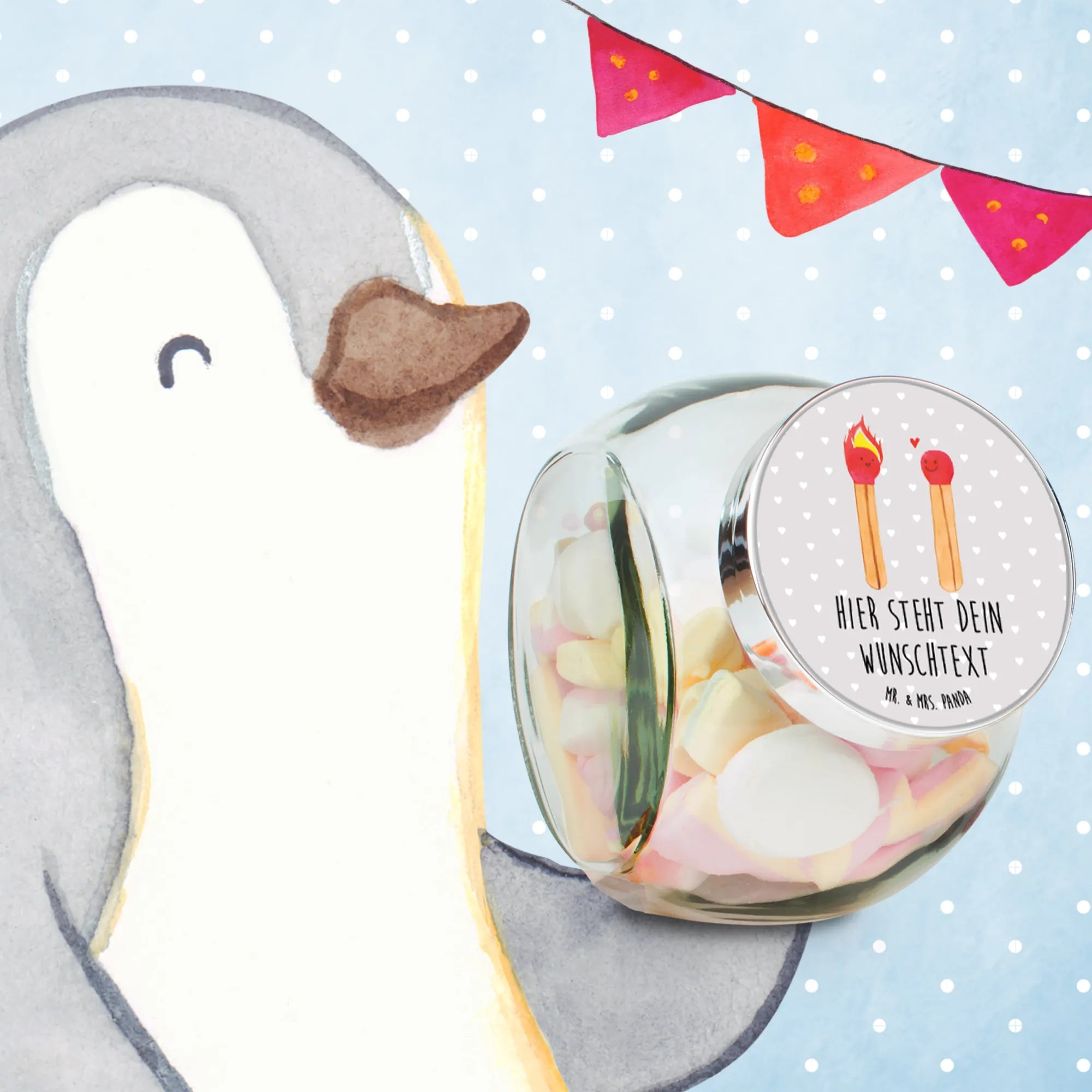 Das personalisierte Bonbonglas mit dem wunderschönen Motiv "Streichhölzer" aus der Kollektion "Liebe" von Mr. & Mrs. Panda ist das perfekte Geschenk für all jene, die ihre Zuneigung auf eine ganz besondere Art und Weise ausdrücken möchten.