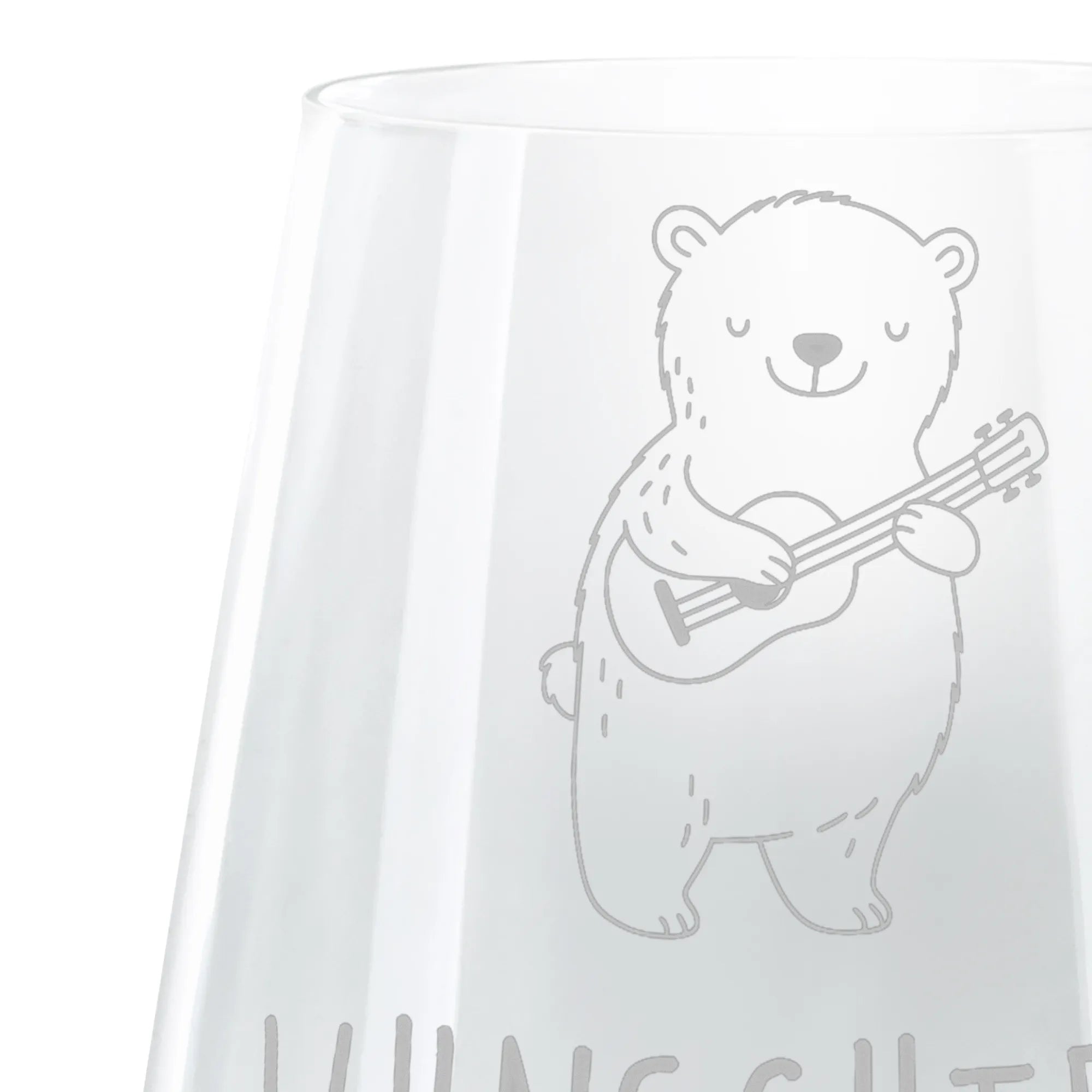 Das einzigartige Design zeigt einen fröhlichen Bären, der auf seiner Gitarre spielt – ein echtes Must-Have für alle Musikfreunde! Die hochwertige Lasergravur verleiht dem Glas einen edlen, matten Effekt, der das Motiv besonders gut zur Geltung bringt. Du kannst das Glas außerdem mit deinem persönlichen Wunschtext gestalten, sei es ein Name oder ein liebevoller Spruch – so wird es zu einem ganz individuellen Geschenk!