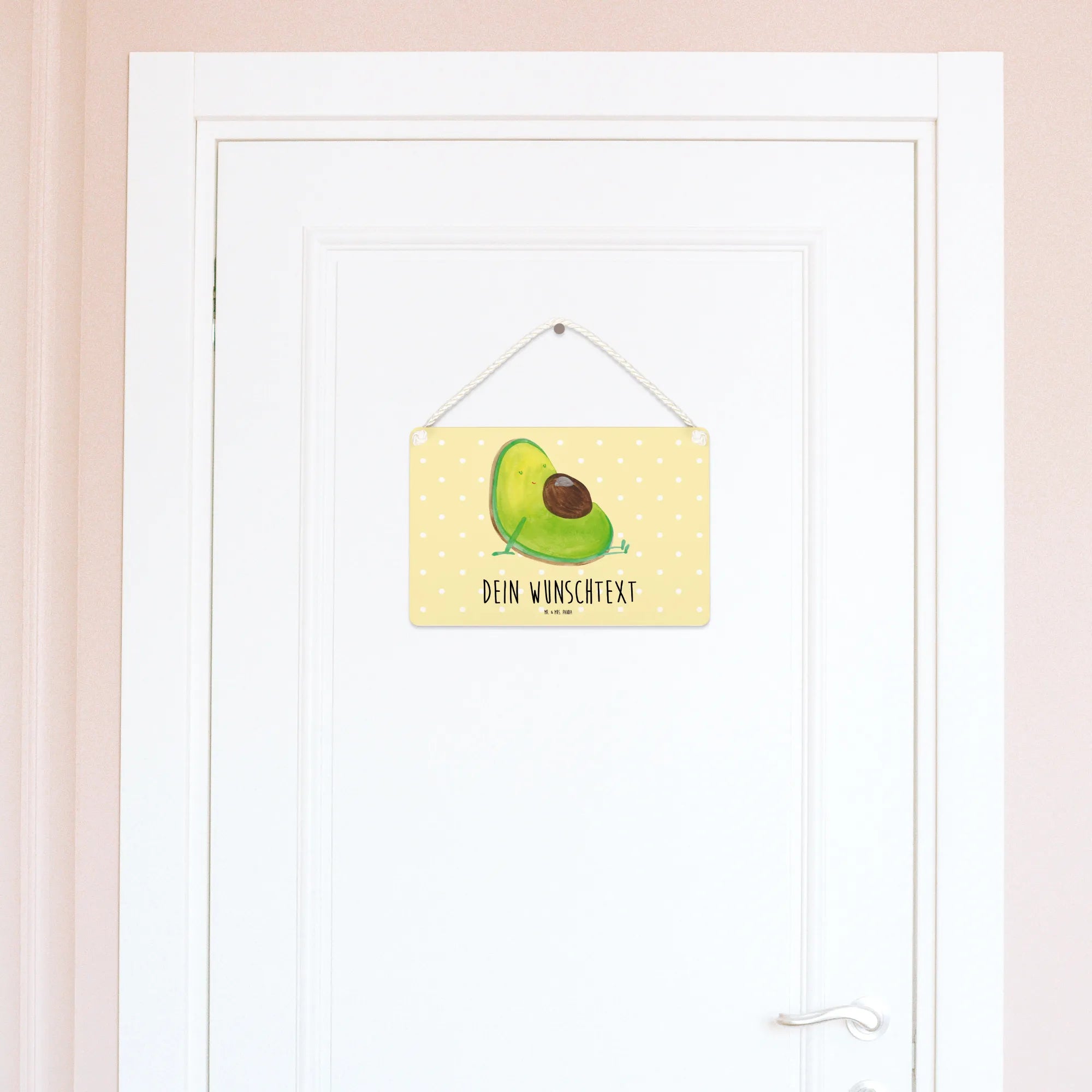 Das personalisierte Deko Schild "Avocado schwanger" von Mr. & Mrs. Panda ist das perfekte Geschenk für werdende Mütter und alle, die sich auf eine Babyfeier oder Babyshower vorbereiten. In einem wunderschönen, pastellgelben Design, verleiht das Schild jedem Raum eine fröhliche Atmosphäre. Motiviert von der positiven Botschaft "Schwanger und darauf stolz wie Bolle." zeigt es eine niedliche Avocado, die ihren dicken Kern, der der Schwangerschaftsbauch symbolisiert, stolz betrachtet.