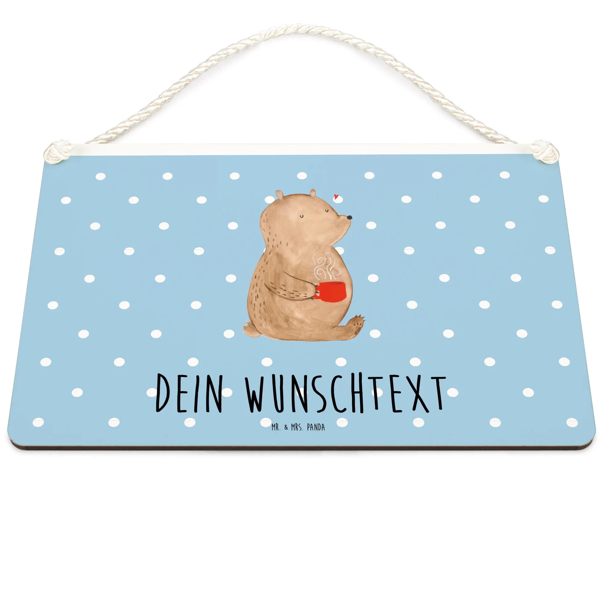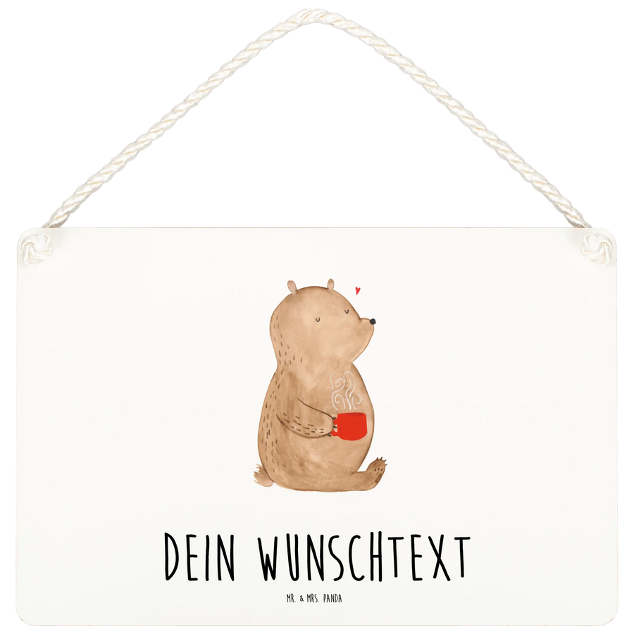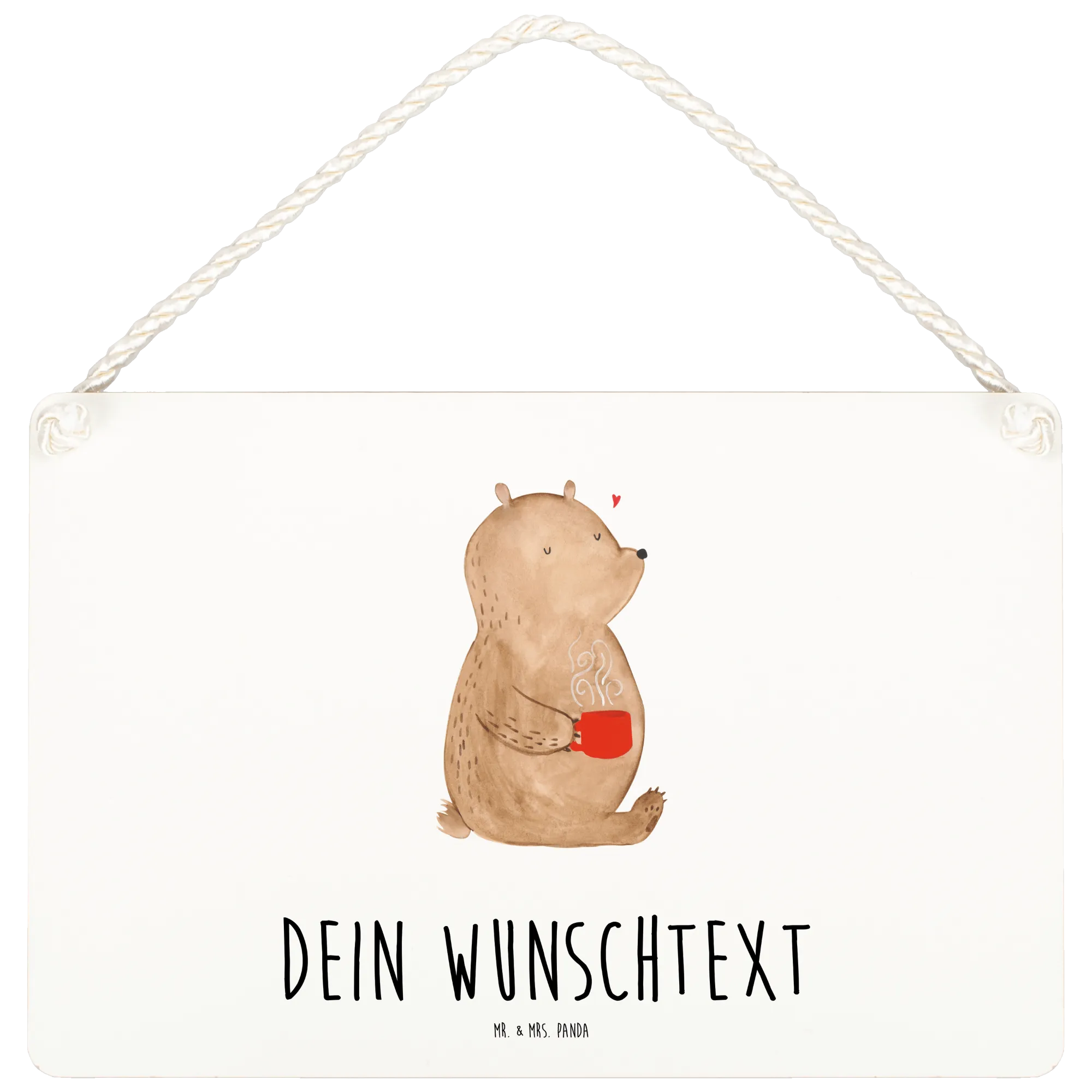 Personalisiertes Deko Schild Bär Kaffee - DIN A6 - Weiß