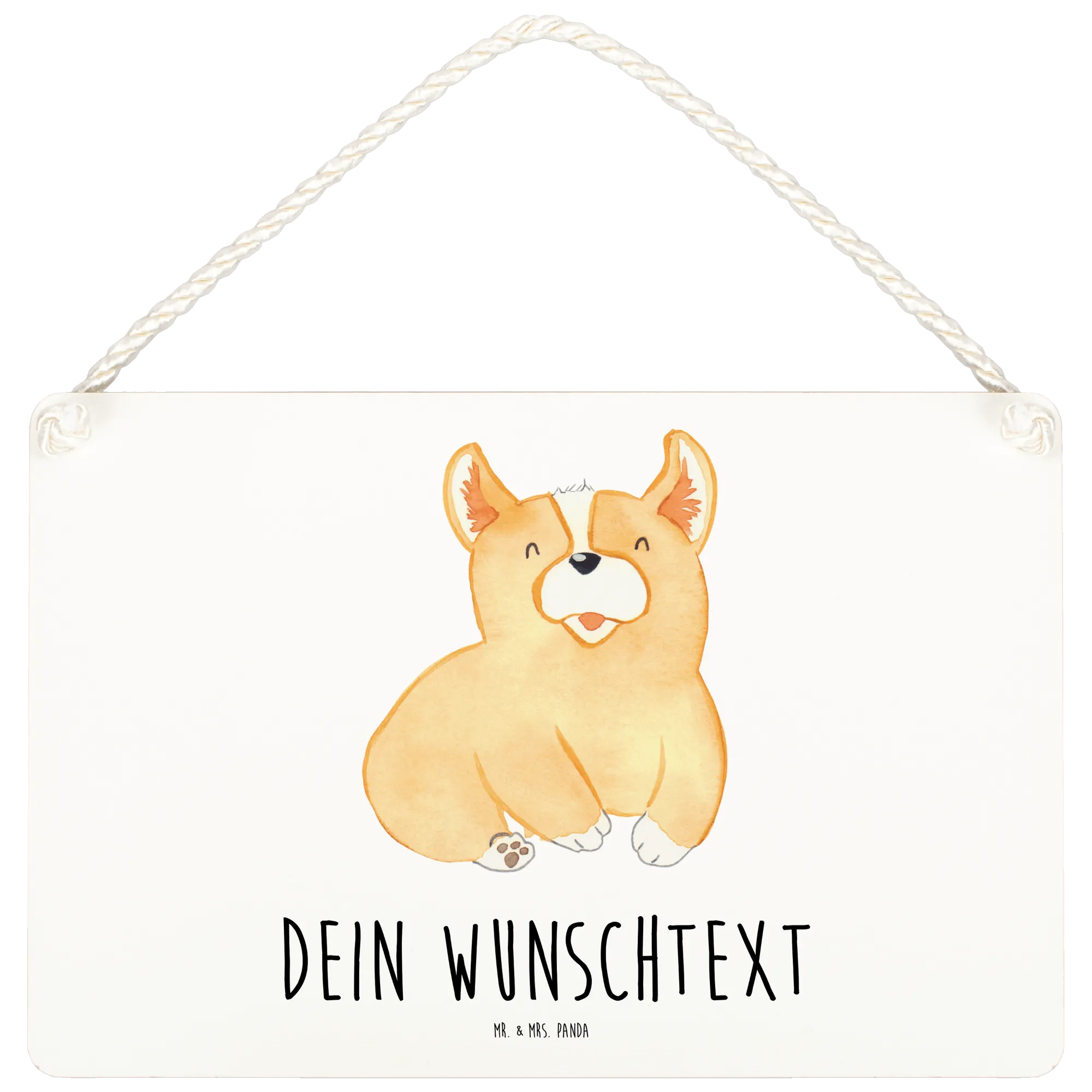 Personalisiertes Deko Schild Corgie - DIN A6 - Weiß