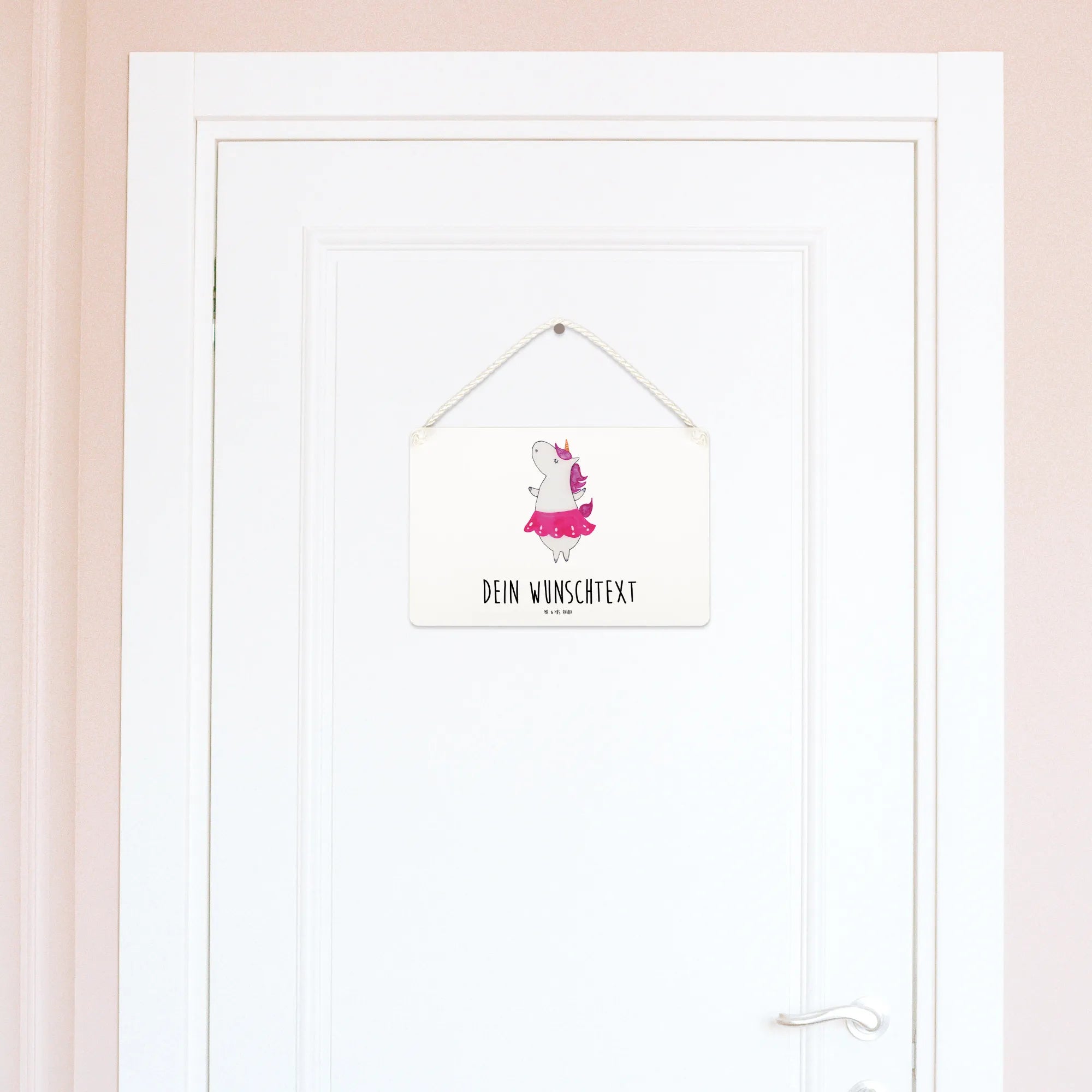 Entdecke unser zauberhaftes personalisiertes Deko Schild mit dem fröhlichen Motiv des Ballerina-Einhorns! Dieses wunderschöne Schild von Mr. & Mrs. Panda ist die perfekte Deko für jedes Kinderzimmer oder das eigene Zuhause.