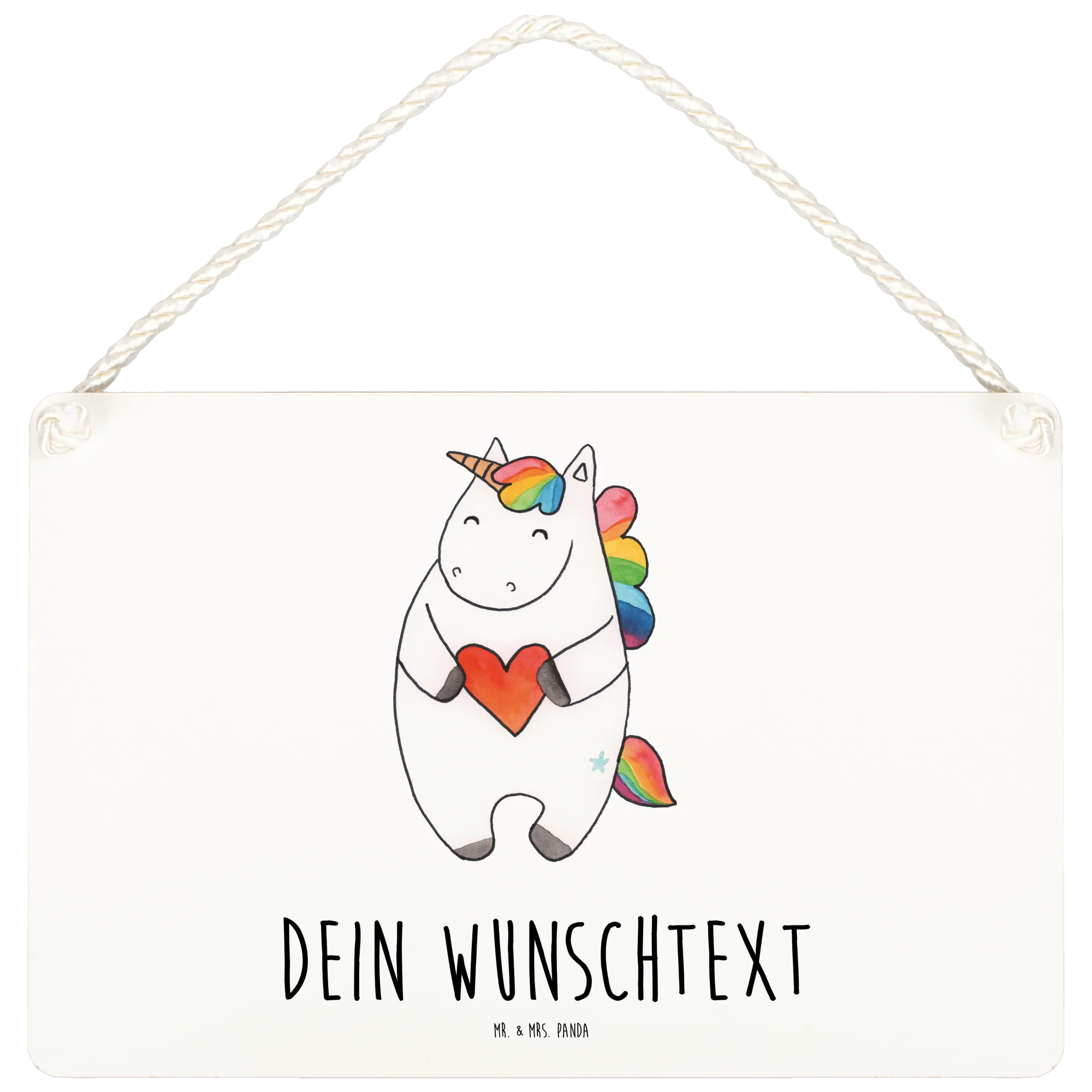 Das personalisierte Deko Schild Einhorn Herz von Mr. & Mrs. Panda ist das perfekte Geschenk für all jene, die ein Stück Zauber und Fantasie in ihr Zuhause bringen möchten.