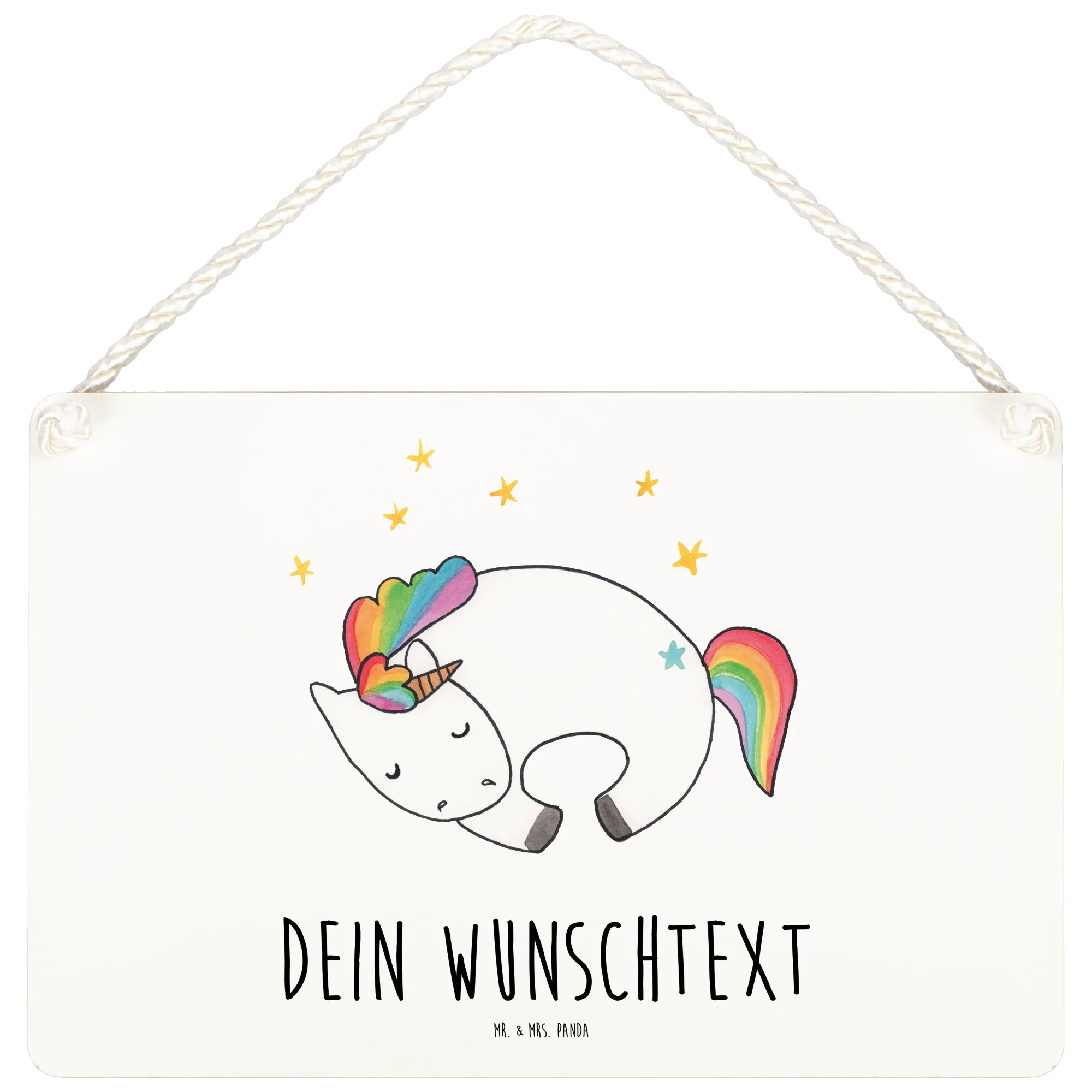 Unsere Einhorn-Motive wurden von Mrs. Panda per Aquarell handgezeichnet und sorgfältig gedruckt, damit die Farben lange strahlen. Die Oberfläche ist beschichtet und das Schild kommt mit einer hübschen, gedrehten Kordel zum Aufhängen.