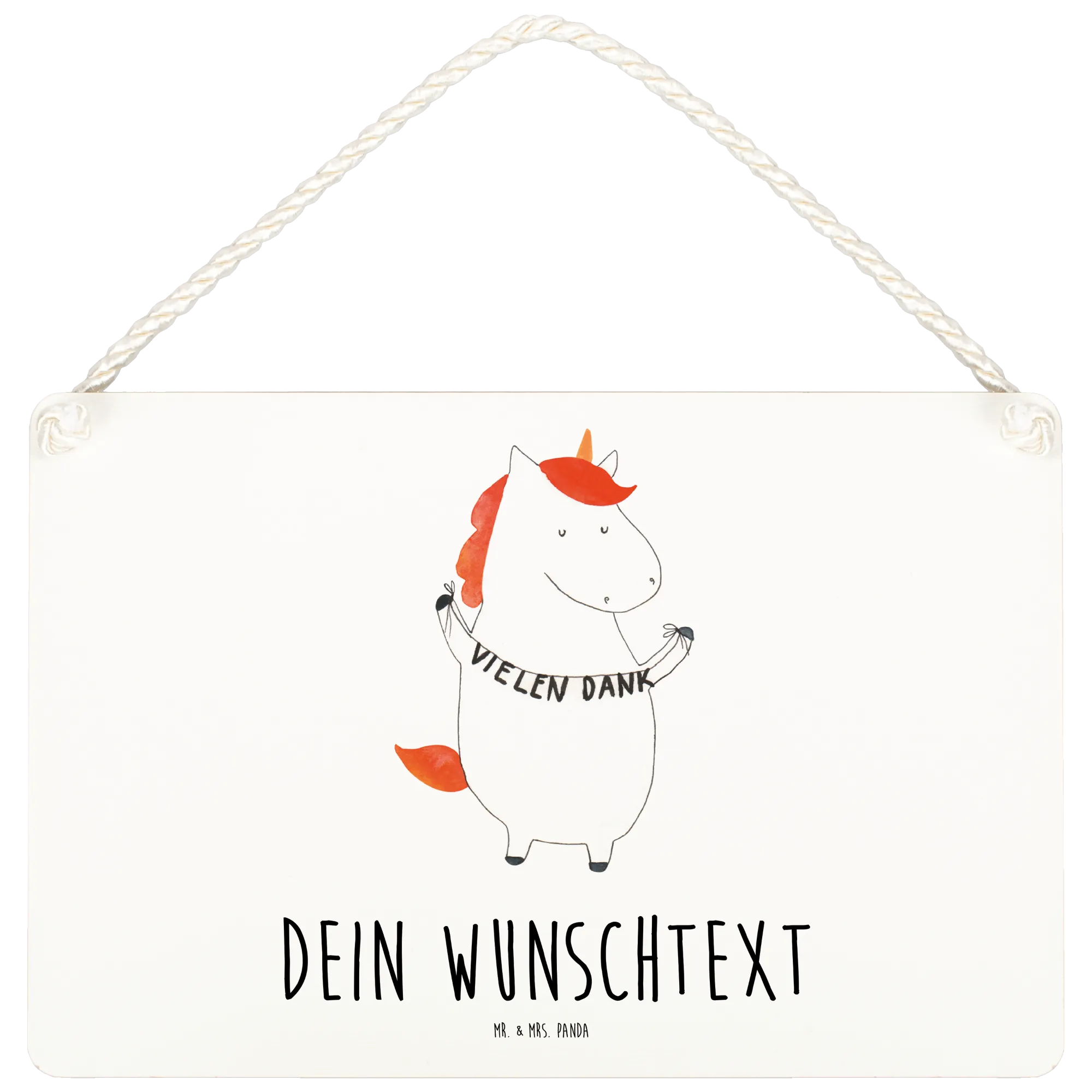 Das personalisierte Deko Schild "Einhorn Vielen Dank" aus der traumhaften Einhorn - Kollektion von Mr. & Mrs. Panda ist das perfekte Geschenk für Menschen, die Wert auf eine liebevolle Danksagung legen. Ob für Freunde, Familie oder Kollegen, dieses Schild eignet sich ideal, um sich auf besonders charmante Weise zu bedanken. Die süße, handgezeichnete Einhorn-Grafik verzaubert jeden, und der liebevolle Spruch "Vielen Dank" bringt einen Hauch von Magie in jeden Raum.