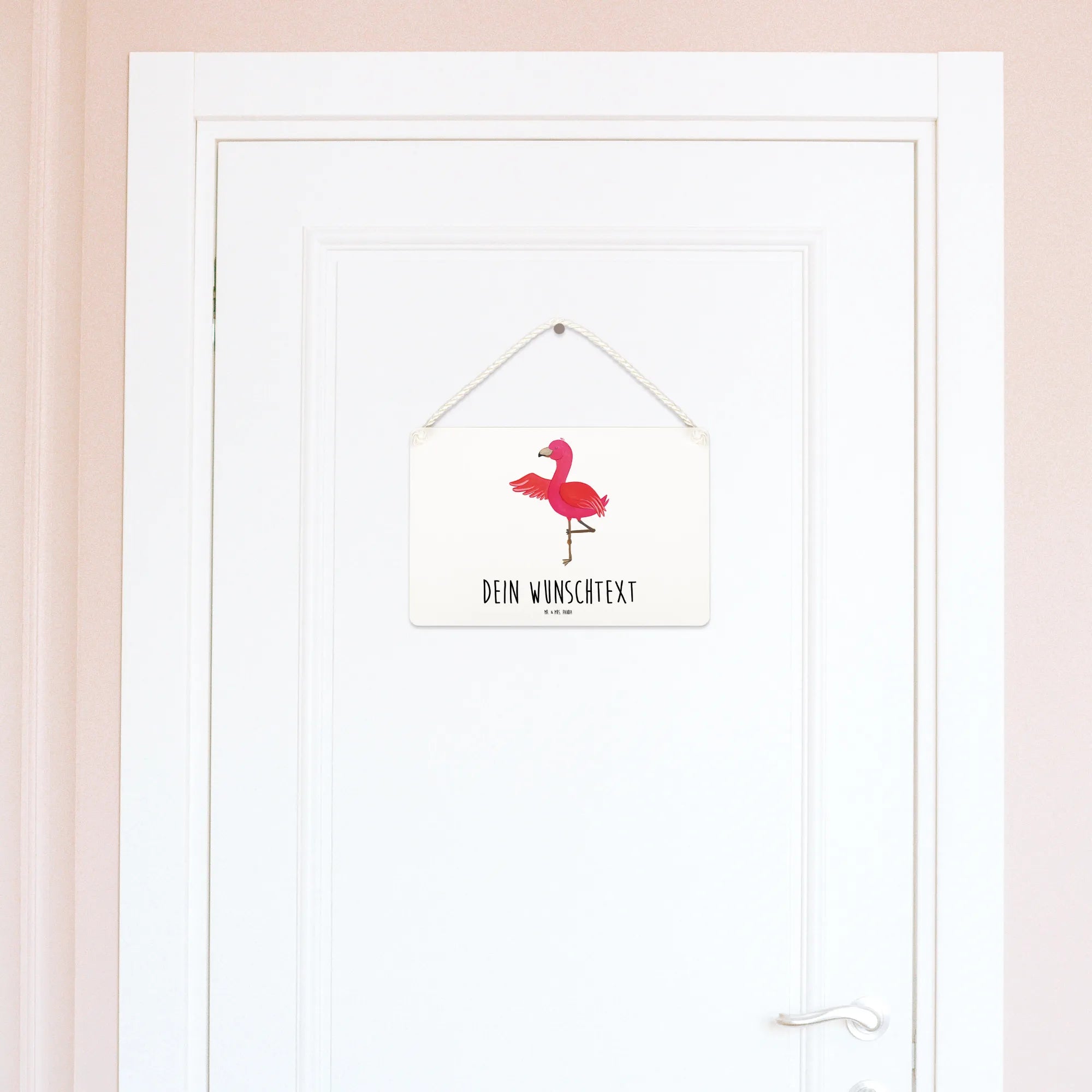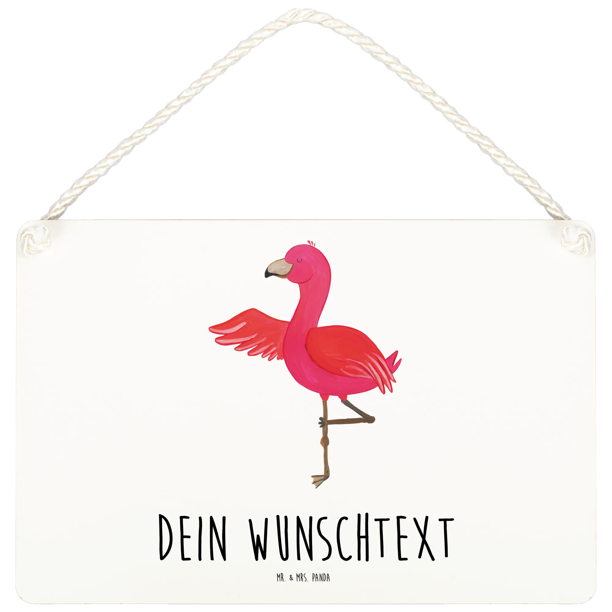 Personalisiertes Deko Schild Flamingo Yoga - DIN A6 - Weiß