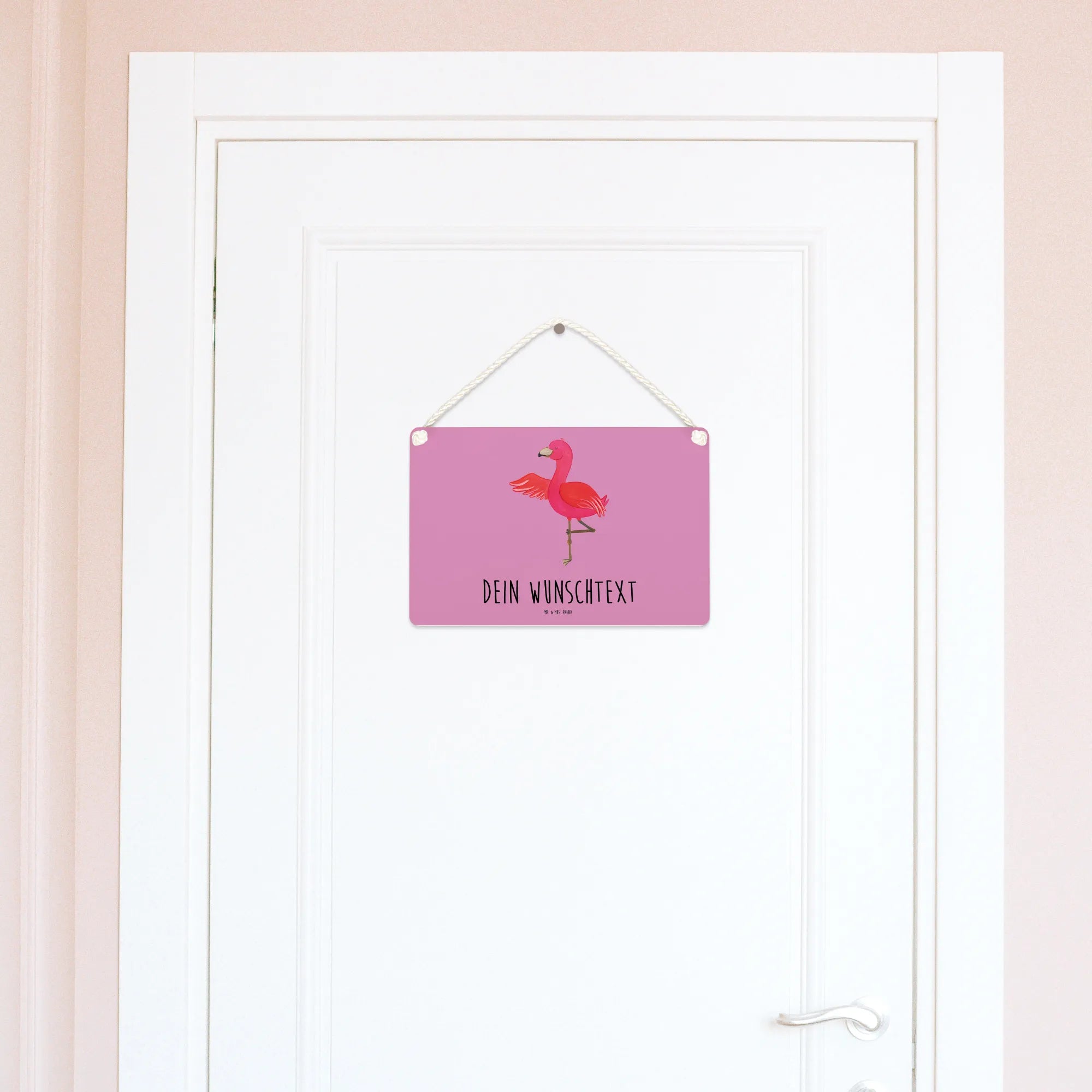 Das personalisierte Deko Schild "Flamingo Yoga" aus der Flamingo Kollektion von Mr. & Mrs. Panda ist das perfekte Geschenk für alle, die Achtsamkeit und Entspannung lieben. Mit seinem fröhlichen Flamingo-Motiv und dem liebevollen Spruch "Ich rege mich nicht auf. Ich mache Yoga." bringt es eine heitere Atmosphäre in jedes Zuhause.