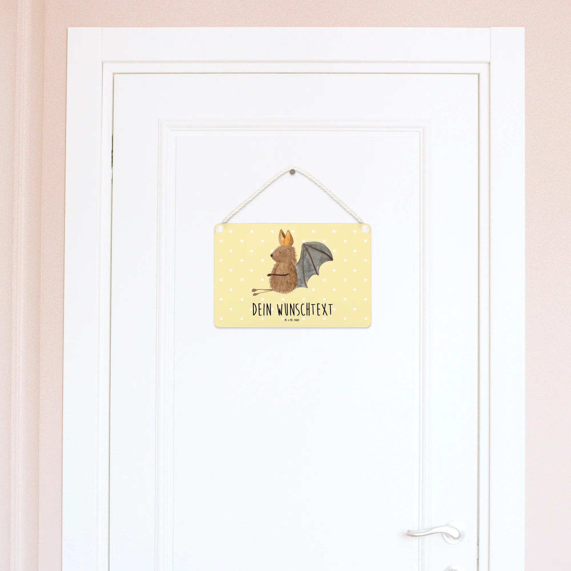 Entdecke unser wundervolles, personalisiertes Deko Schild mit dem süßen Motiv einer sitzenden Fledermaus!