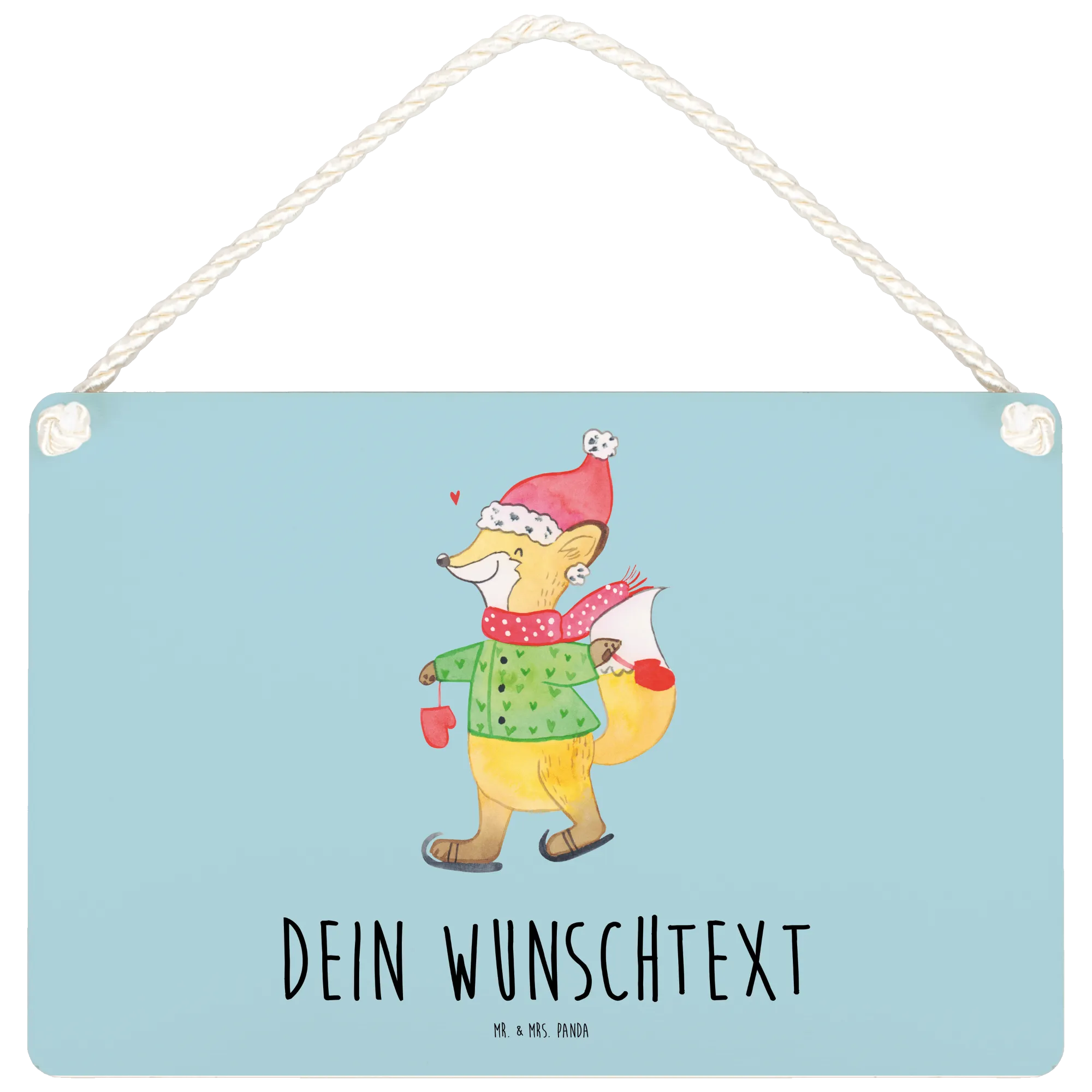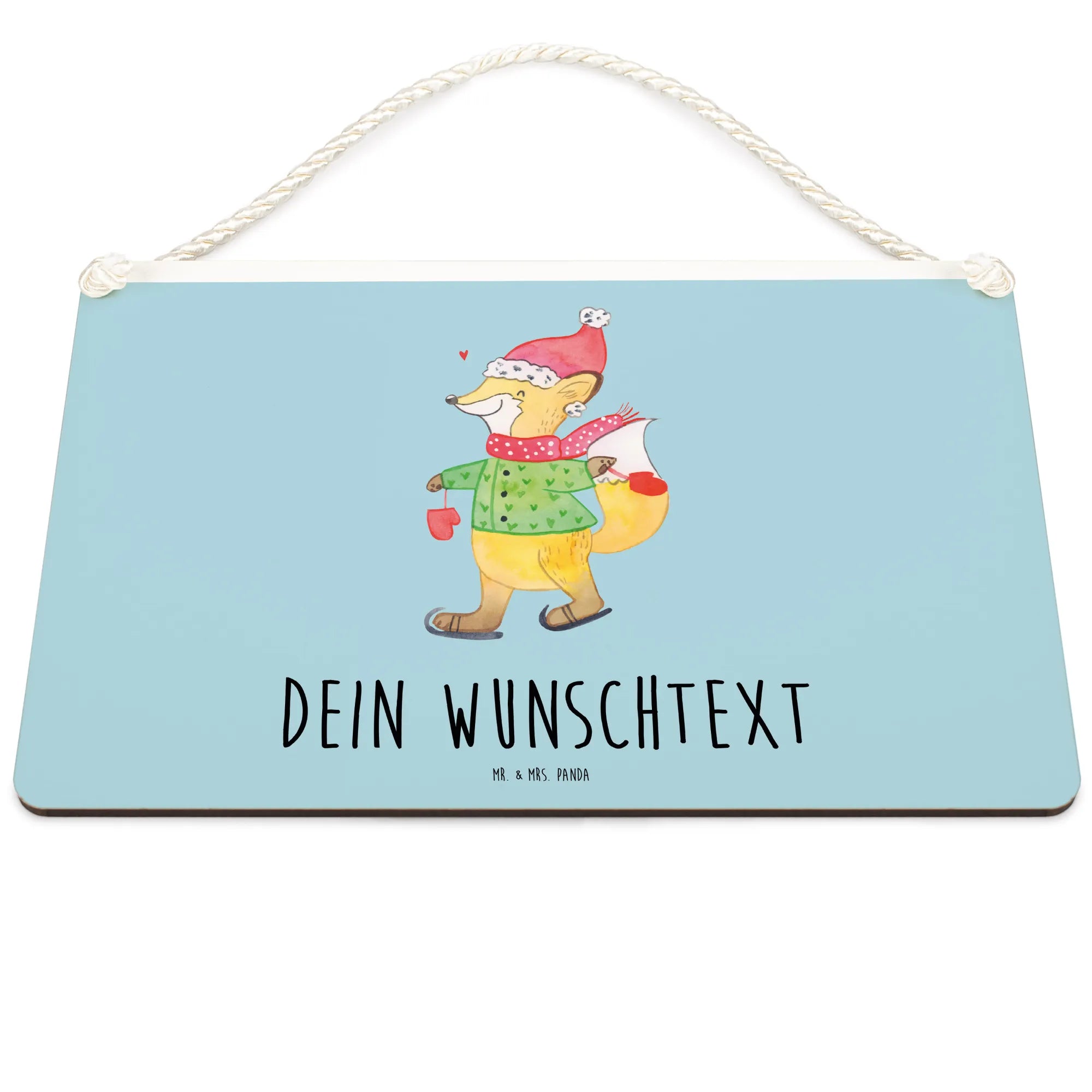 Das personalisierte Deko Schild Fuchs Schlittschuhe aus der Winter Kollektion von Mr. & Mrs. Panda ist die perfekte Geschenkidee für die besinnliche Weihnachtszeit! Stell dir vor, du verschenkst nicht nur ein Schild, sondern ein Stück Weihnachtsfreude, geprägt von Liebe und Gemütlichkeit.