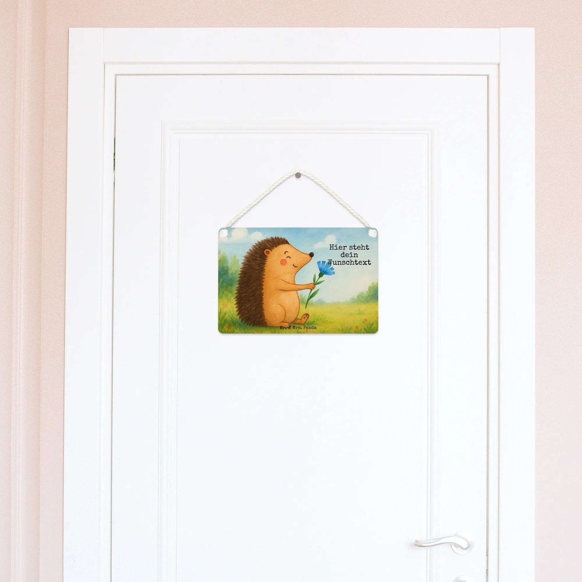 Personalisiertes Deko Schild Igel Blumen Design - DIN A6