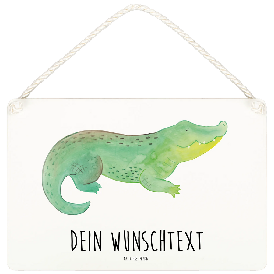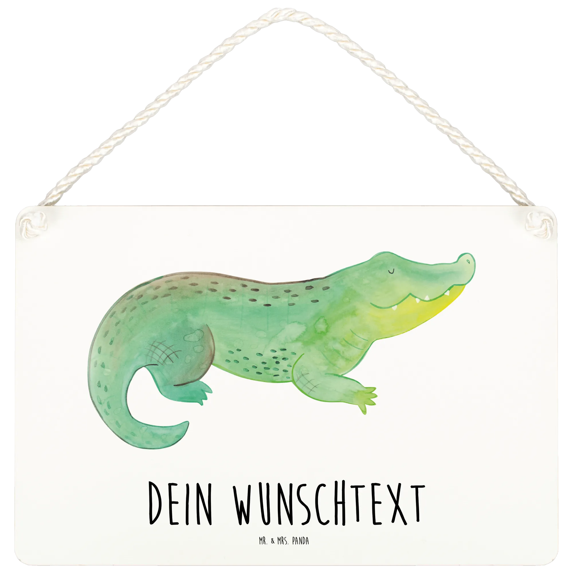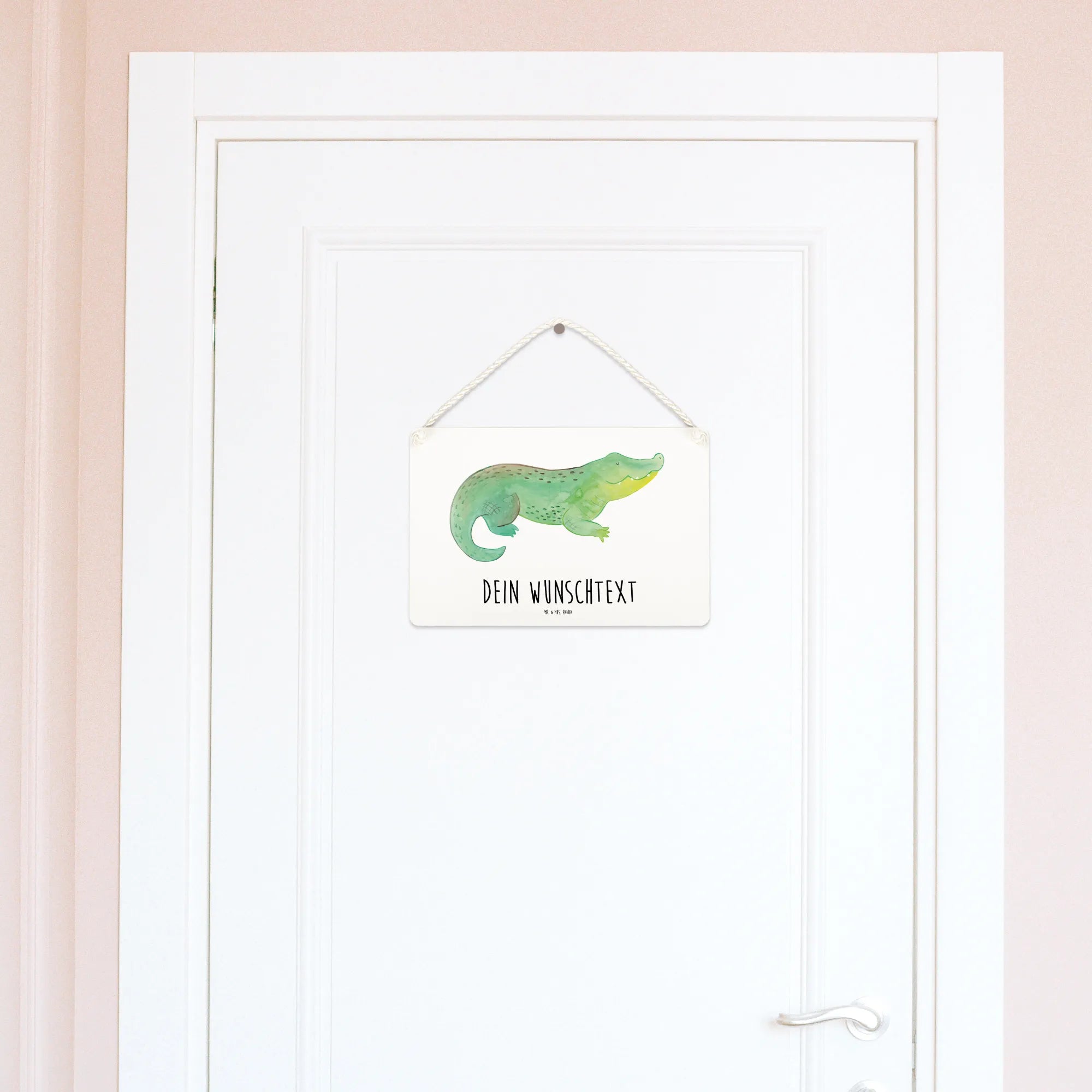 Personalisiertes Deko Schild Krokodil - DIN A6 - Weiß