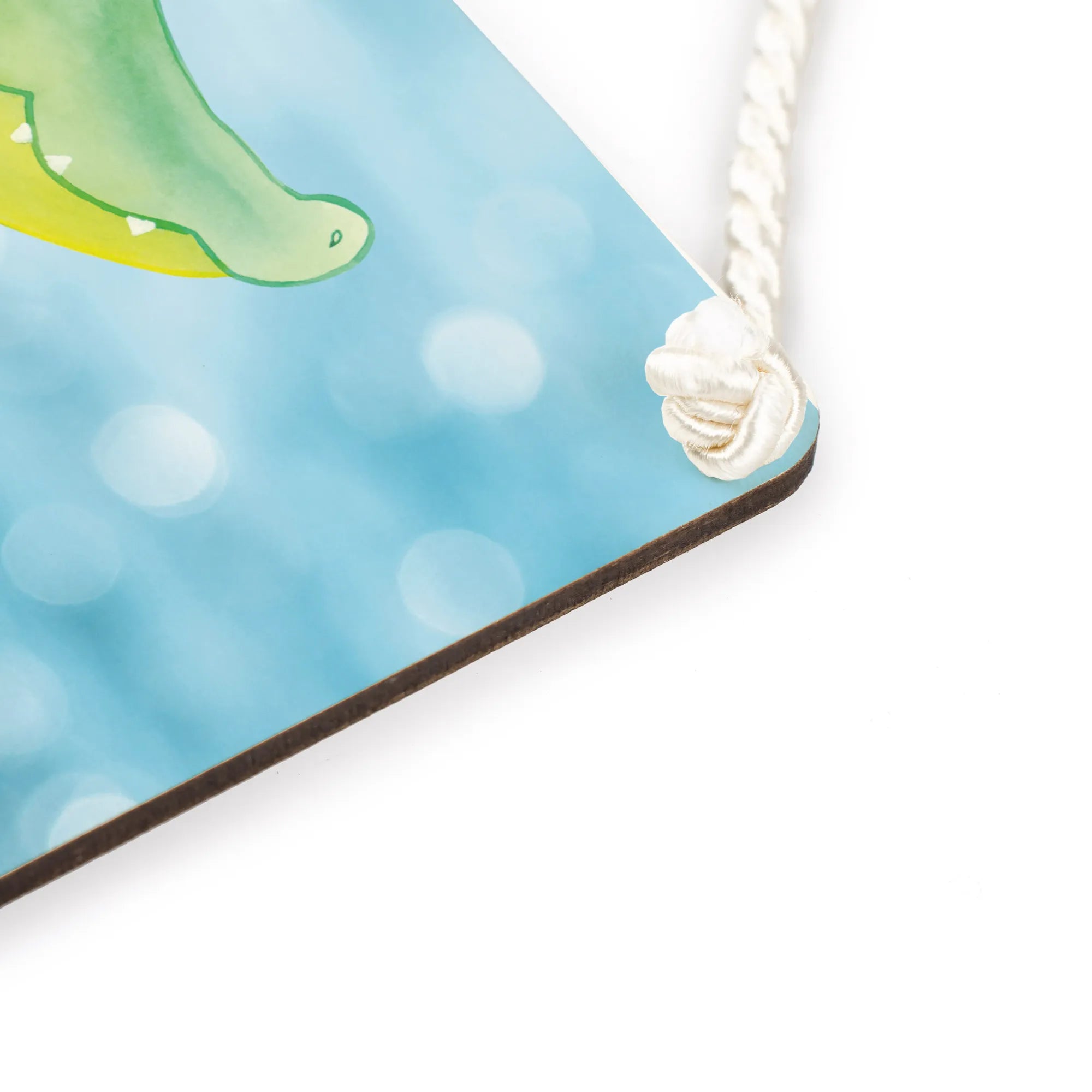 Ob als Türschild oder Wandschild, dieses Holzschild lässt sich wunderbar in jede Einrichtung integrieren und verleiht jedem Raum einen Hauch von Meeresleichtigkeit. Das Krokodil, das auf dem Schild abgebildet ist, strahlt eine entspannte und glückliche Aura aus und symbolisiert damit den Wunsch nach Urlaub und Freiheit.