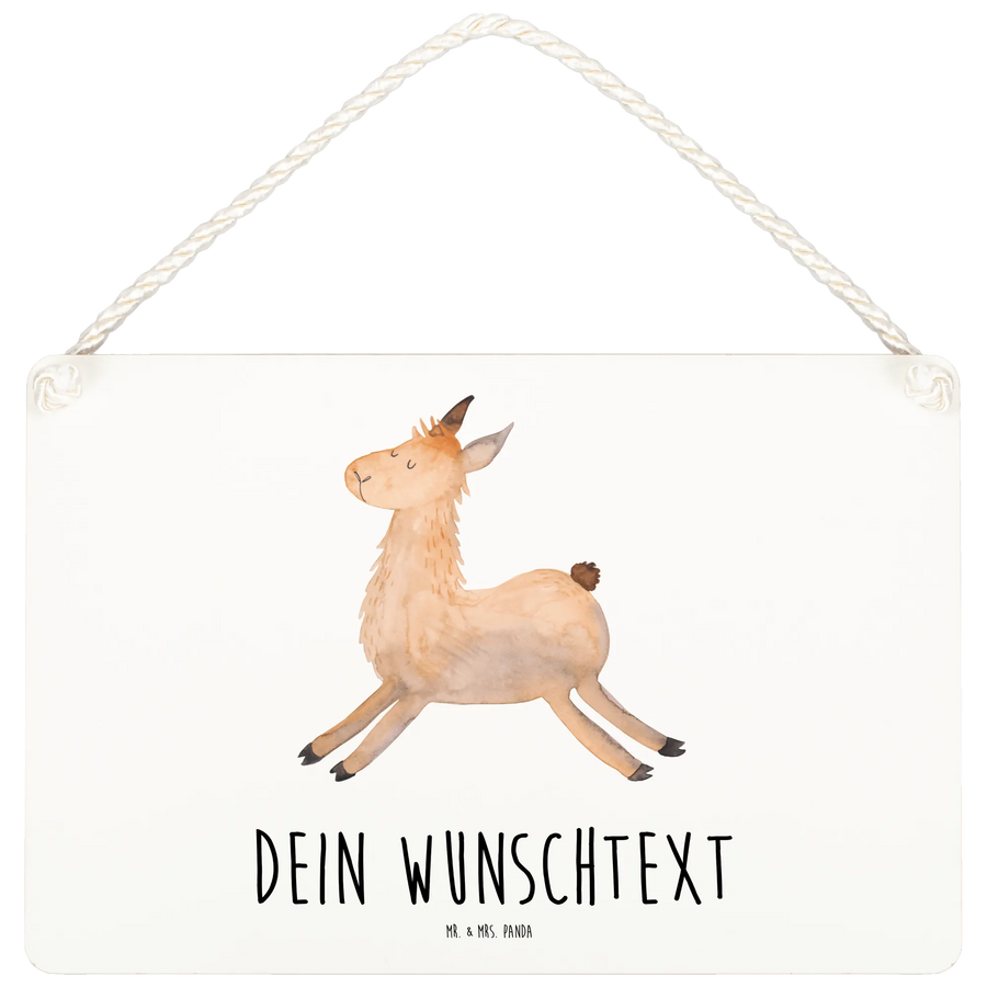 Personalisiertes Deko Schild Lama springend - DIN A6 - Weiß