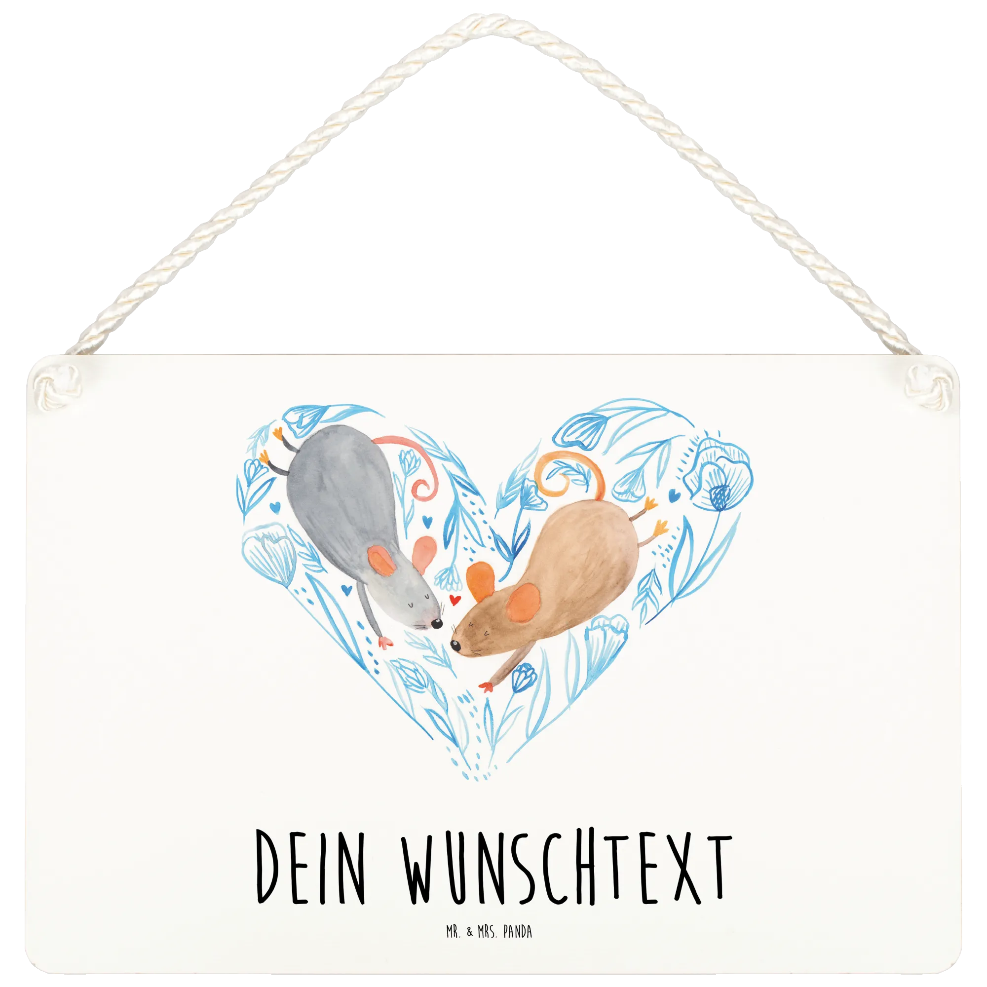 Personalisiertes Deko Schild Mäuse Herz - DIN A6 - Weiß