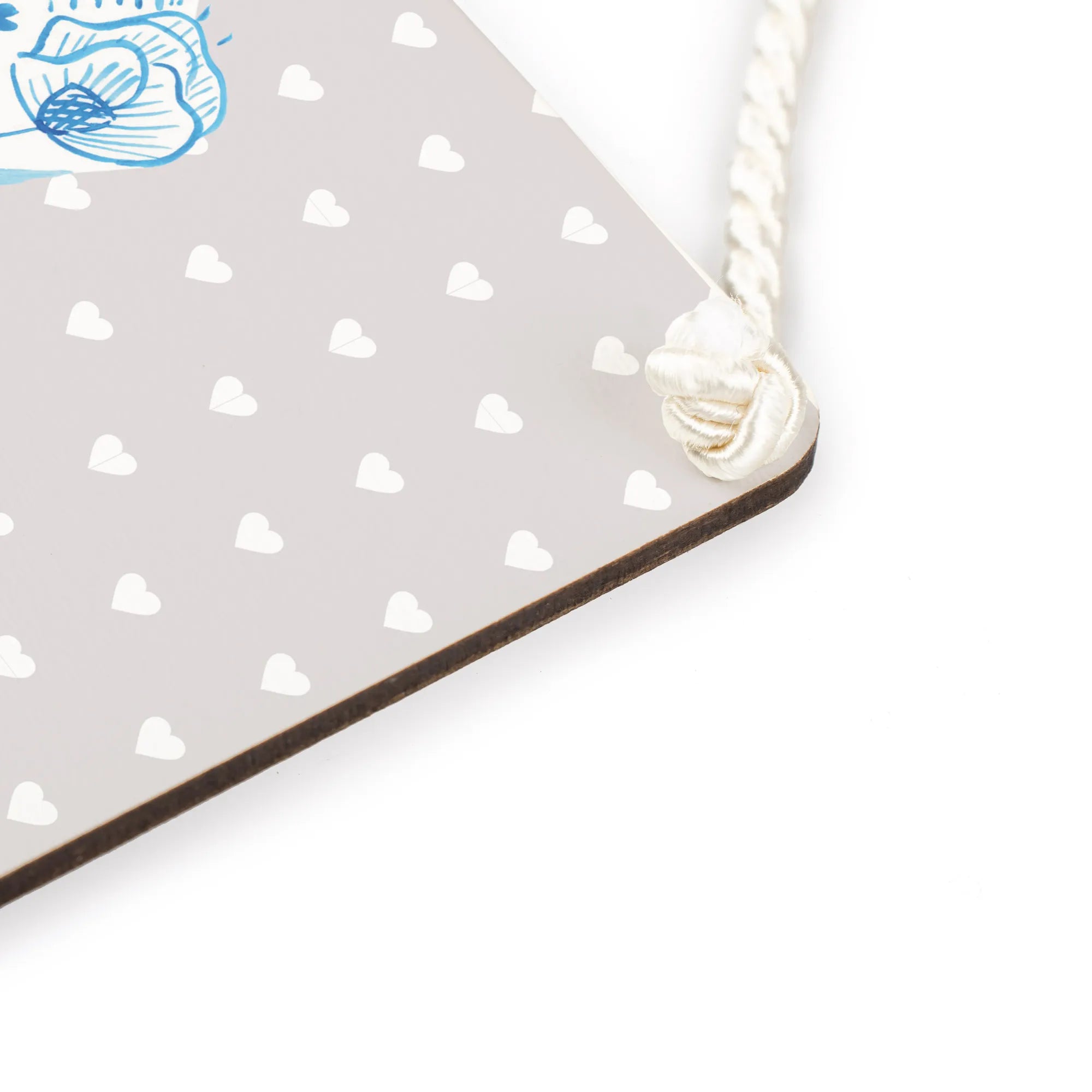 Das personalisierte Deko Schild ist 148 mm x 105 mm groß und besteht aus langlebiger MDF, sodass es sowohl drinnen als auch draußen wirkungsvoll zur Geltung kommt. Es wird mit einer liebevoll gedrehten Kordel geliefert, die das Aufhängen zum Kinderspiel macht. Die Kombination aus süßem Design und herzlichen Sprüchen lässt die Herzen höher schlagen und ist perfekt für alle, die das Besondere im Alltag suchen.