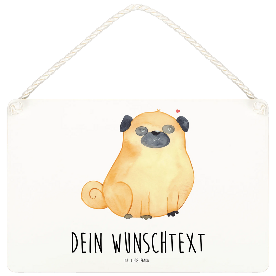 Personalisiertes Deko Schild Mops - DIN A6 - Weiß