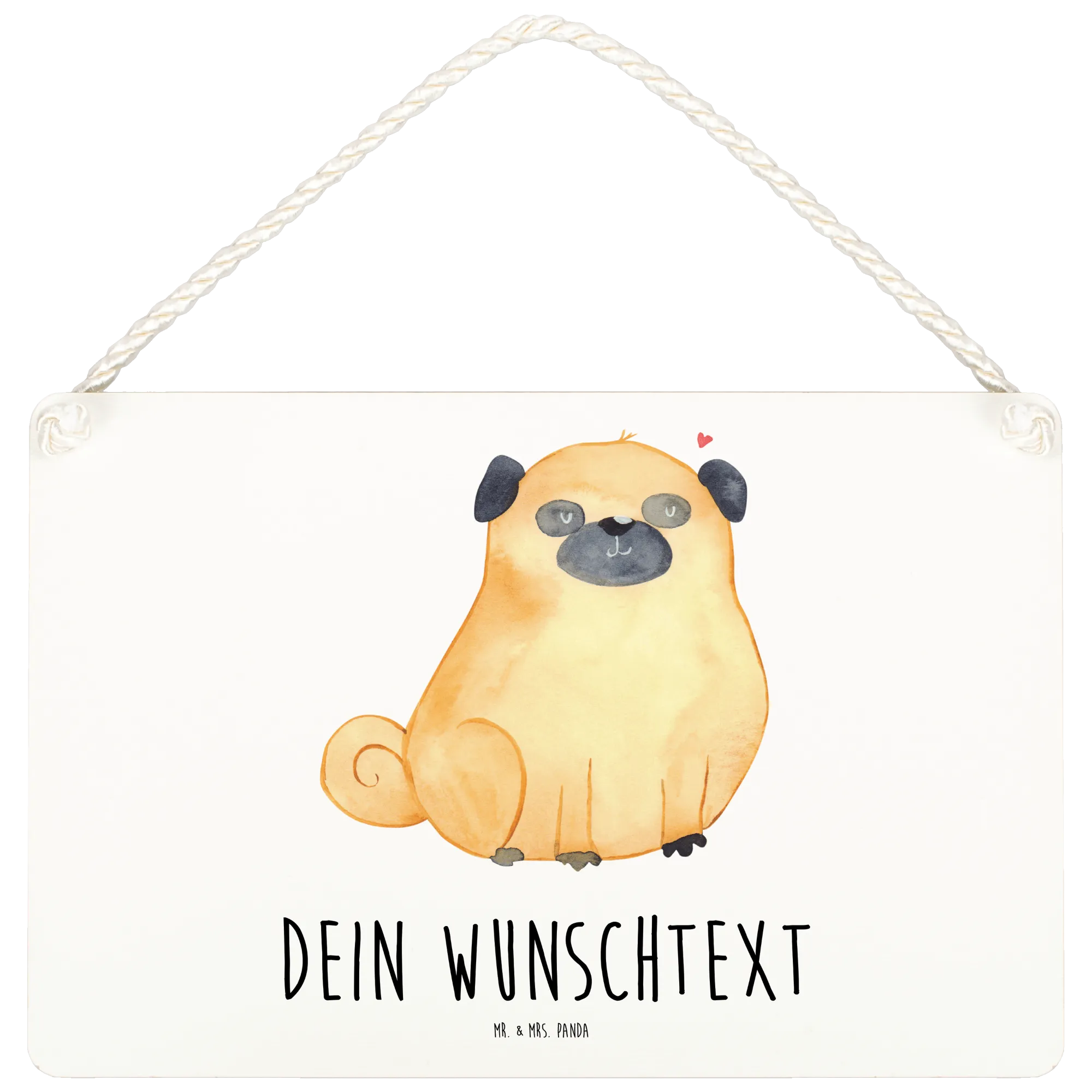 Das personalisierte Deko Schild mit dem süßen Mops-Motiv von Mr. & Mrs. Panda ist das perfekte Geschenk für all jene, die die bedingungslose Liebe zwischen Mensch und Hund schätzen. Jedes Schild ist nicht nur ein schönes Dekorationsstück, sondern vor allem ein Ausdruck der Liebe zu deinem vierbeinigen Freund.