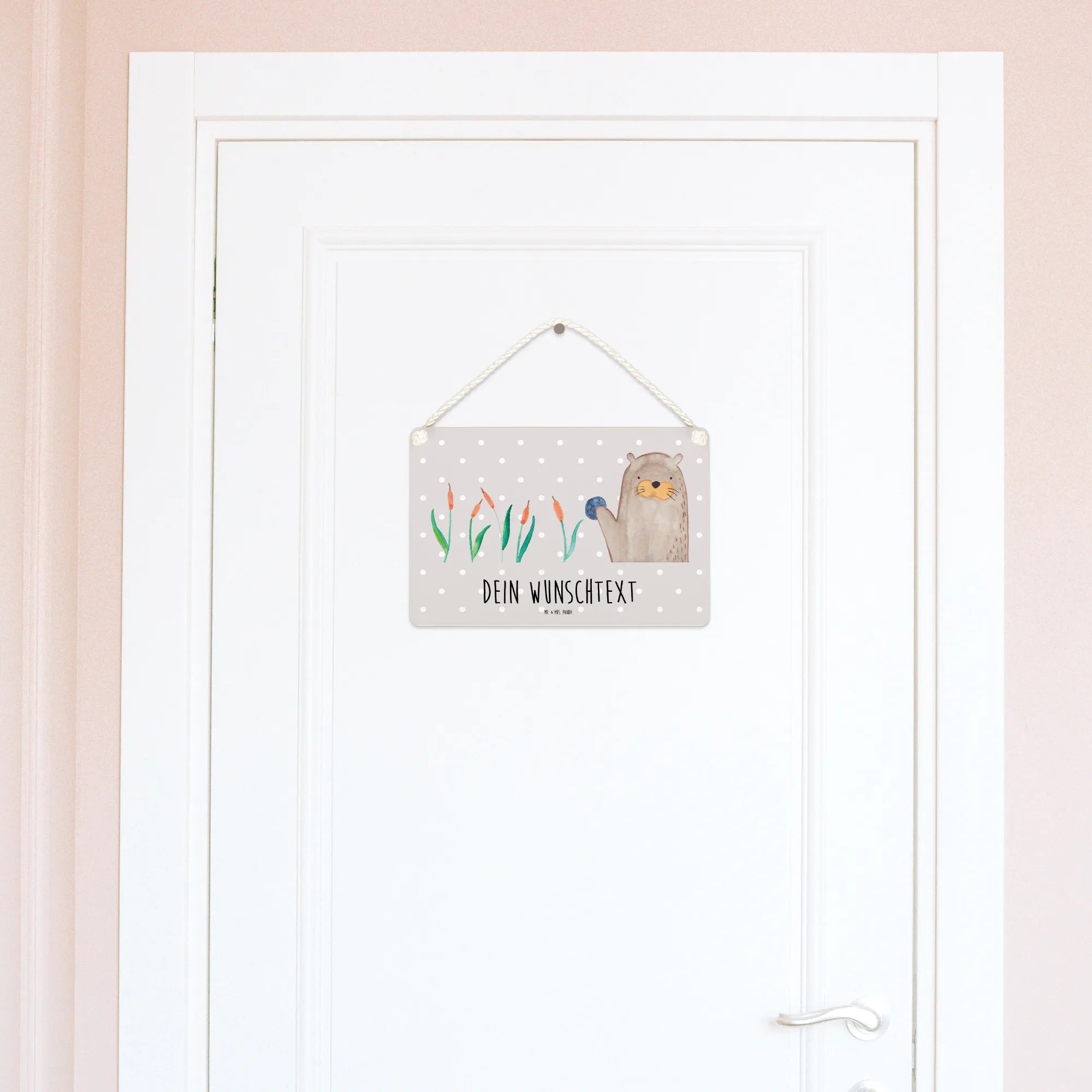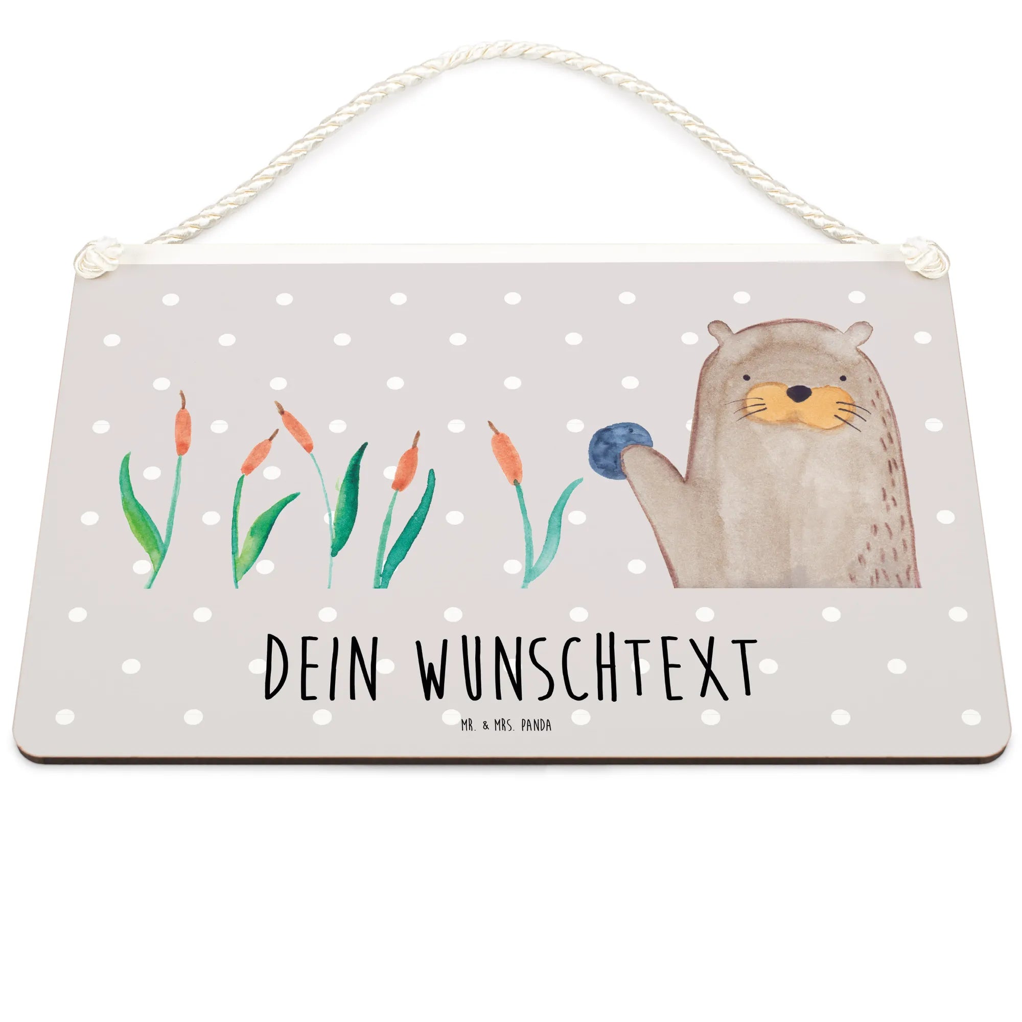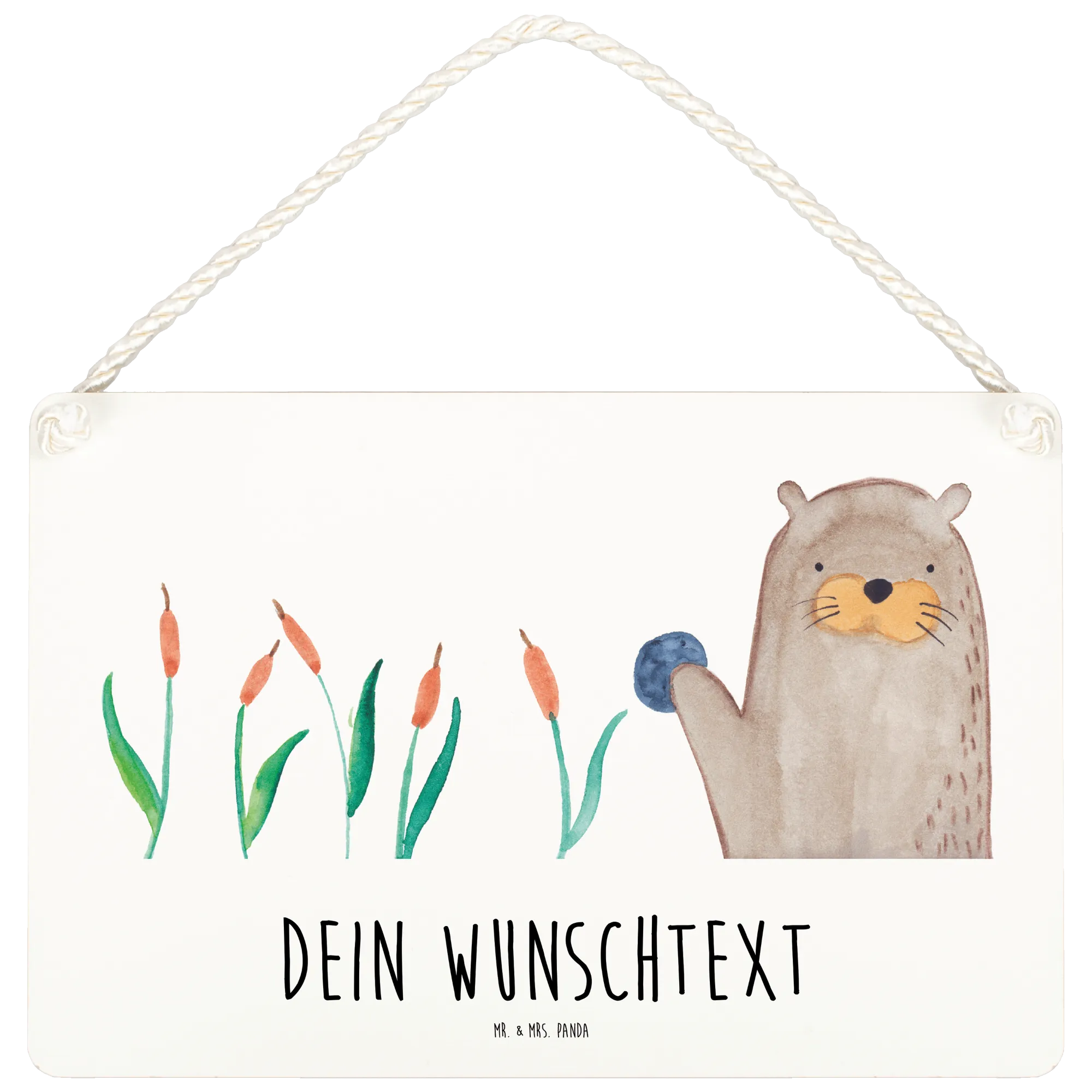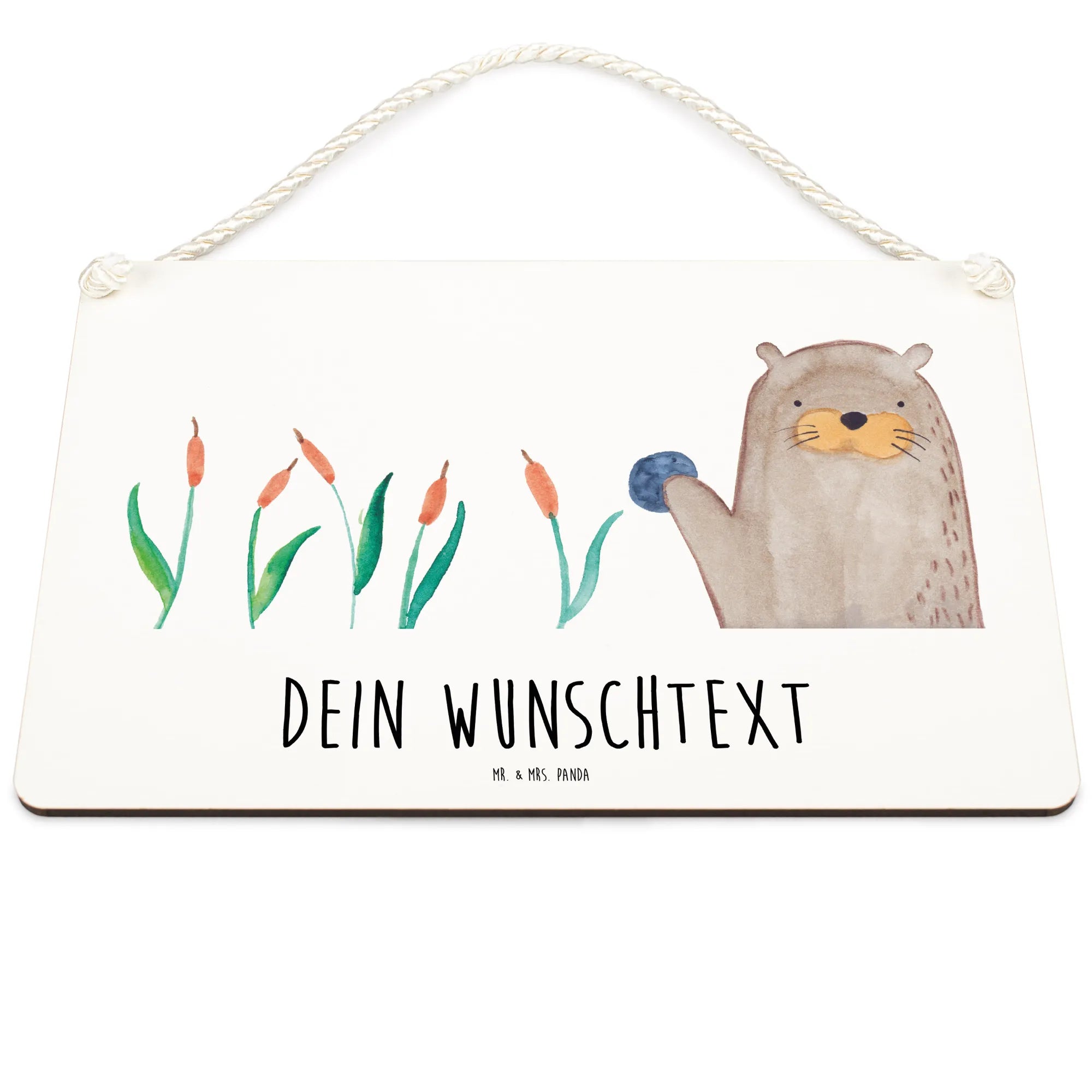 Das personalisierte Deko Schild Otter mit Stein von Mr. & Mrs. Panda ist das perfekte Geschenk für alle, die Otter und liebevolle Dekorationen lieben!