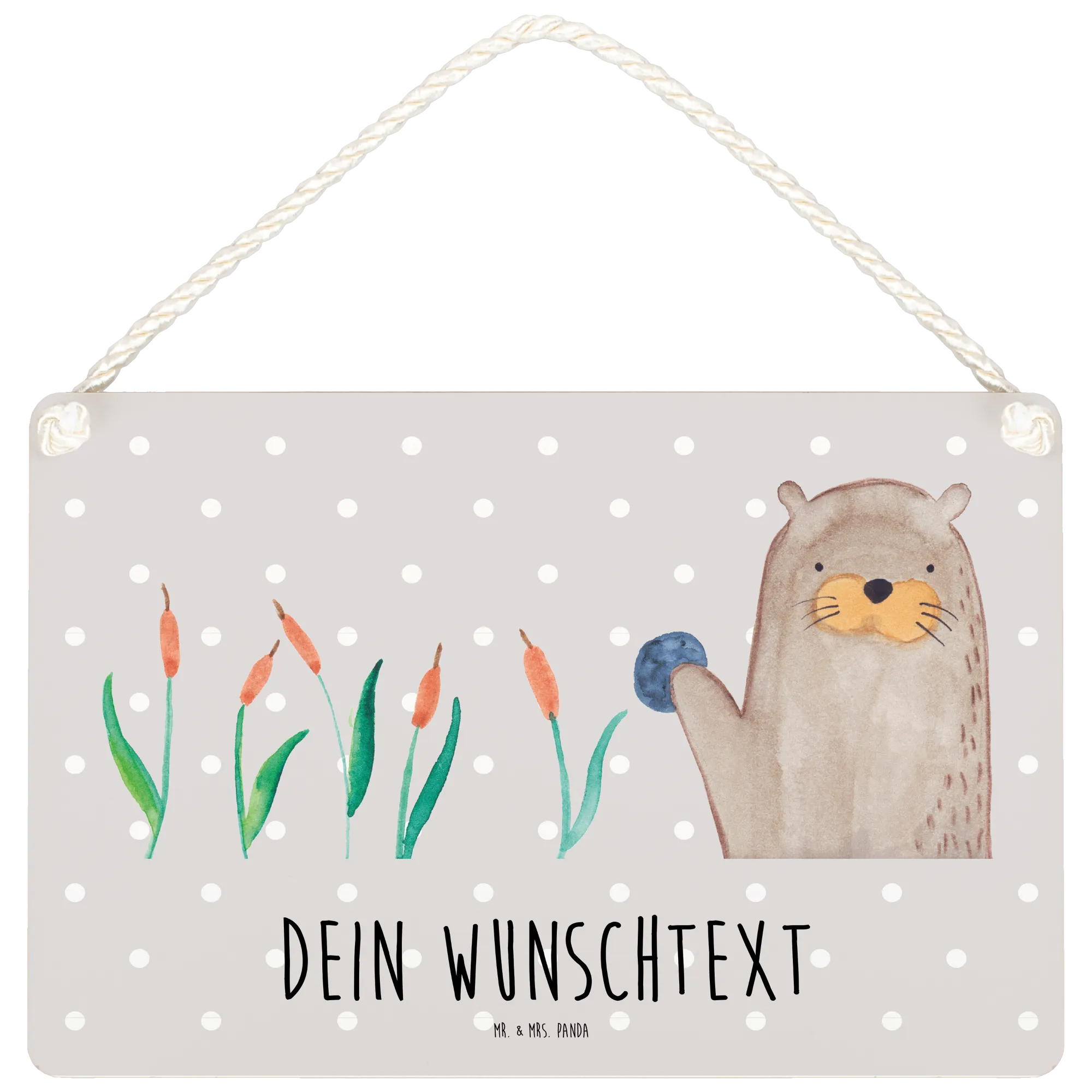Personalisiertes Deko Schild Otter mit Stein - DIN A6 - Grau Pastell
