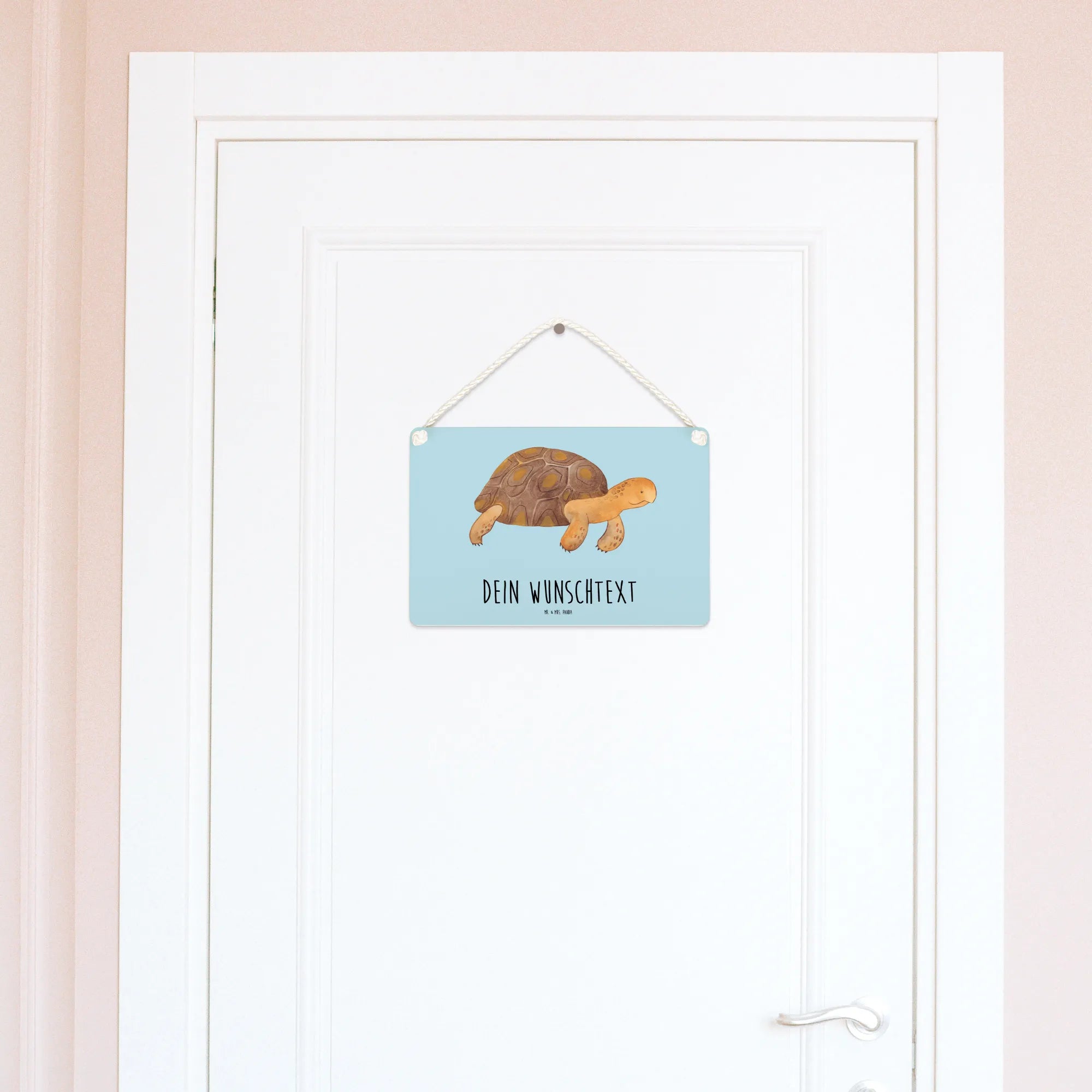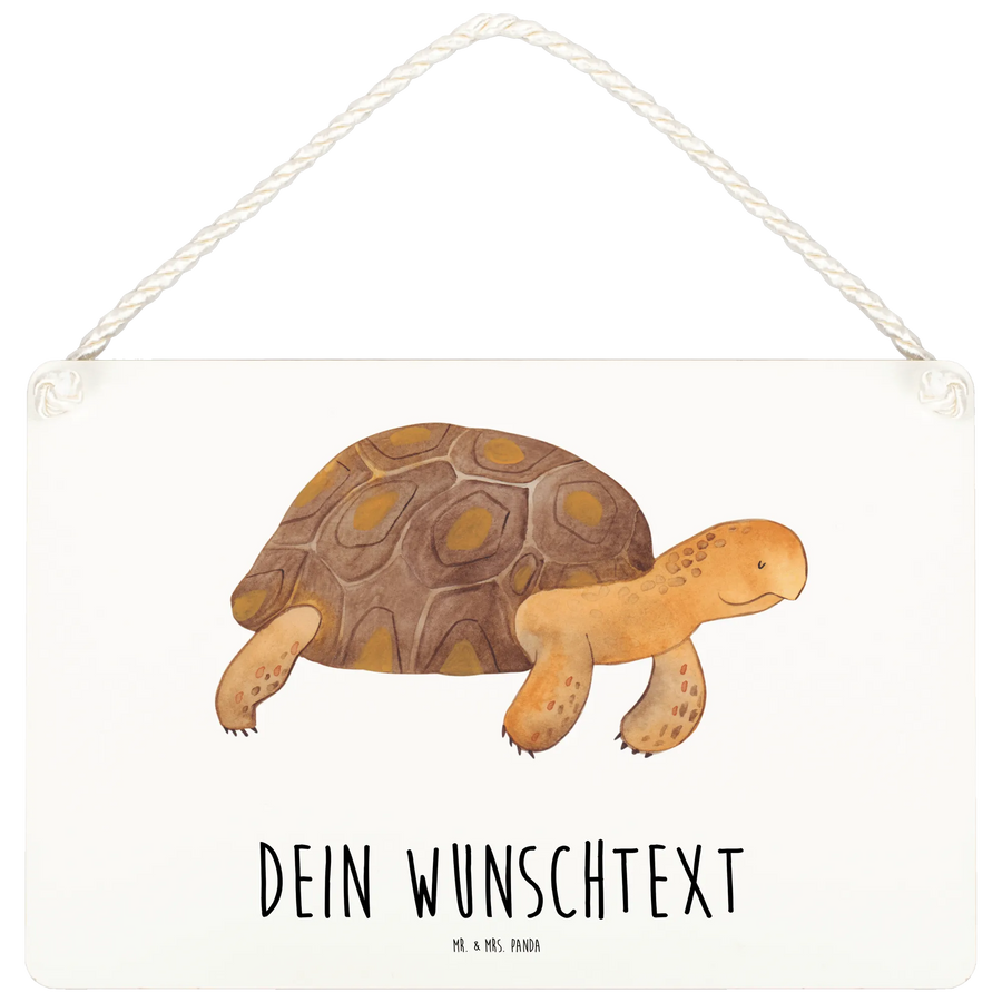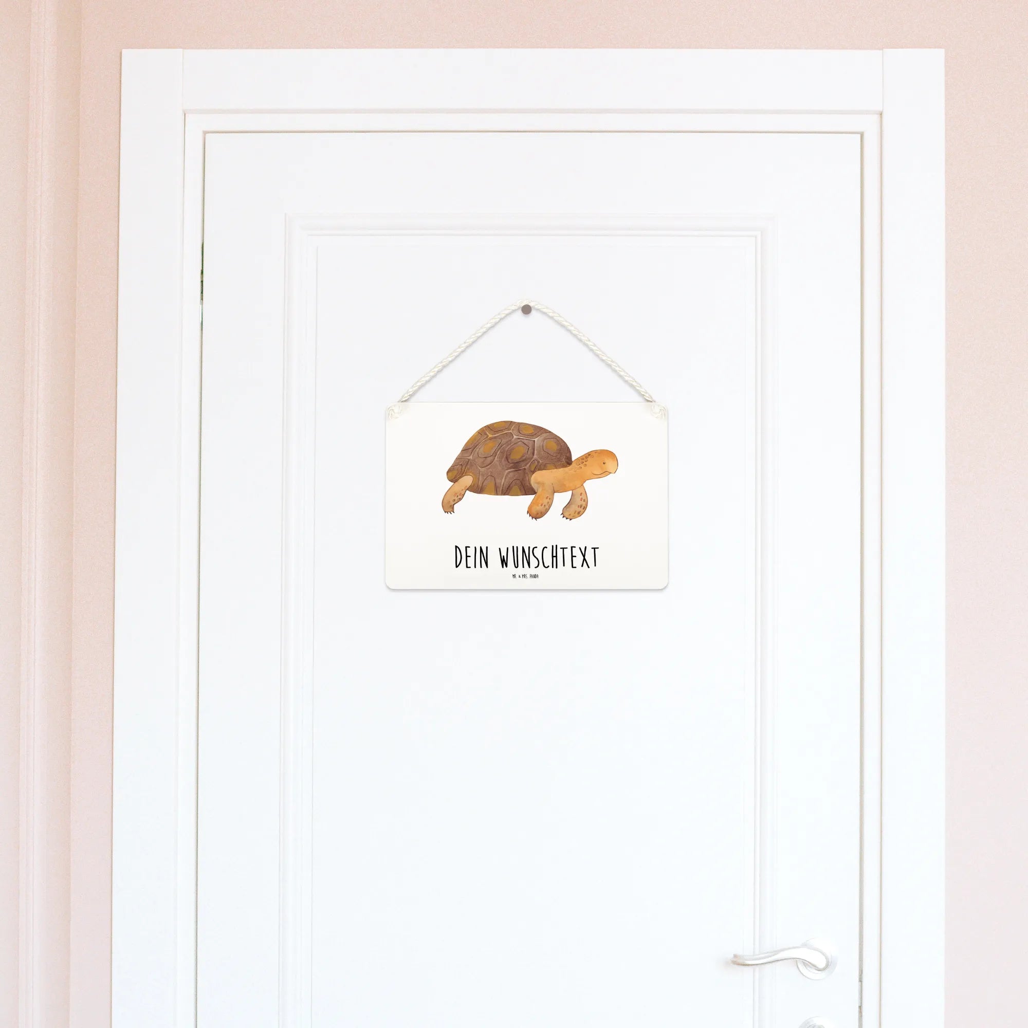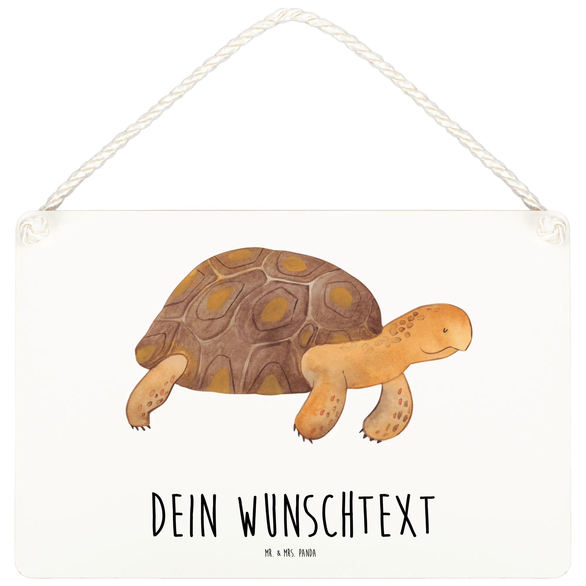 Personalisiertes Deko Schild Schildkröte marschiert - DIN A6 - Weiß