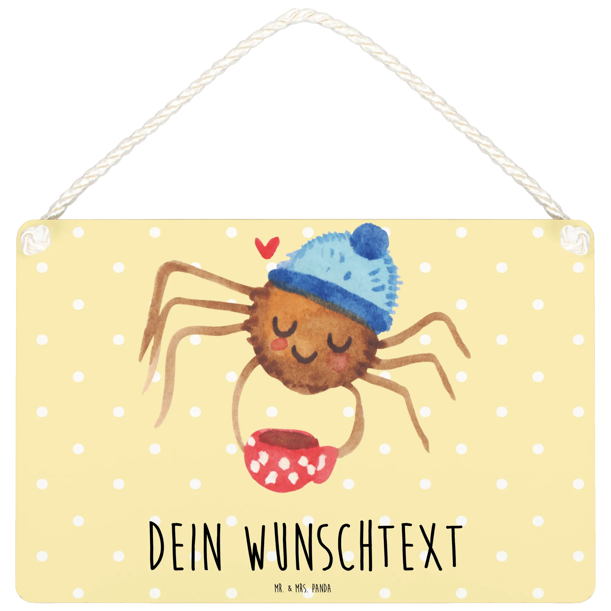 Personalisiertes Deko Schild Spinne Agathe Kaffee - DIN A6 - Gelb Pastell