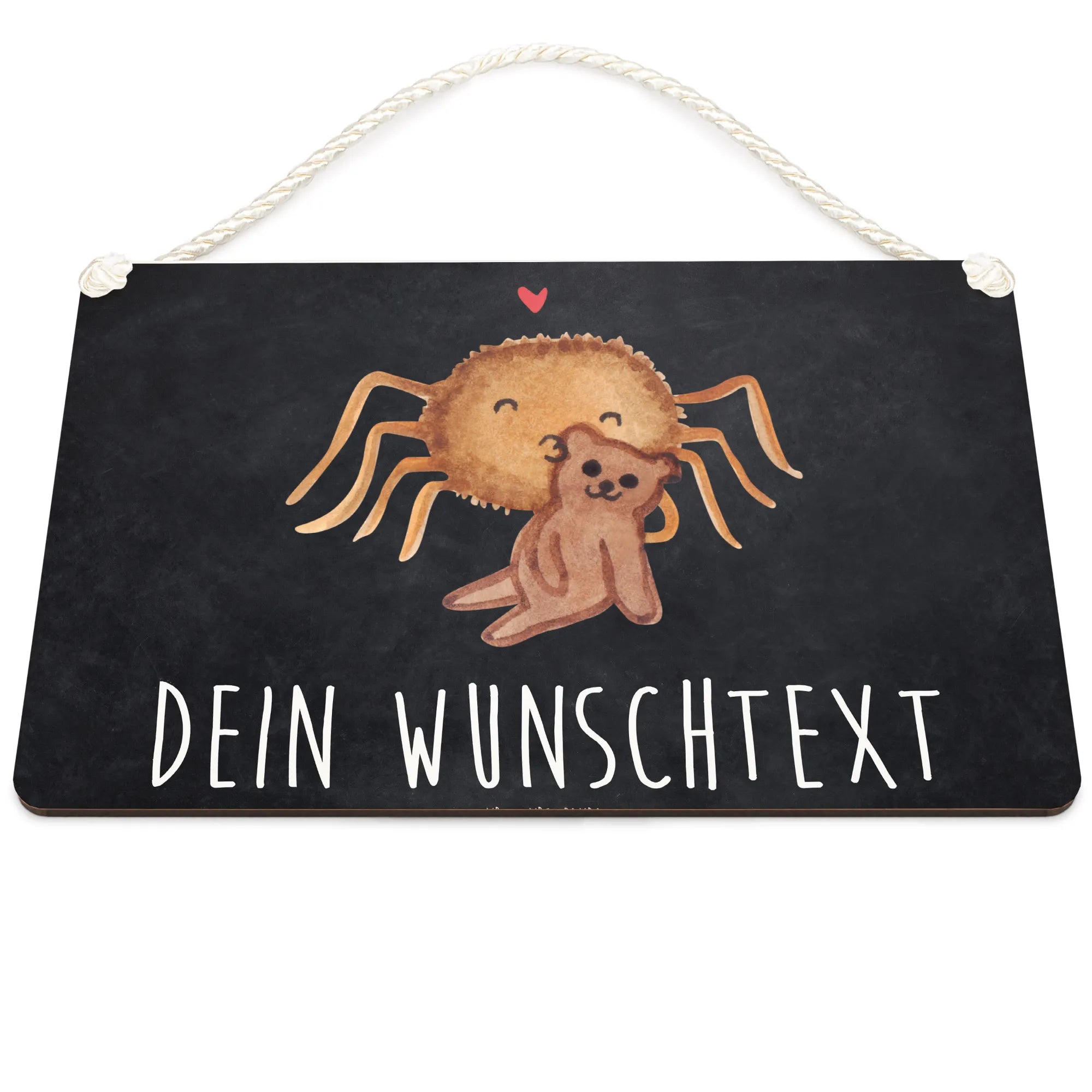 Bist du auf der Suche nach dem perfekten Geschenk, das Glück, Liebe und eine Prise Niedlichkeit vereint? Dann ist das personalisierte Deko Schild mit dem bezaubernden Motiv 'Spinne Agathe Teddy' aus der Kollektion Spinne Agathe von Mr. & Mrs. Panda genau das Richtige für dich!