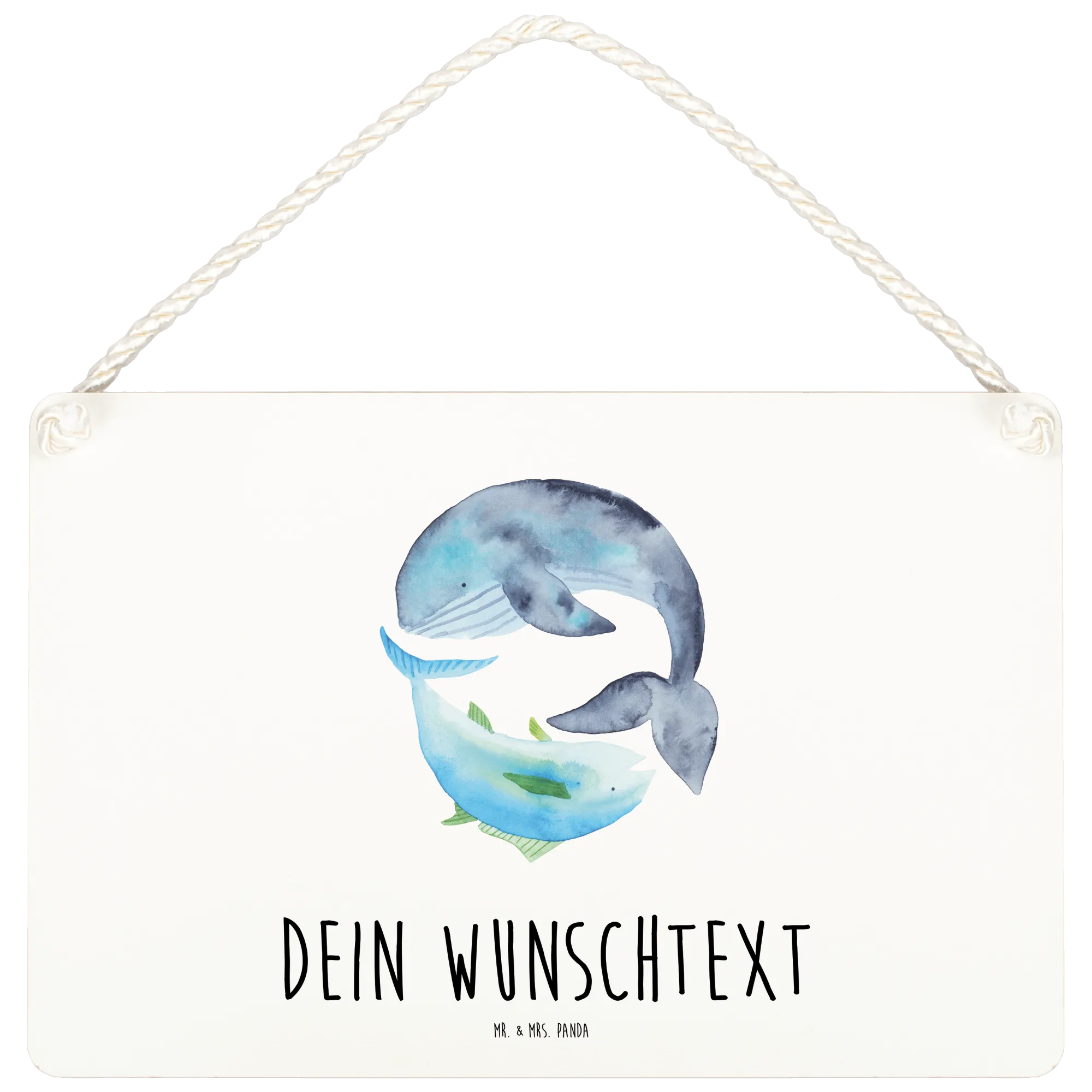 Personalisiertes Deko Schild Walfisch & Thunfisch - DIN A6 - Weiß