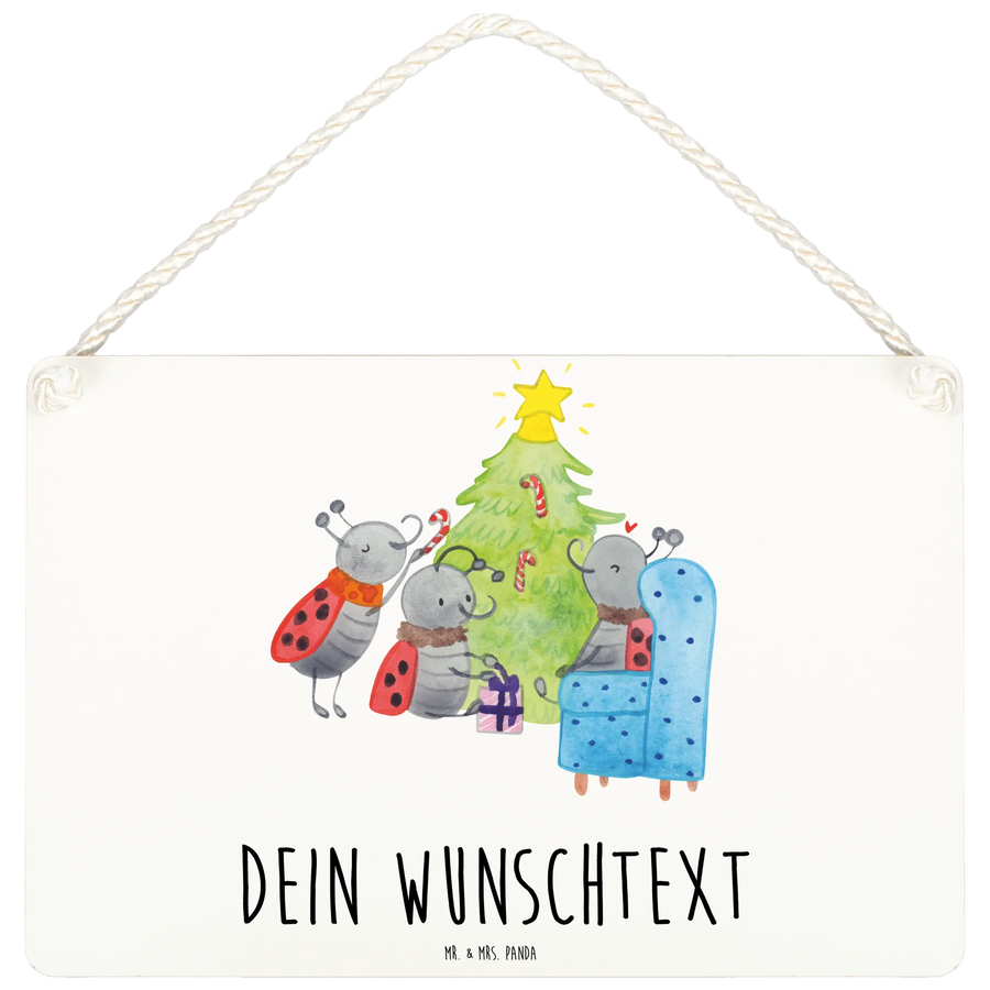 Das personalisierte Deko Schild Weihnachten Smörle von Mr. & Mrs. Panda ist das perfekte Geschenk für die Weihnachtszeit. Mit seinem zauberhaften Motiv, das drei fröhliche Marienkäfer zeigt, die einen Tannenbaum dekorieren, zaubert es jeden Raum in ein weihnachtliches Wunderland.